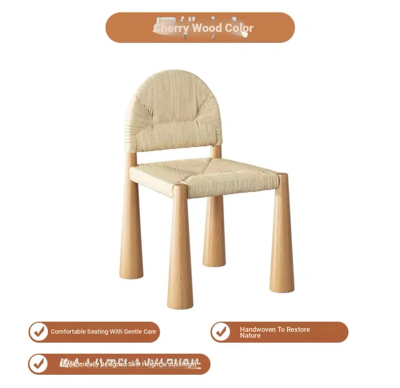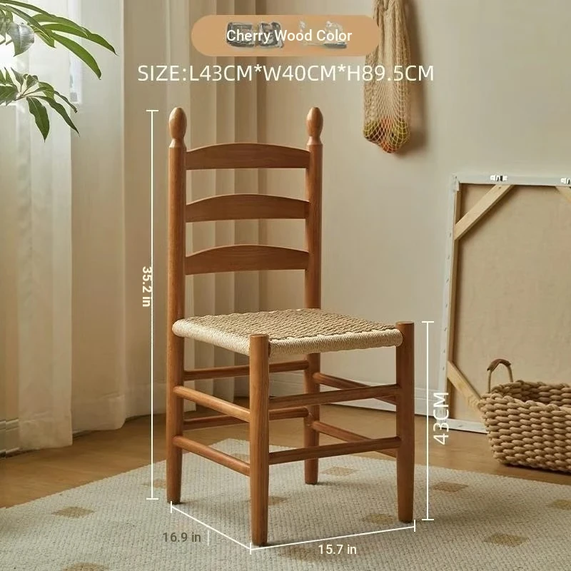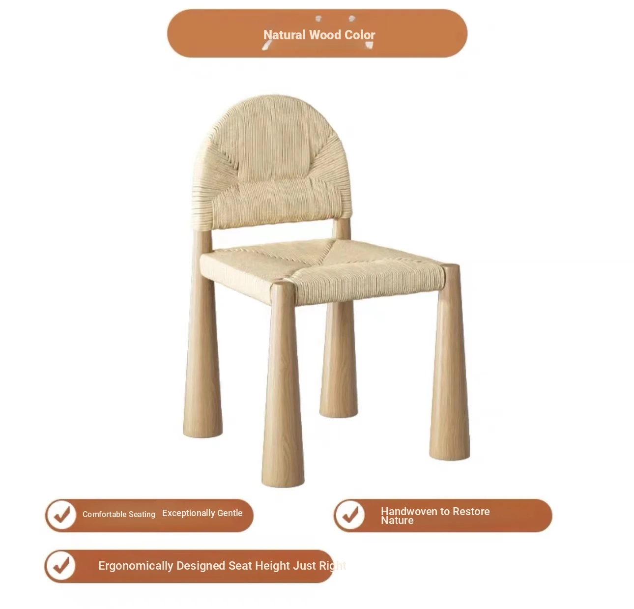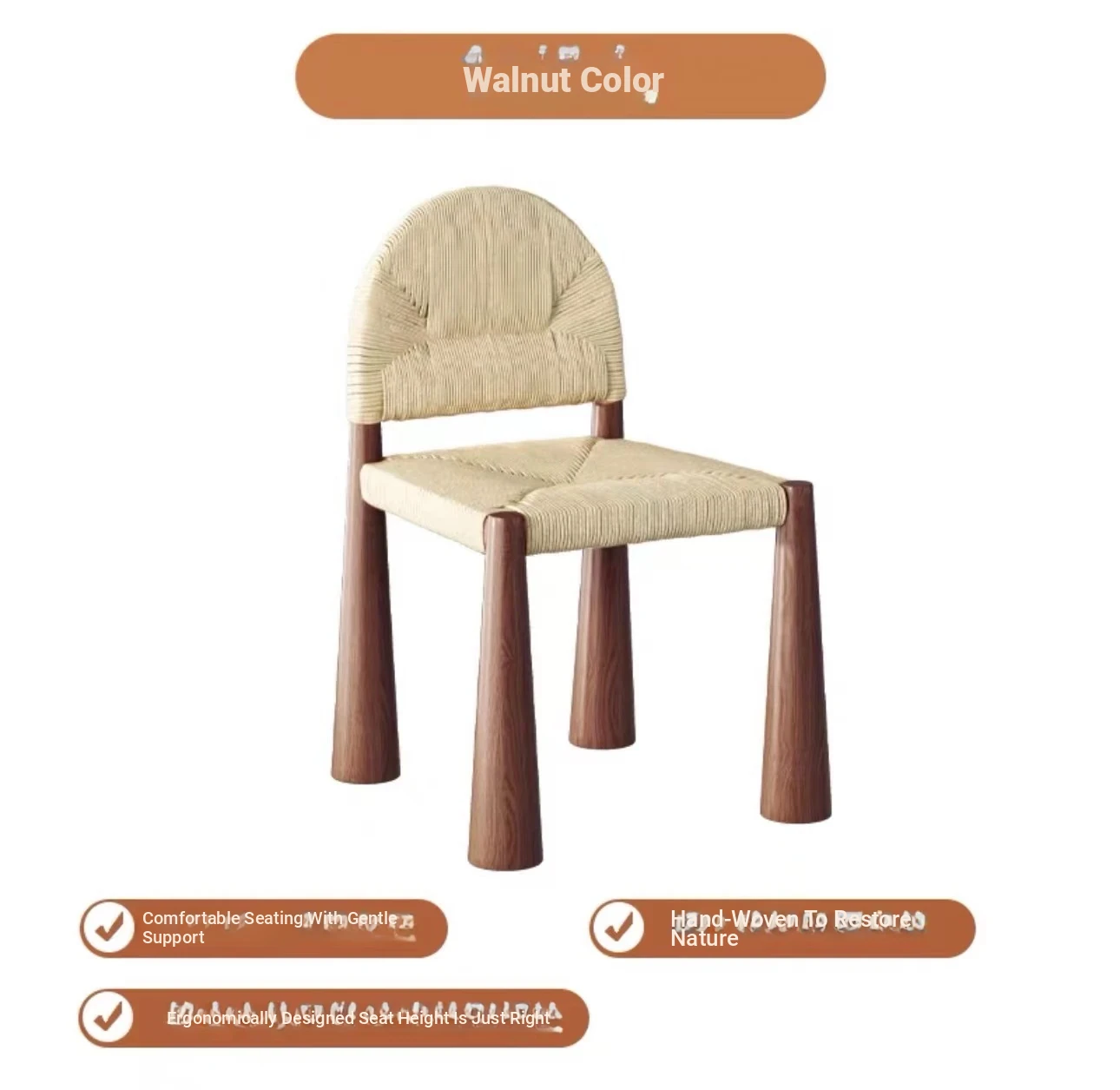OMEAN Nordic Solid Wood Wabi-Sabi Style Dining Chair - Designer Rope-Woven Accent Chair for Restaurant, Study, and Balcony - Perfect for Cozy Cafes and Elegant Spaces