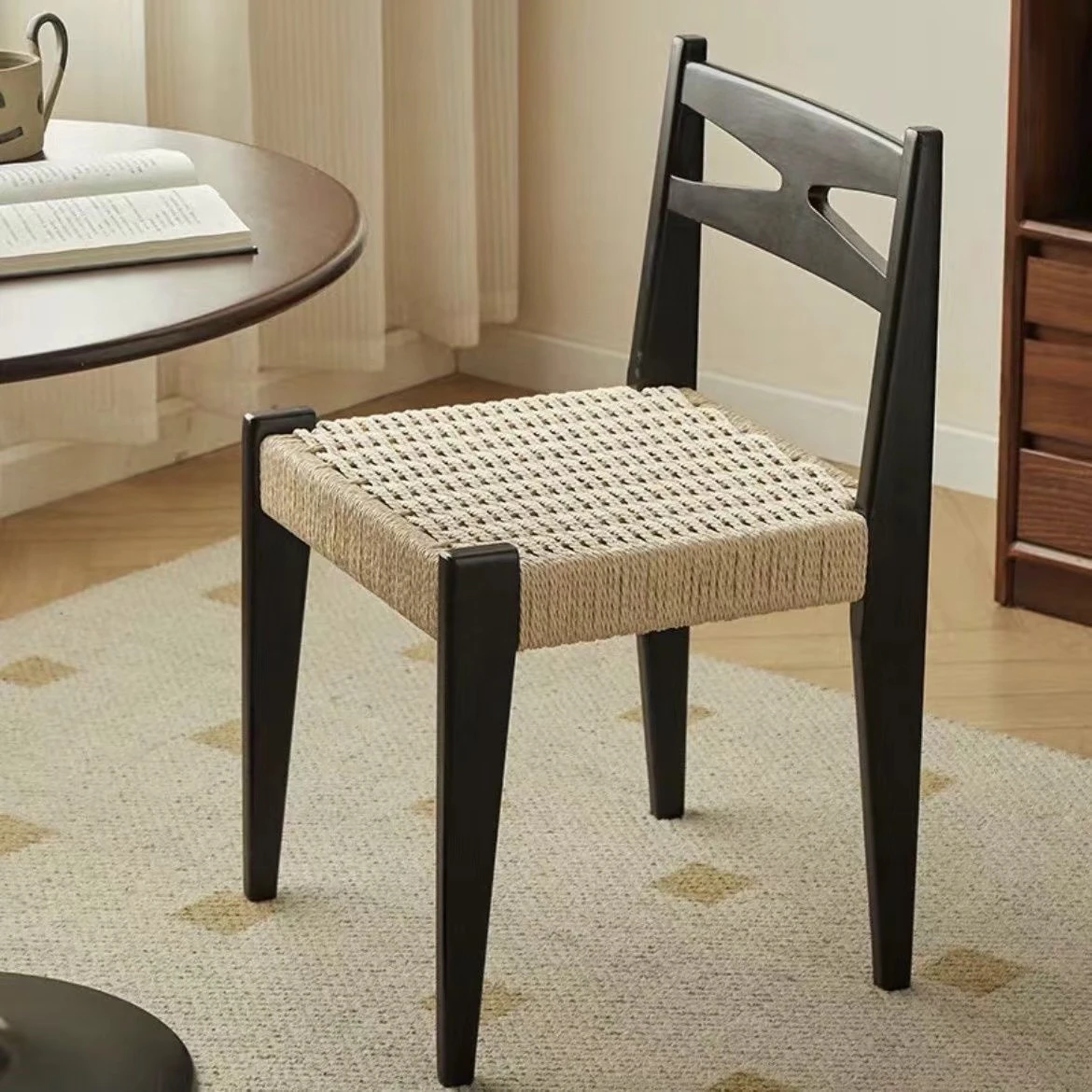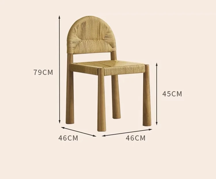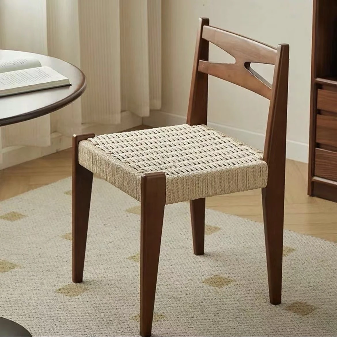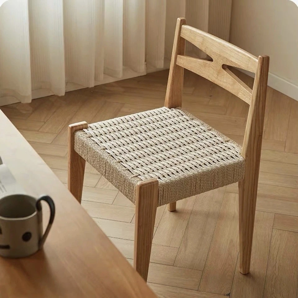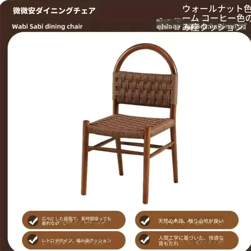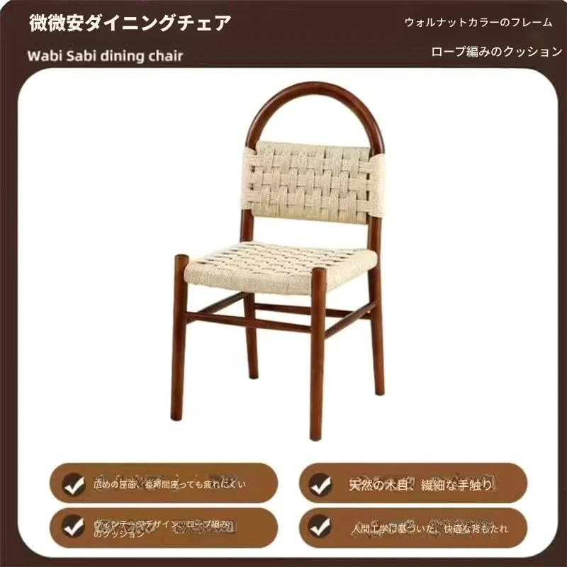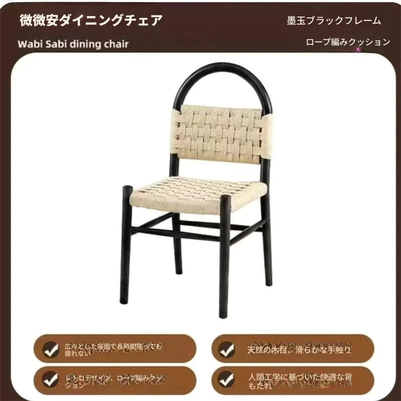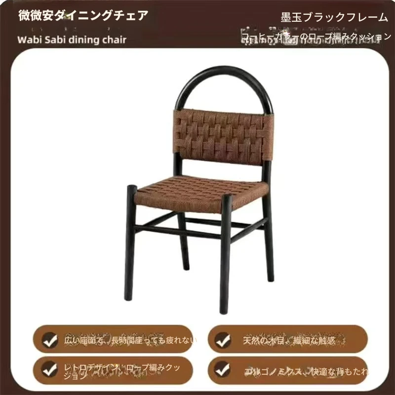 OMEAN北欧スタイルの無垢材ダイニングチェア - 侘寂の美学を取り入れたデザイン、書斎やバルコニーにもぴったり!おしゃれで快適なひとときを提供する、デザイナーのロープ編みカフェチェア。