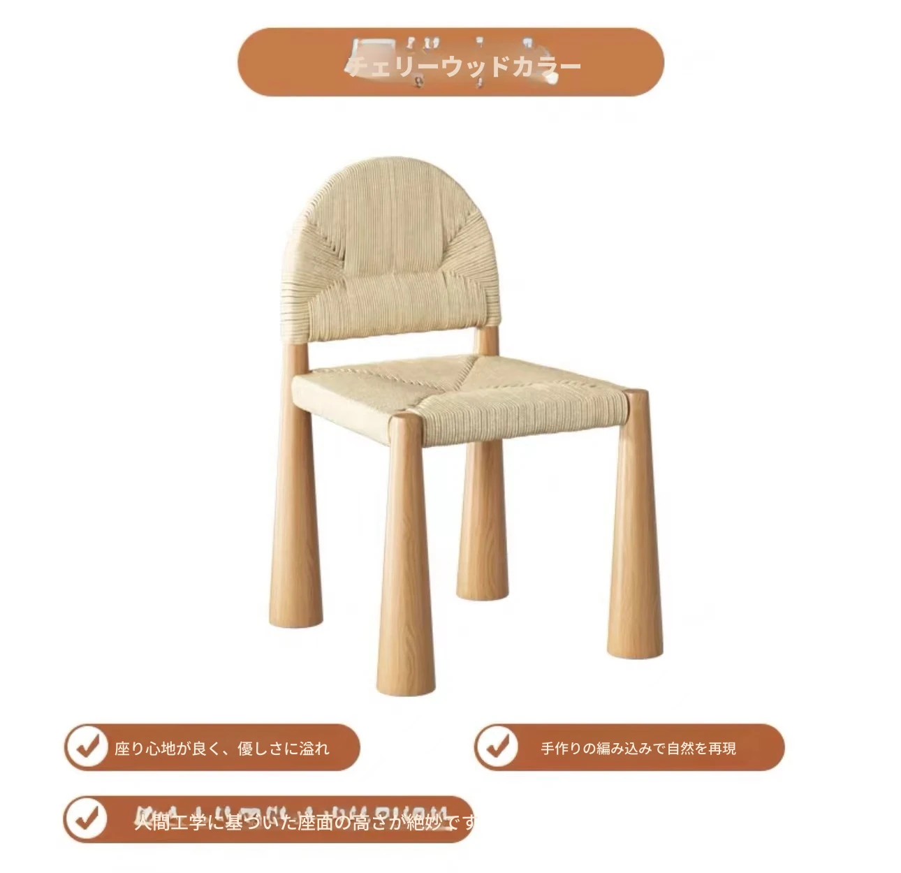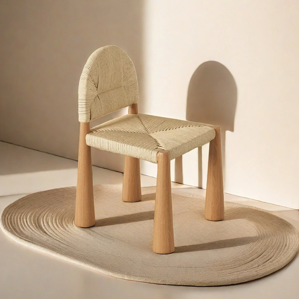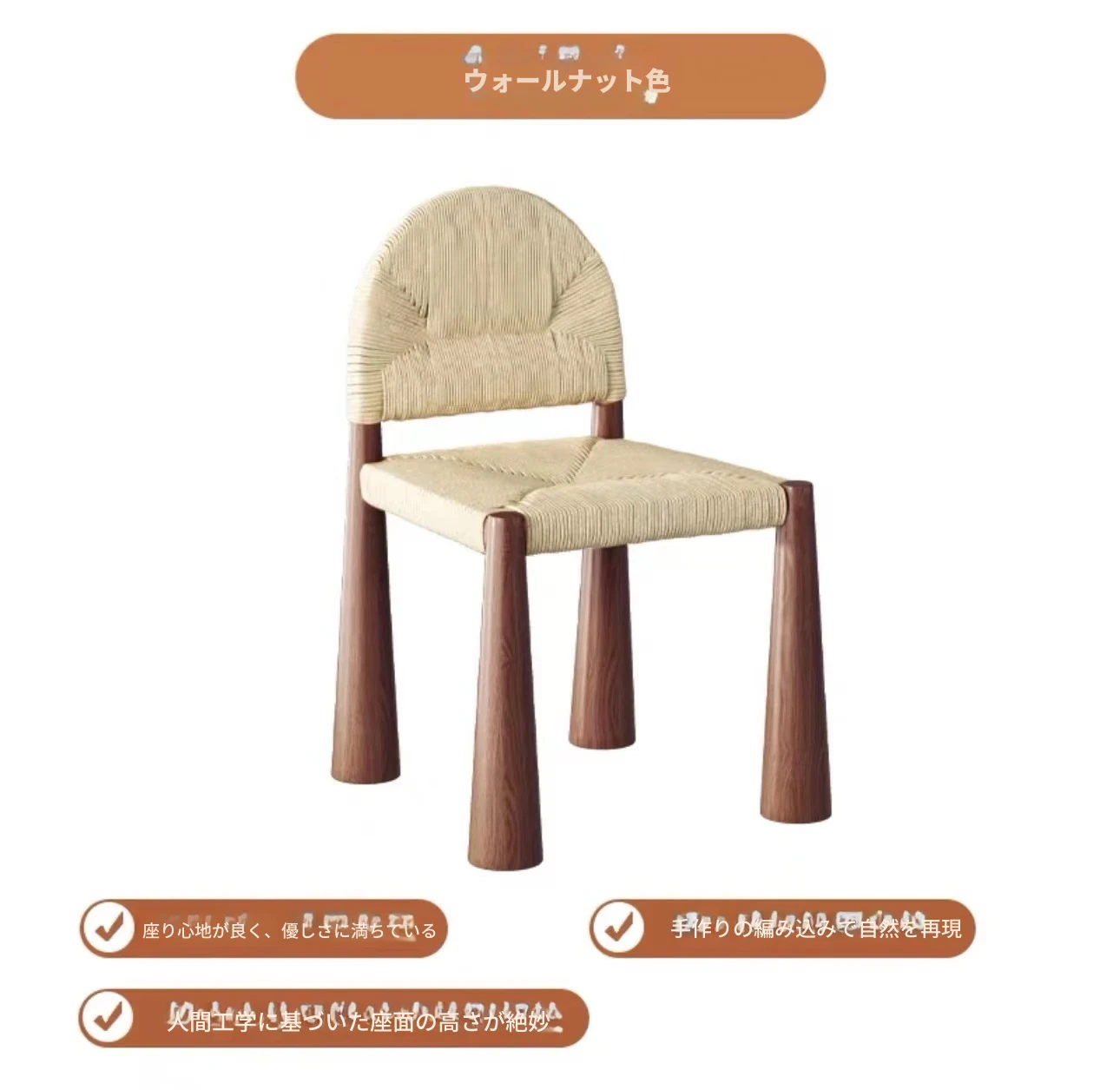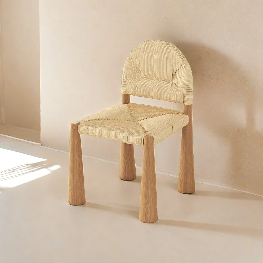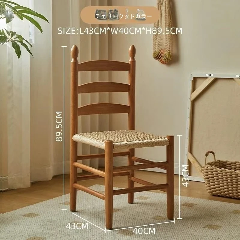 OMEAN北欧スタイルの無垢材ダイニングチェア - 侘寂の美学を取り入れたデザイン、書斎やバルコニーにもぴったり!おしゃれで快適なひとときを提供する、デザイナーのロープ編みカフェチェア。