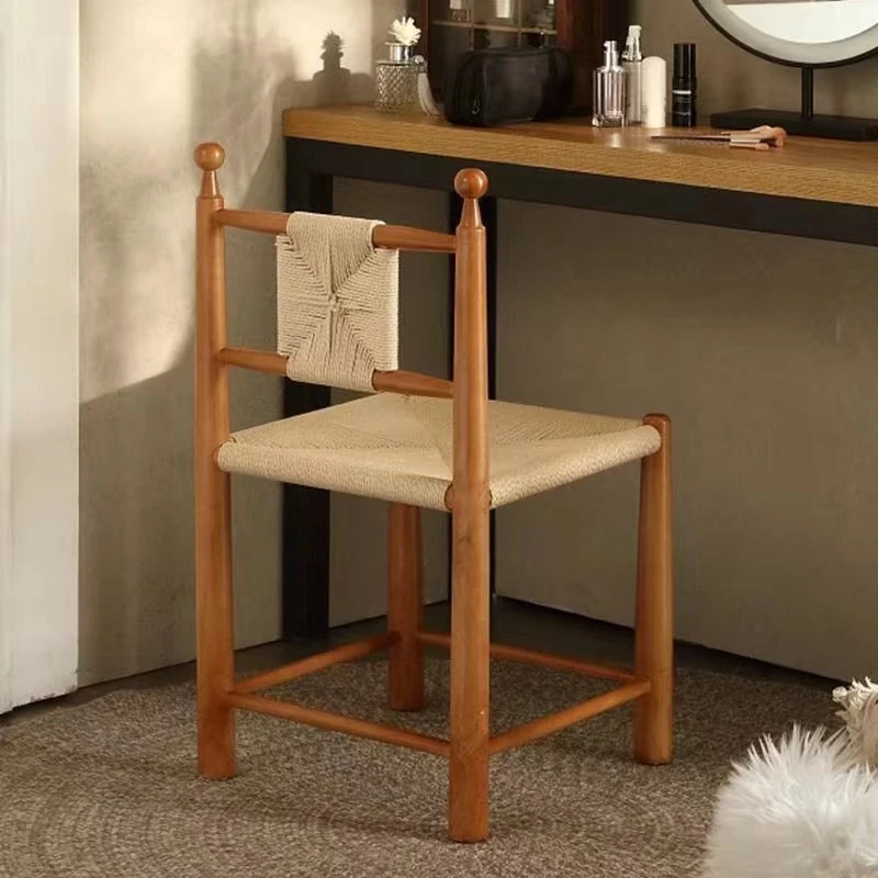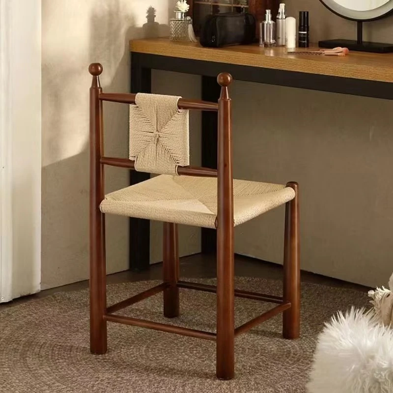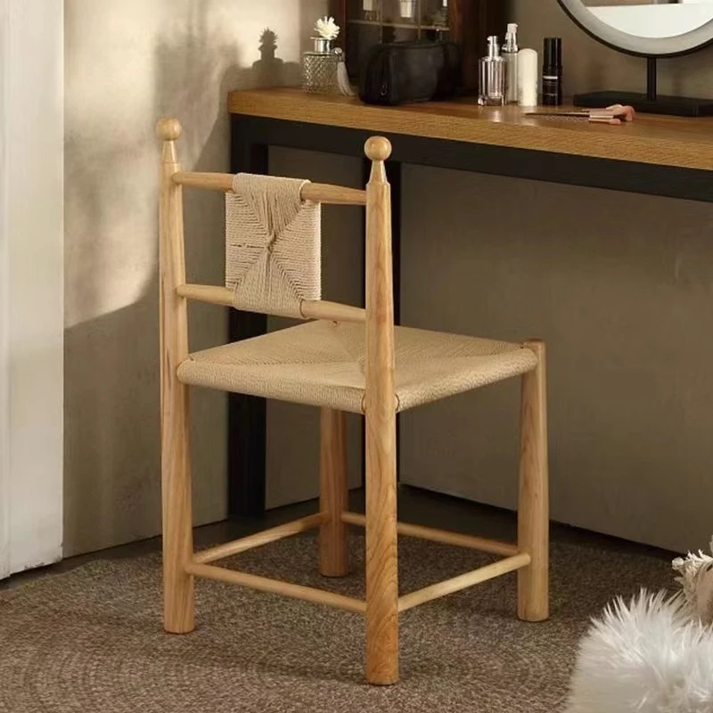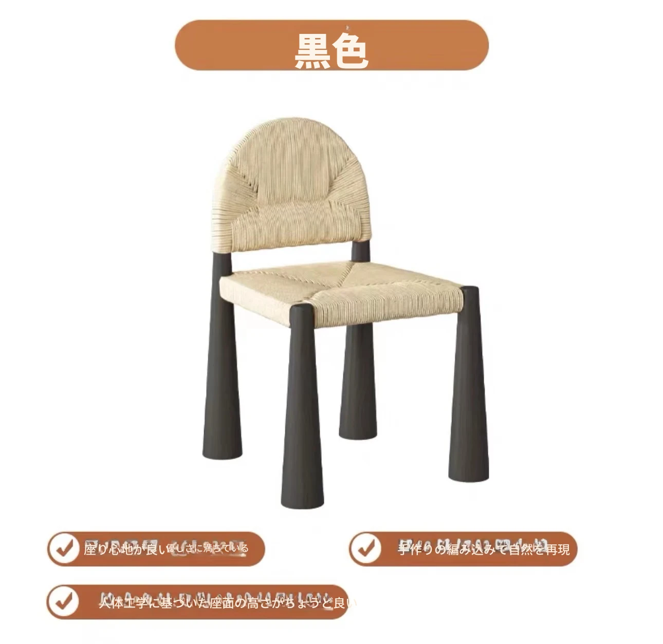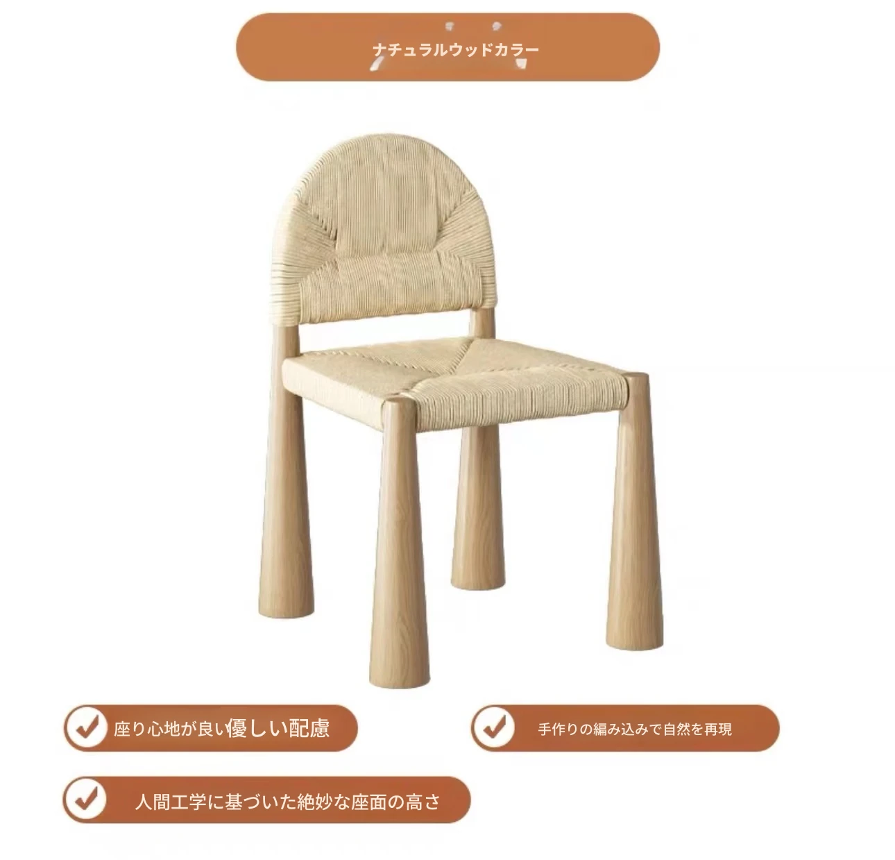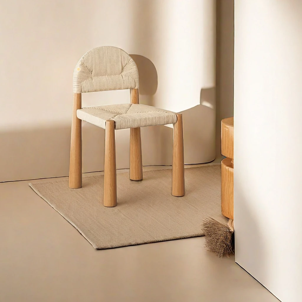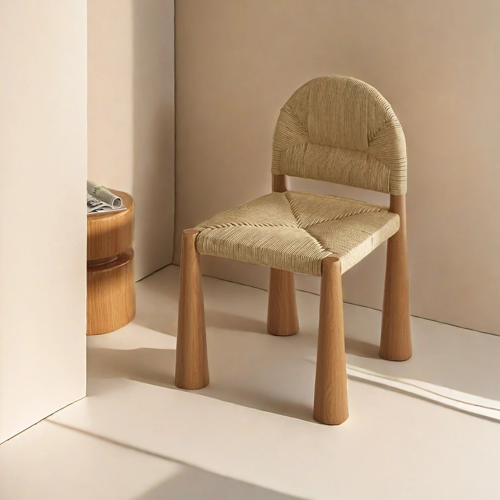 OMEAN北欧スタイルの無垢材ダイニングチェア - 侘寂の美学を取り入れたデザイン、書斎やバルコニーにもぴったり!おしゃれで快適なひとときを提供する、デザイナーのロープ編みカフェチェア。