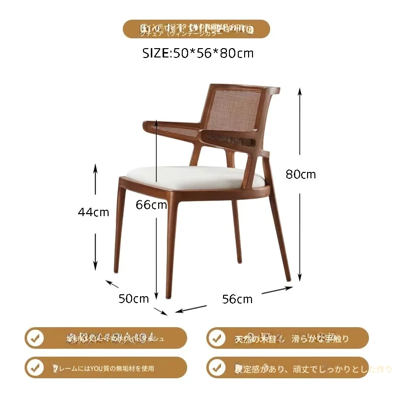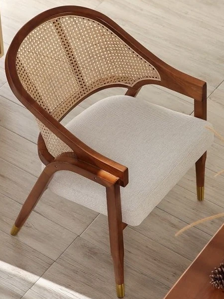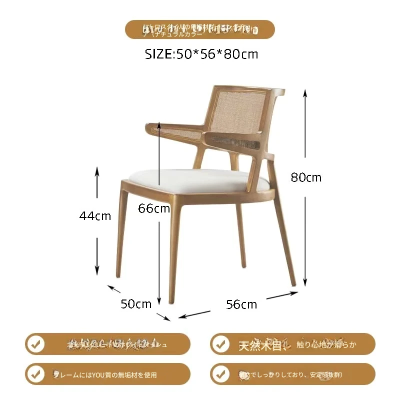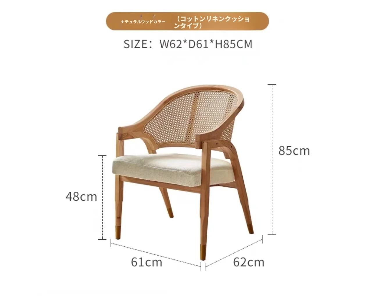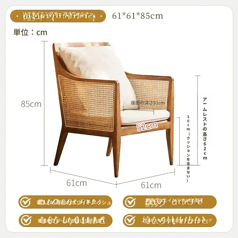 OMEAN北欧レトロラタンチェア - リラックスできるバルコニー用、カフェやレストランにぴったりのソフトパッド付き天然木アームチェア、インスタ映えするデザイン!