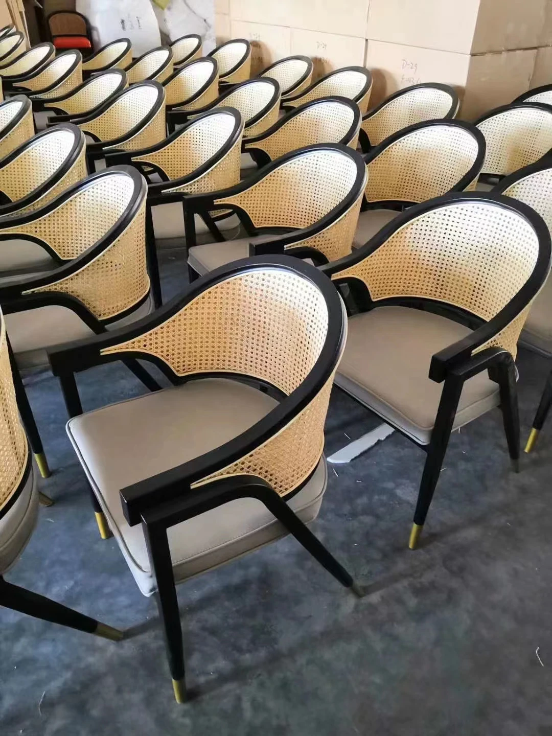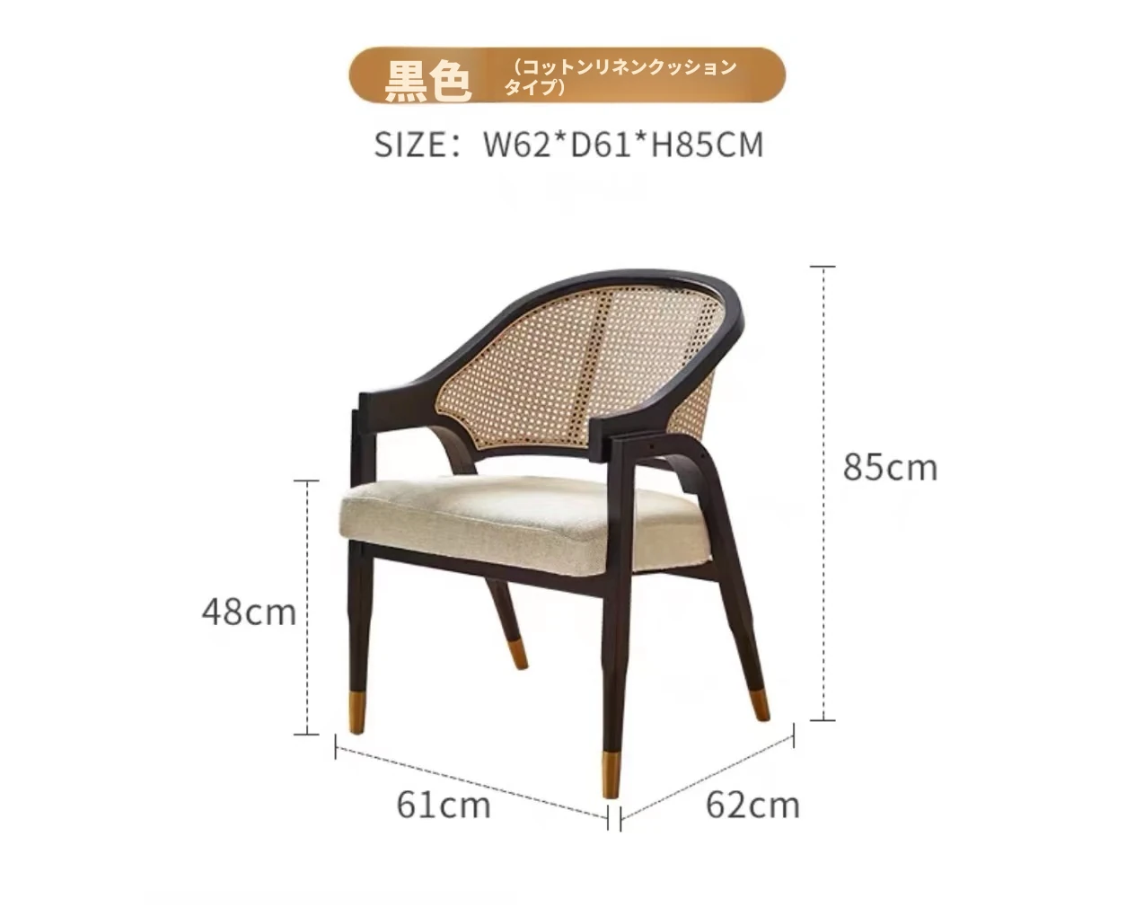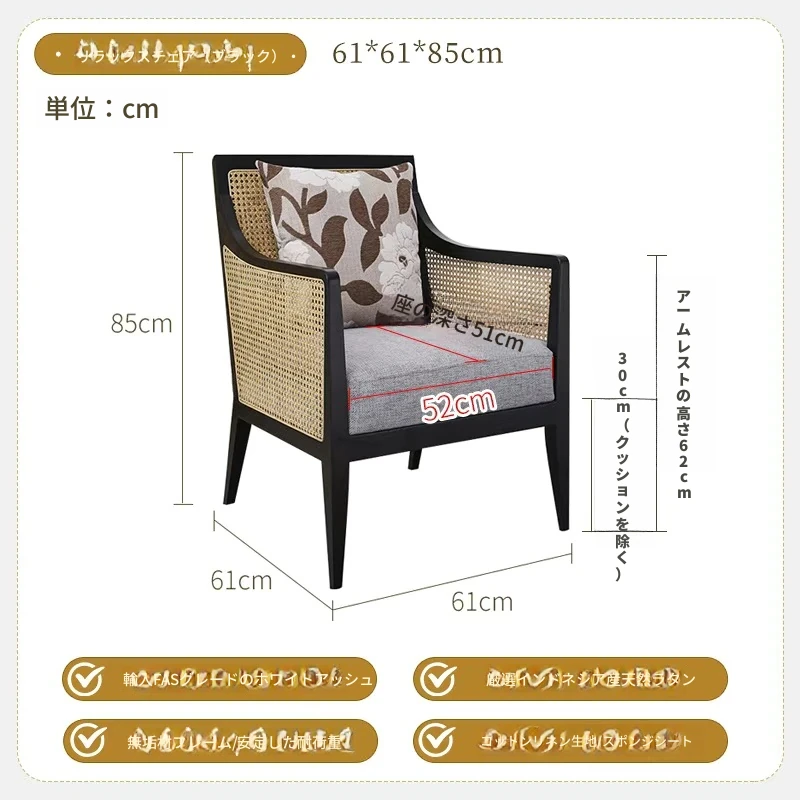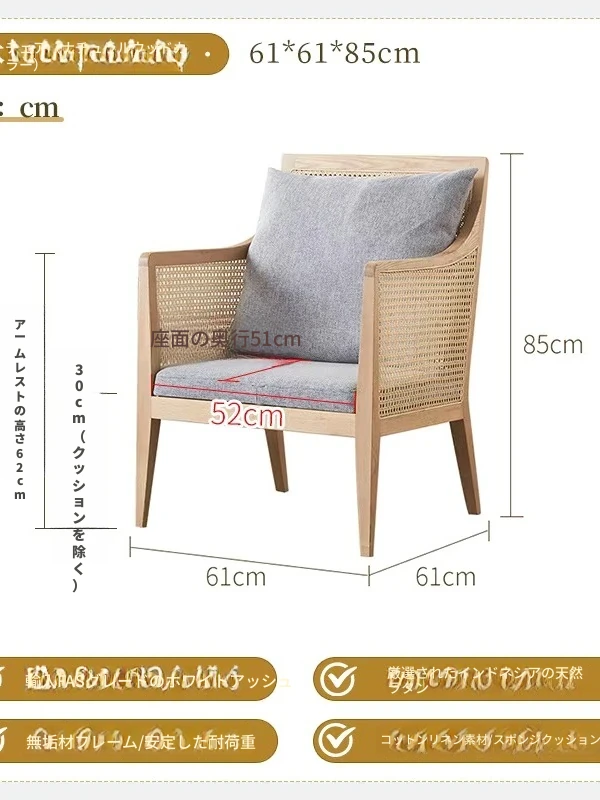 OMEAN北欧レトロラタンチェア - リラックスできるバルコニー用、カフェやレストランにぴったりのソフトパッド付き天然木アームチェア、インスタ映えするデザイン!