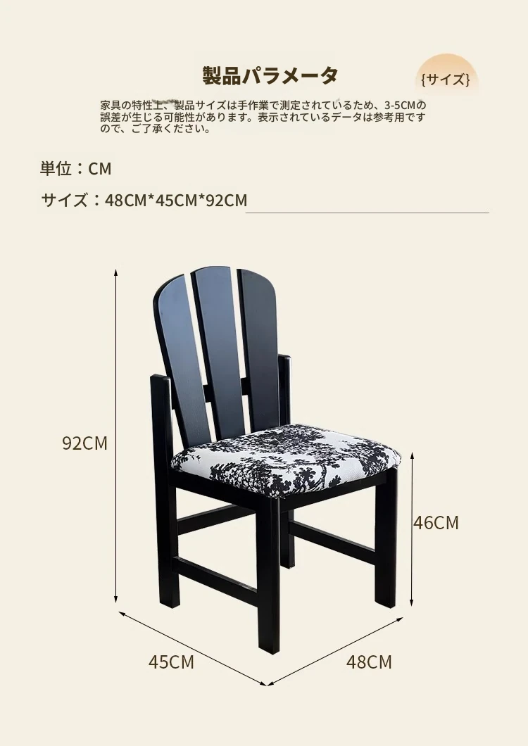 OMEAN無垢材ダイニングチェア デザイナーズチェア 北欧の侘寂風 家庭用リラックス フレンチヴィンテージ 創造的な背もたれ付き椅子で、洗練されたスタイルと快適さを両立!あなたの食卓を華やかに演出します。