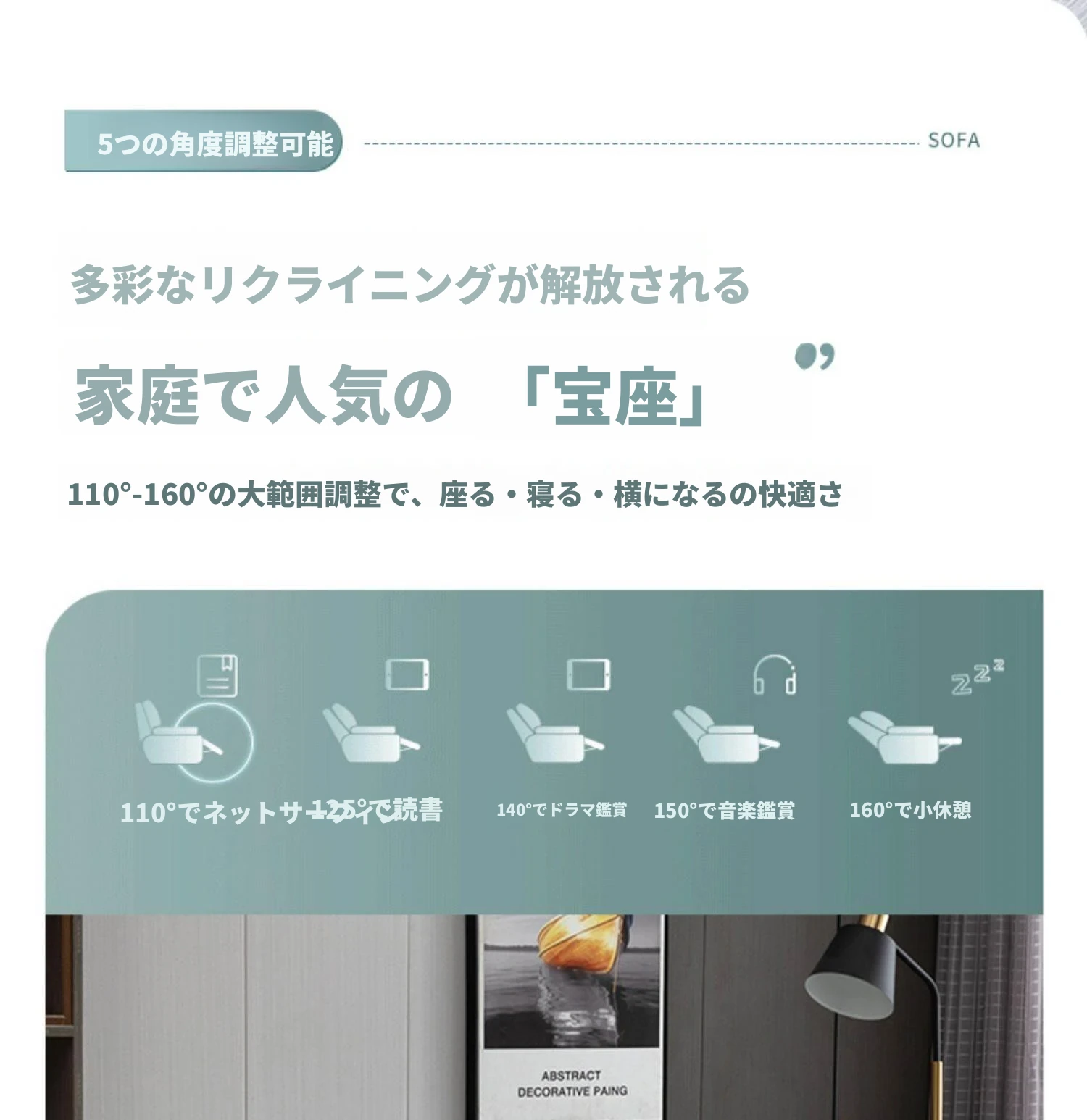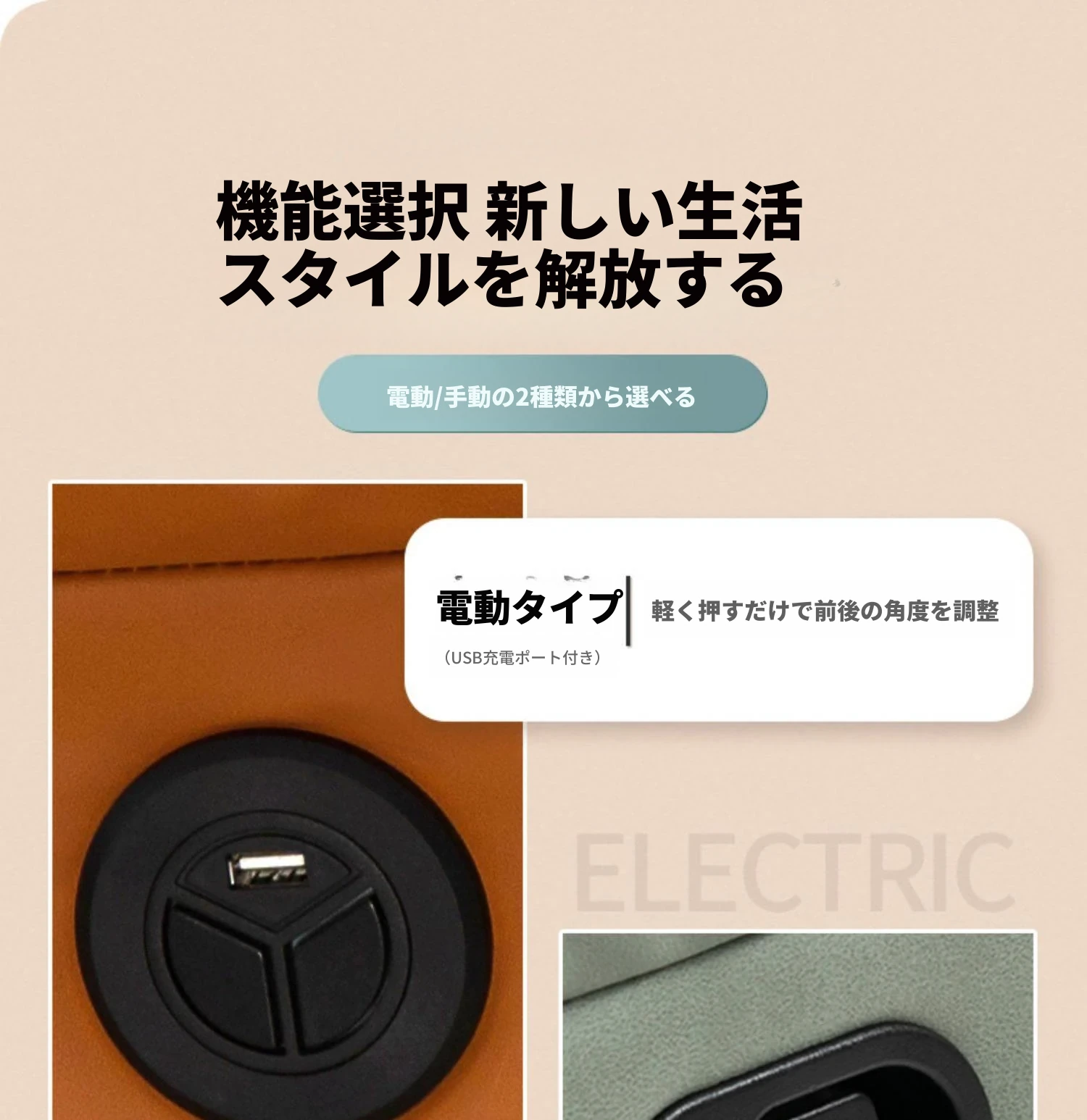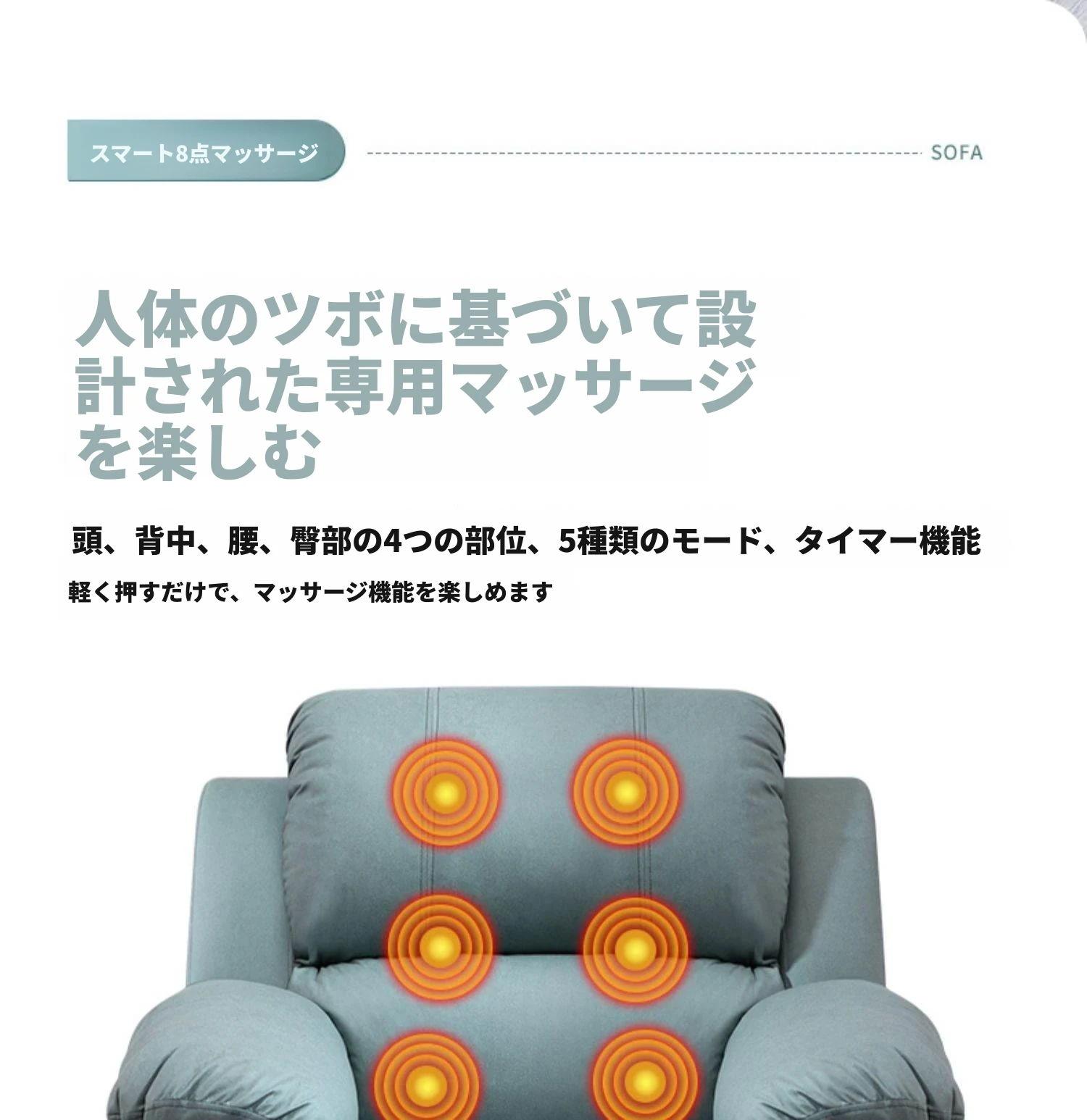 【電動調整+180°回転+USBポート】抹茶色テクノロジー布、1人用