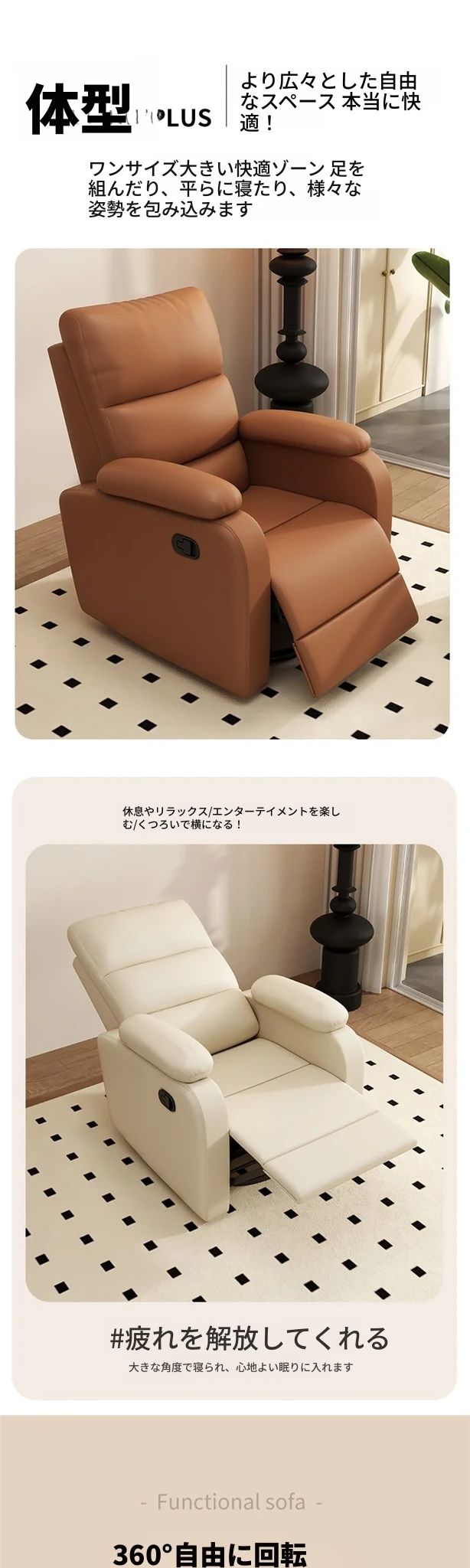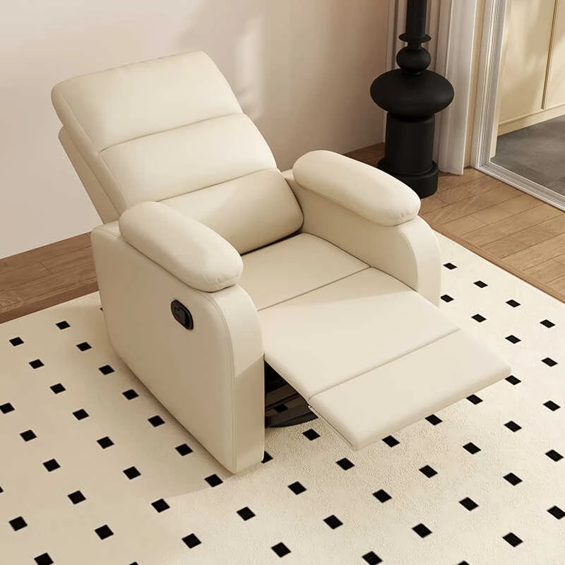 手動座位リクライニング+手動回転+振動マッサージ-キャットクロー皮アイボリー(アームレスト付き)