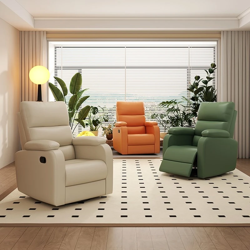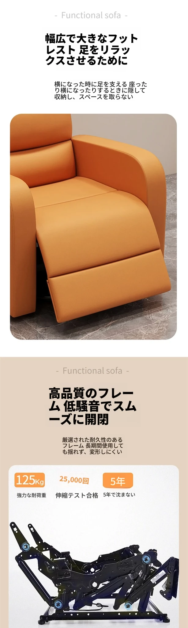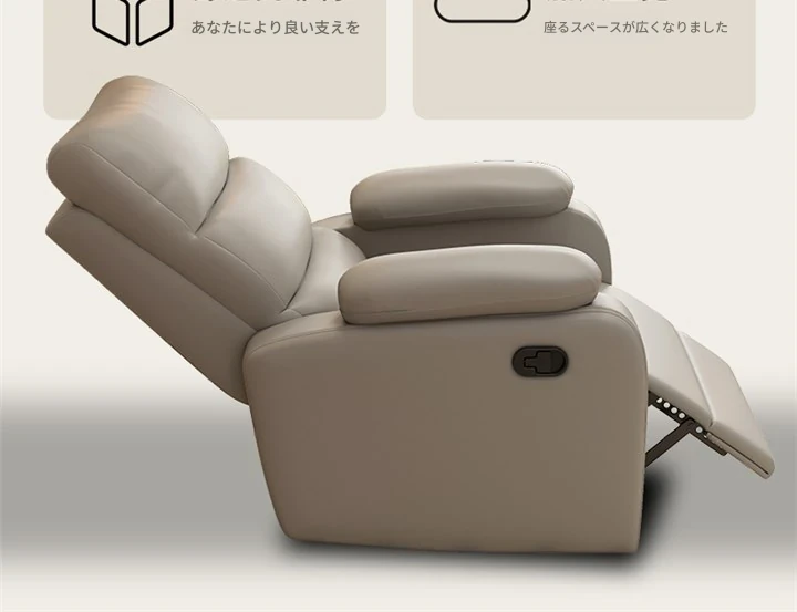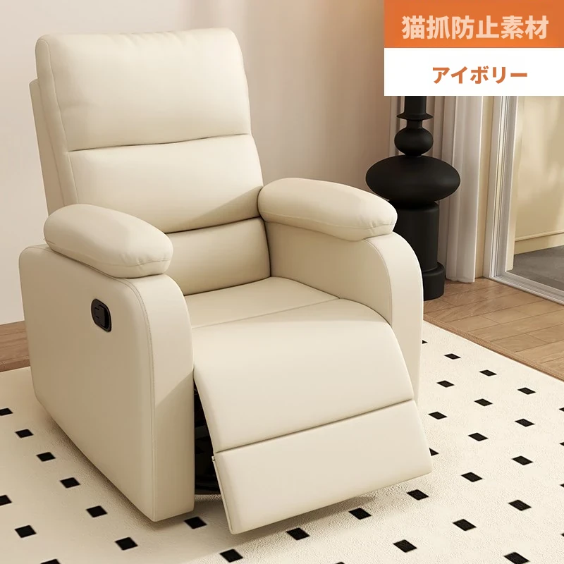 手動座位リクライニング+振動マッサージ-キャットクロー皮アイボリー(アームレスト付き)