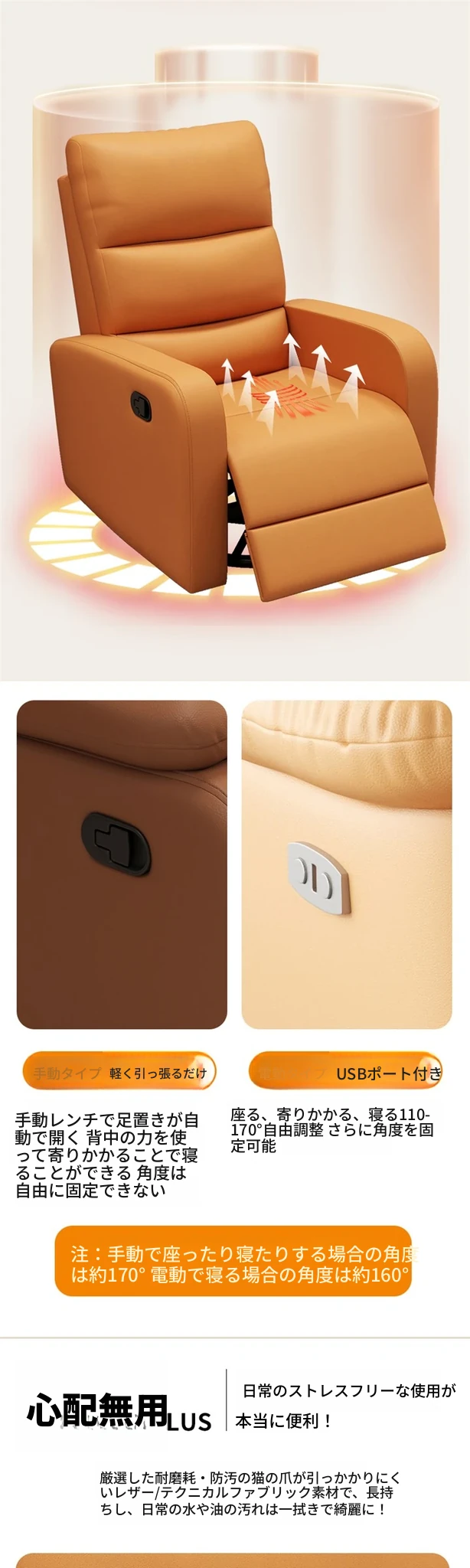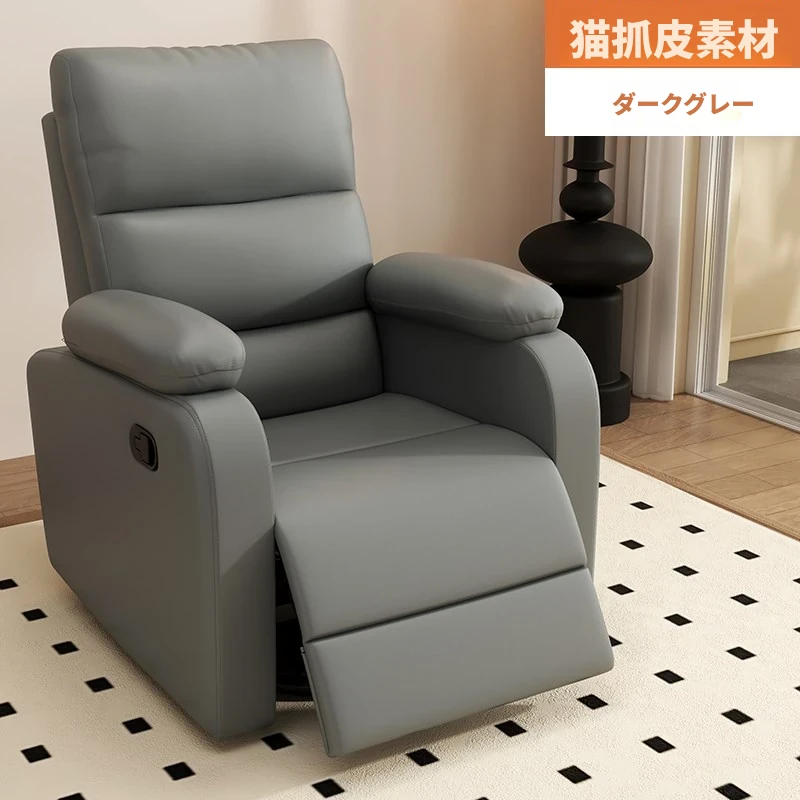 電動座位リクライニング+手動回転+振動マッサージ-キャットクロー皮ダークグレー(アームレスト付き)