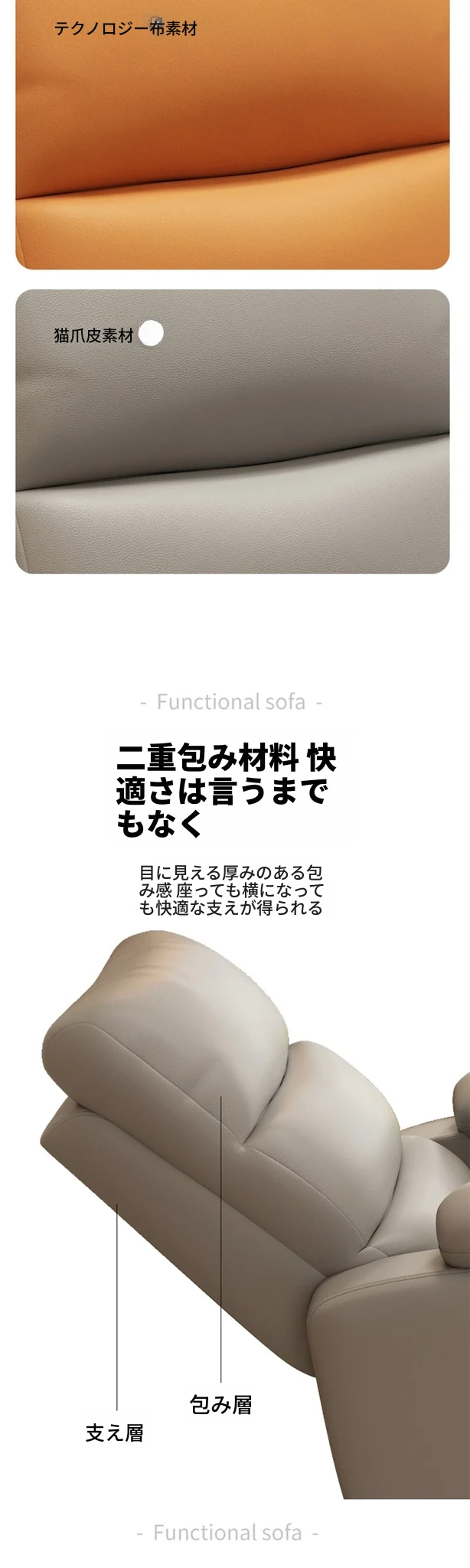 電動座位リクライニング+振動マッサージ-キャットクロー皮ダークグレー(アームレスト付き)