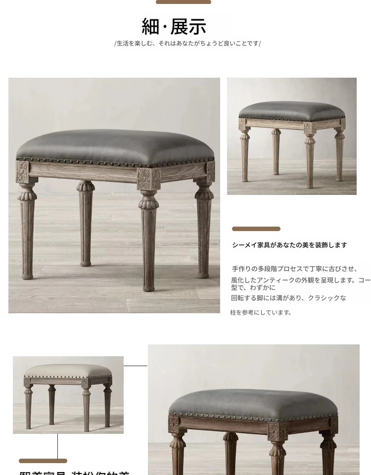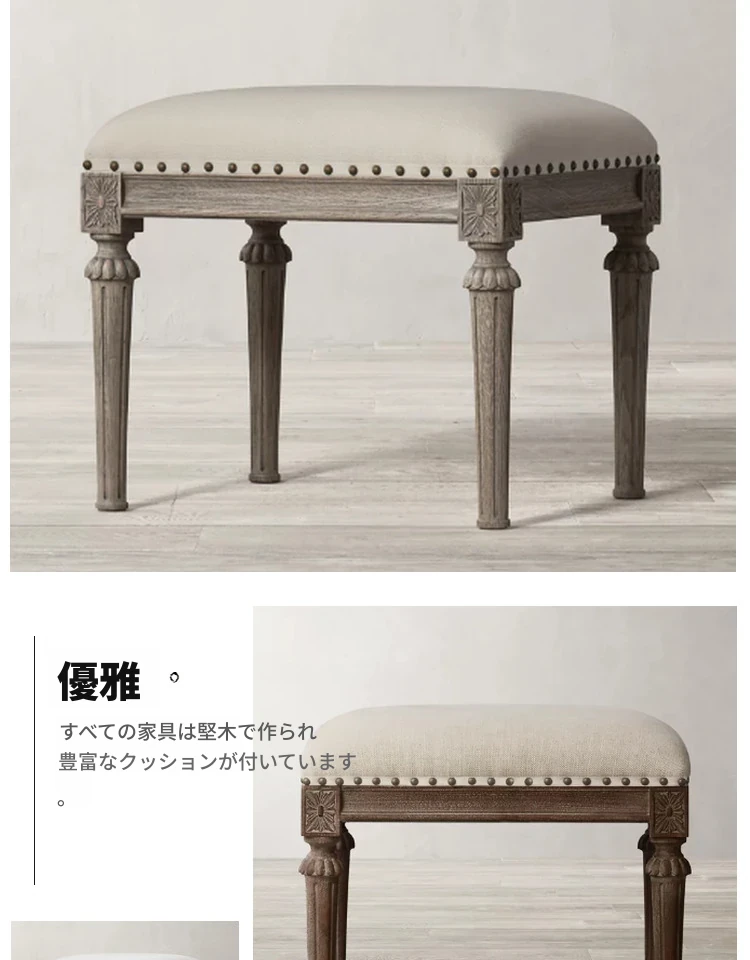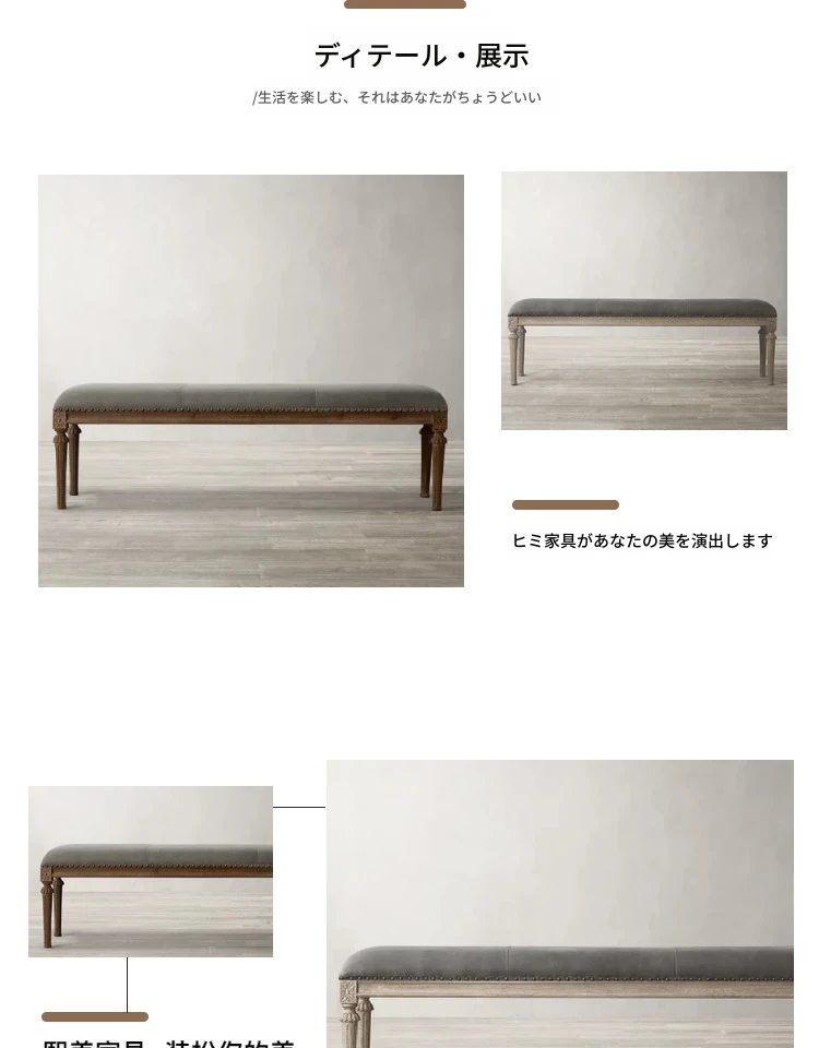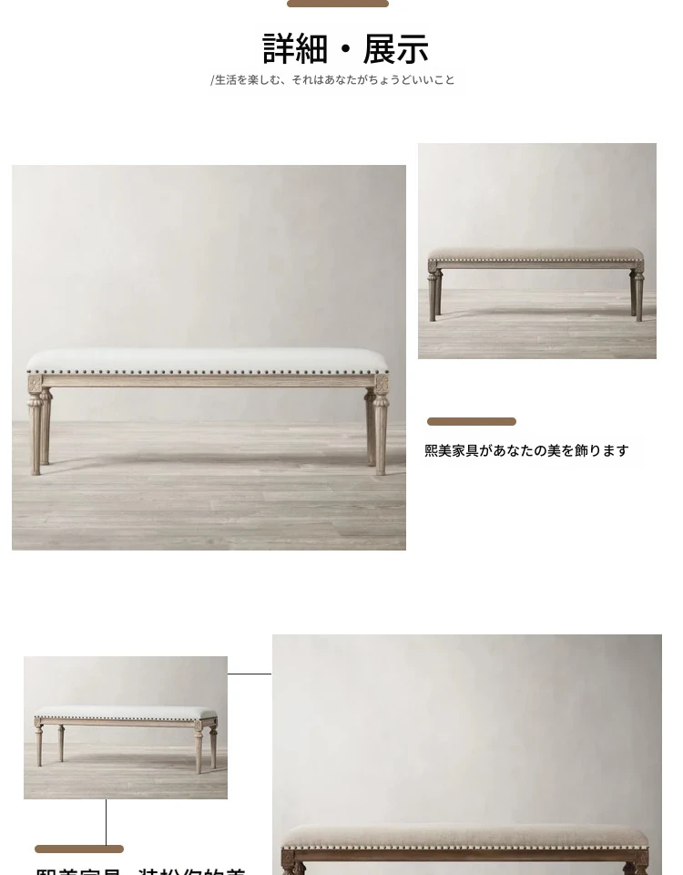 R/Hレザー調/ベッドサイドベンチ・ドレッサー・メイクアップスツール・靴を履くためのスツール・ファブリック・無垢材・フレンチシンプルスタイルの美しさをあなたの寝室に。