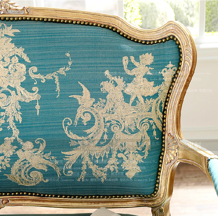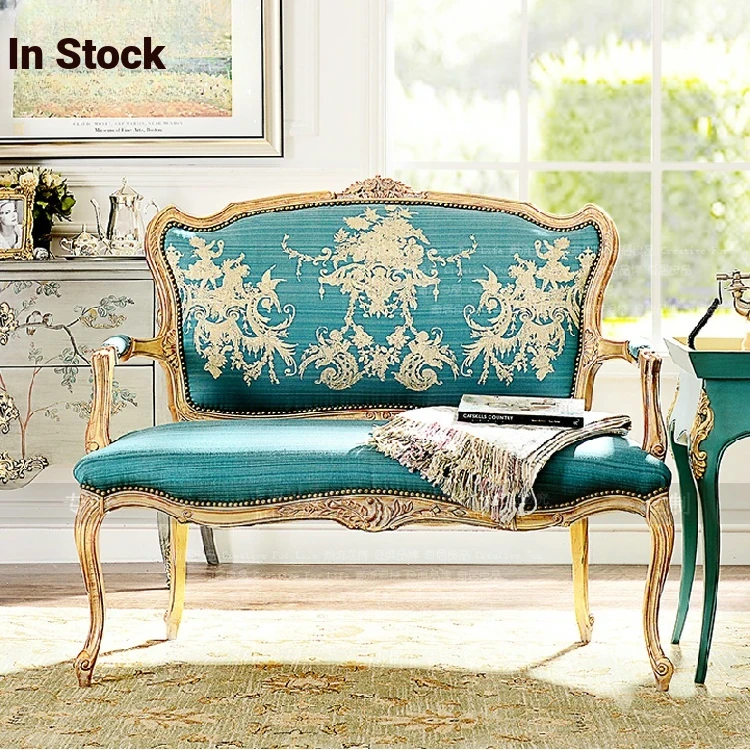Rustic American & European French Style Double Sofa - Vintage Carved Solid Wood Three-Seater for Villas and Showrooms, Perfect for Cozy Gatherings