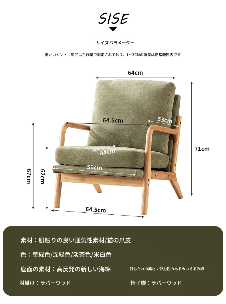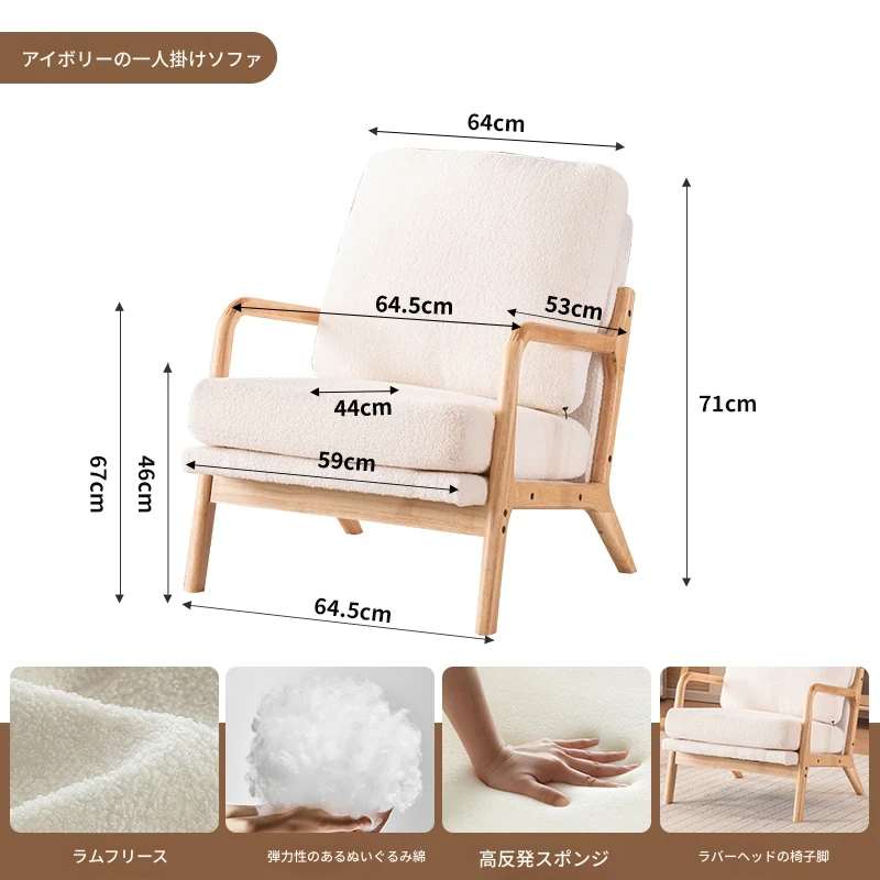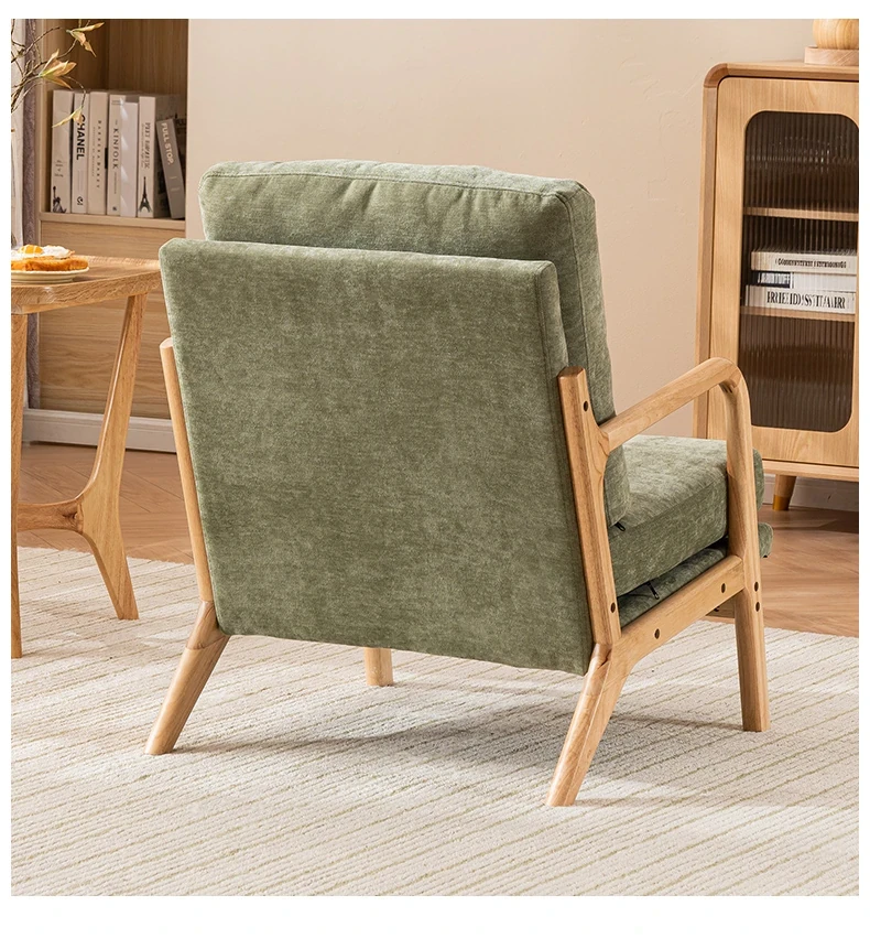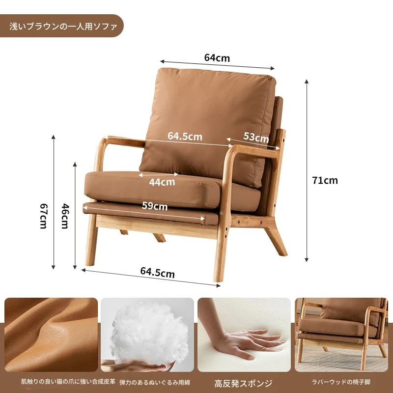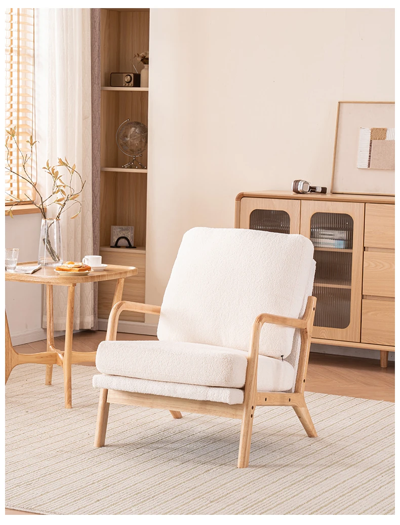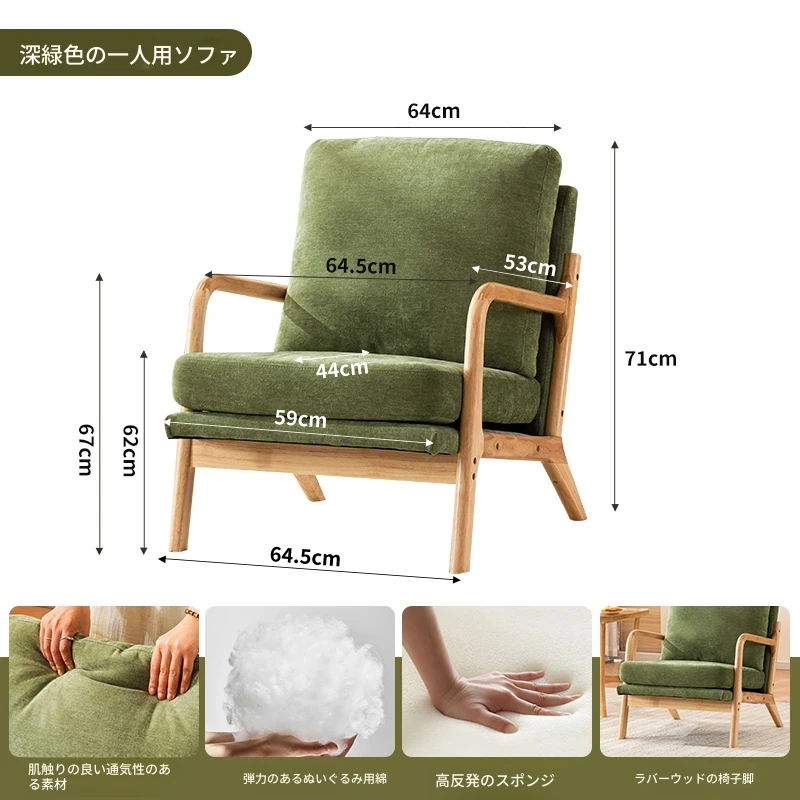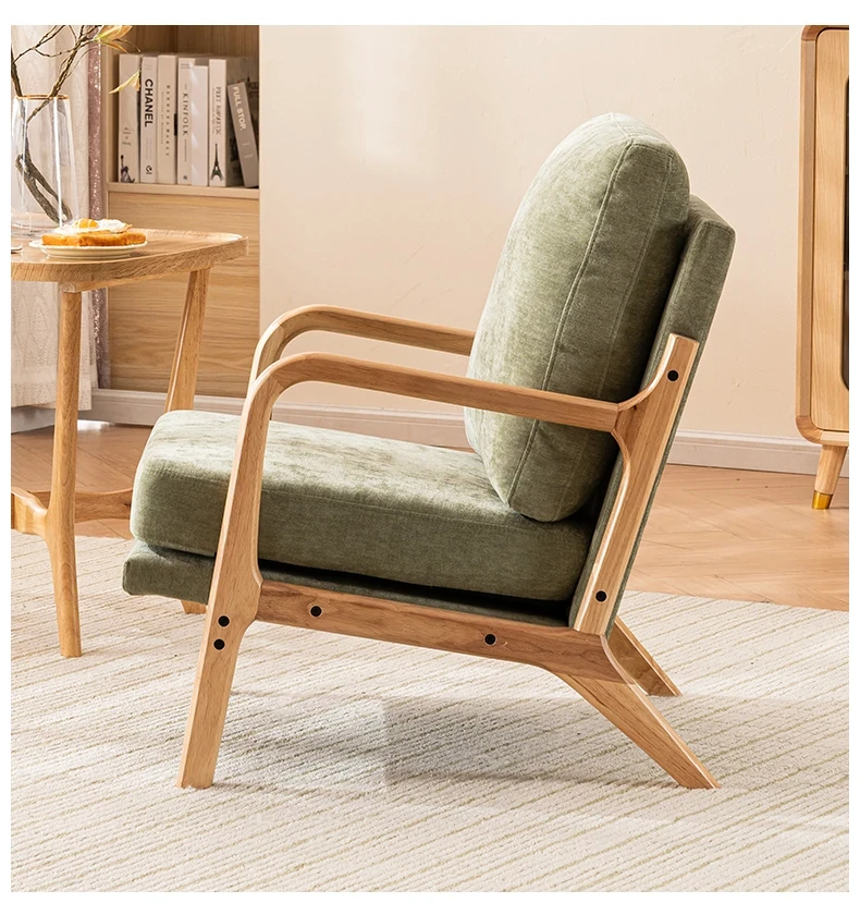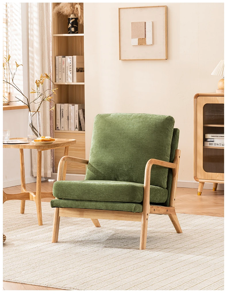 天然木製のファブリック一人掛けソファチェア|家庭用リビングに最適|ティーテーブルとのコンビネーション|民宿や接客にぴったりな洽談・リラックスソファチェア