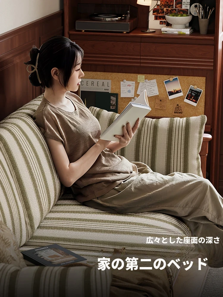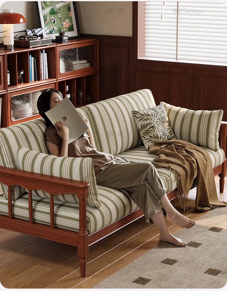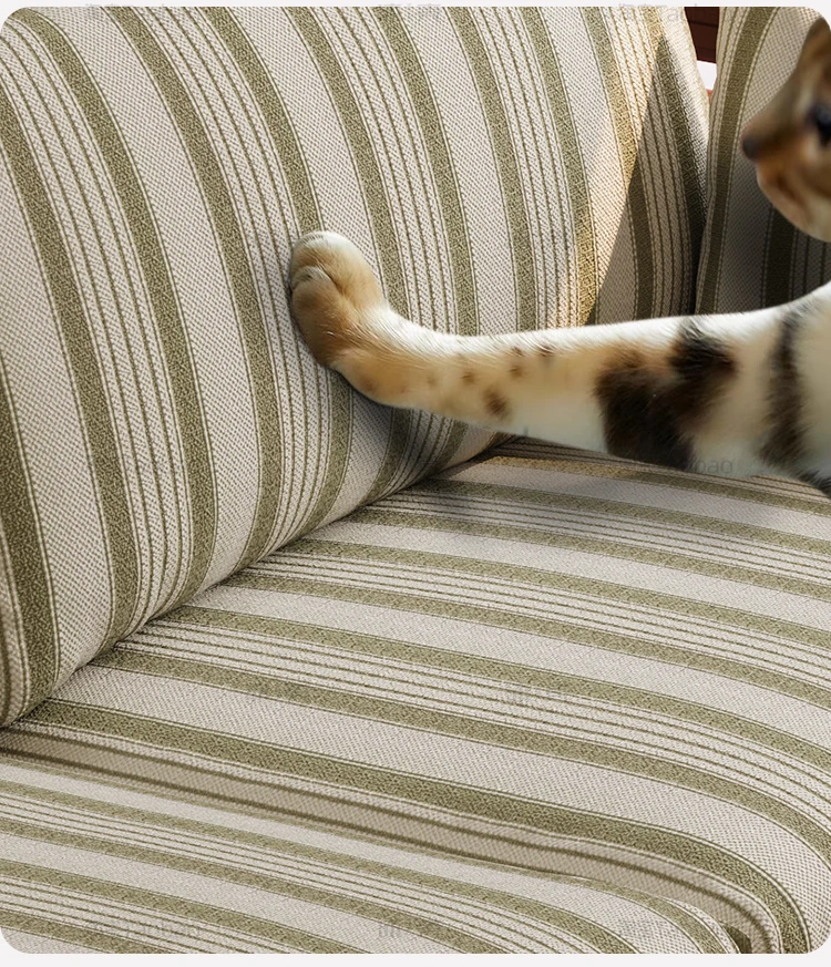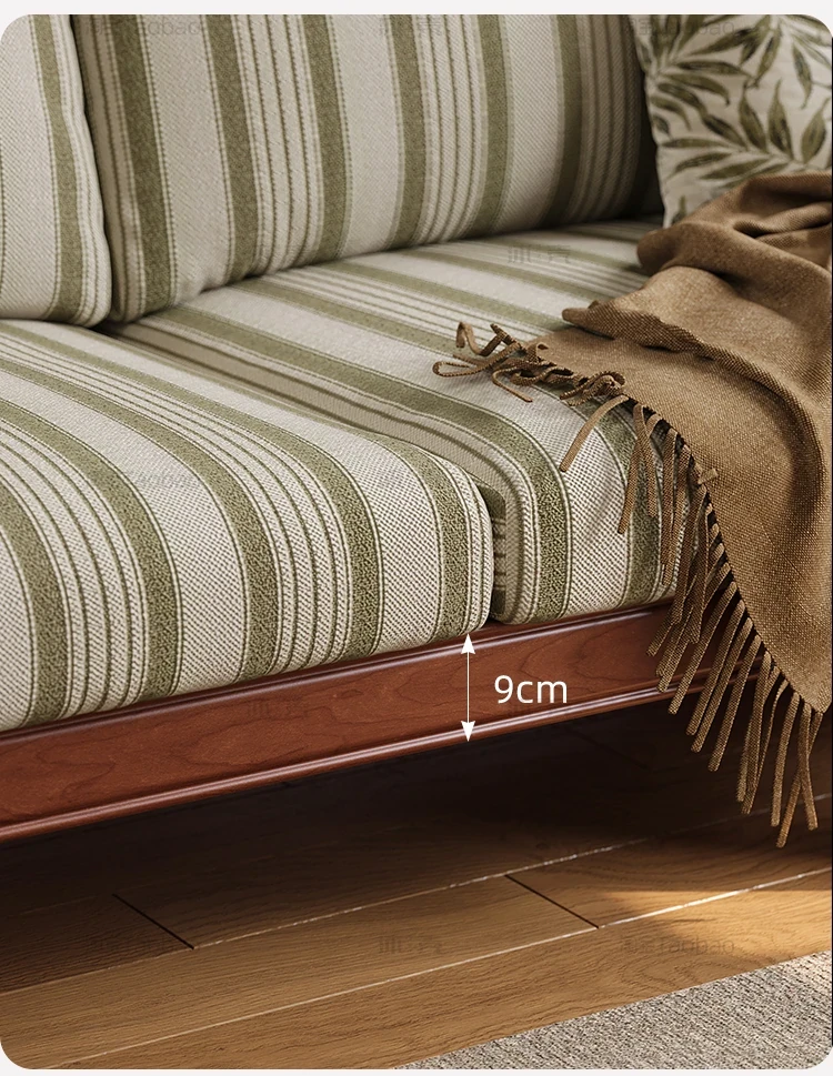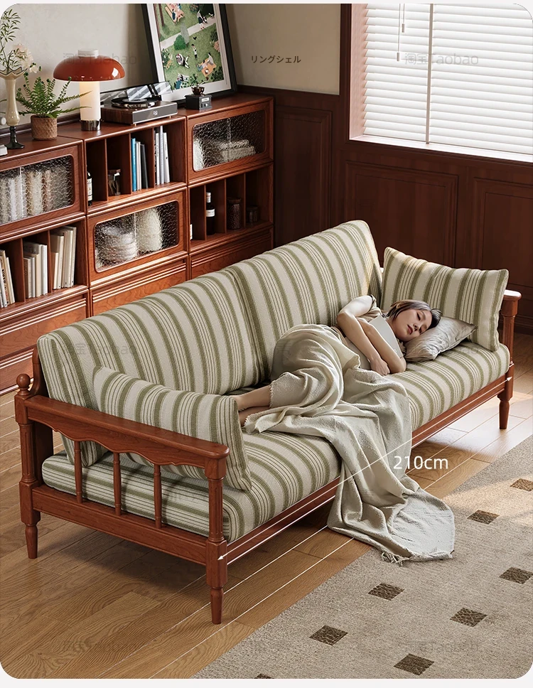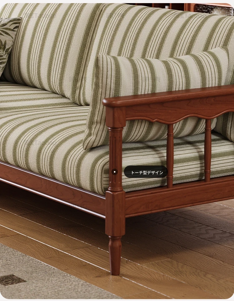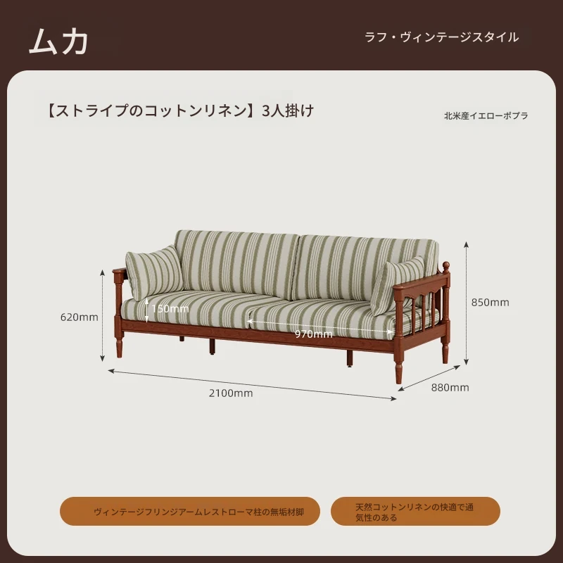 【全実木】2.1M三人用ソファ(ストライプコットンリネン)