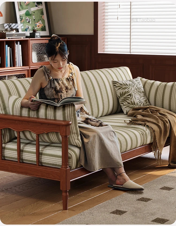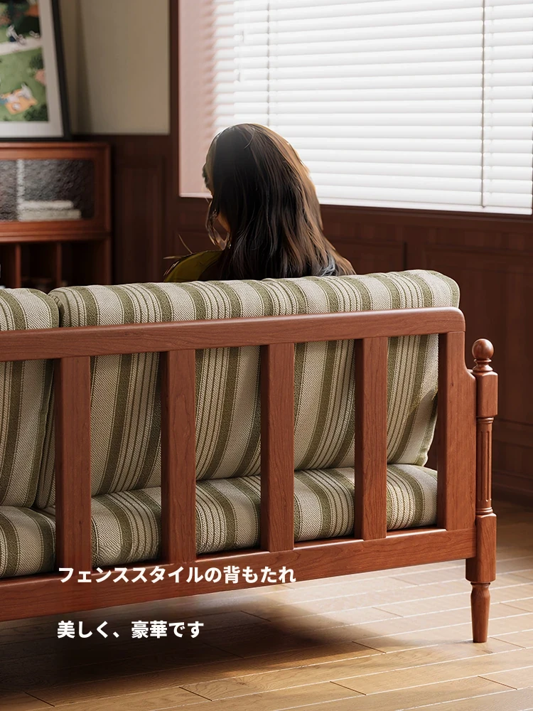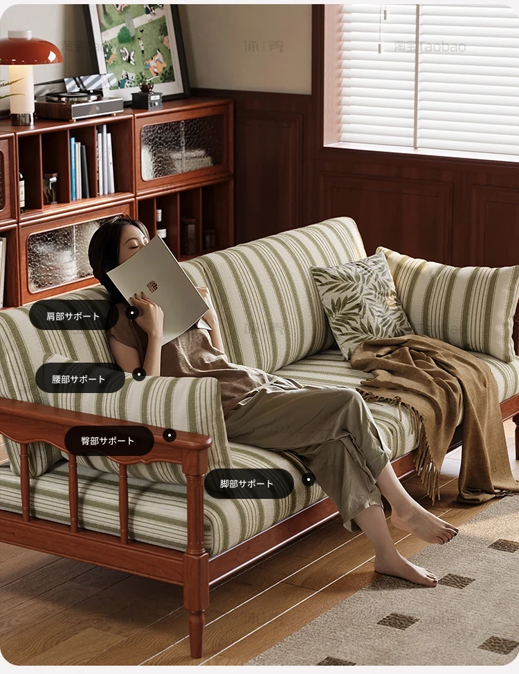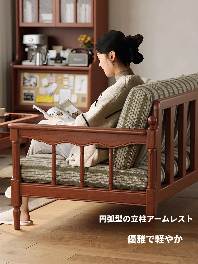 全実木製ソファ 小型リビング向け 家庭用 3人掛け 黄楊木 中古風 デタッチャブル洗濯可能 ファブリック ストレートソファで、スタイリッシュな空間を演出!
