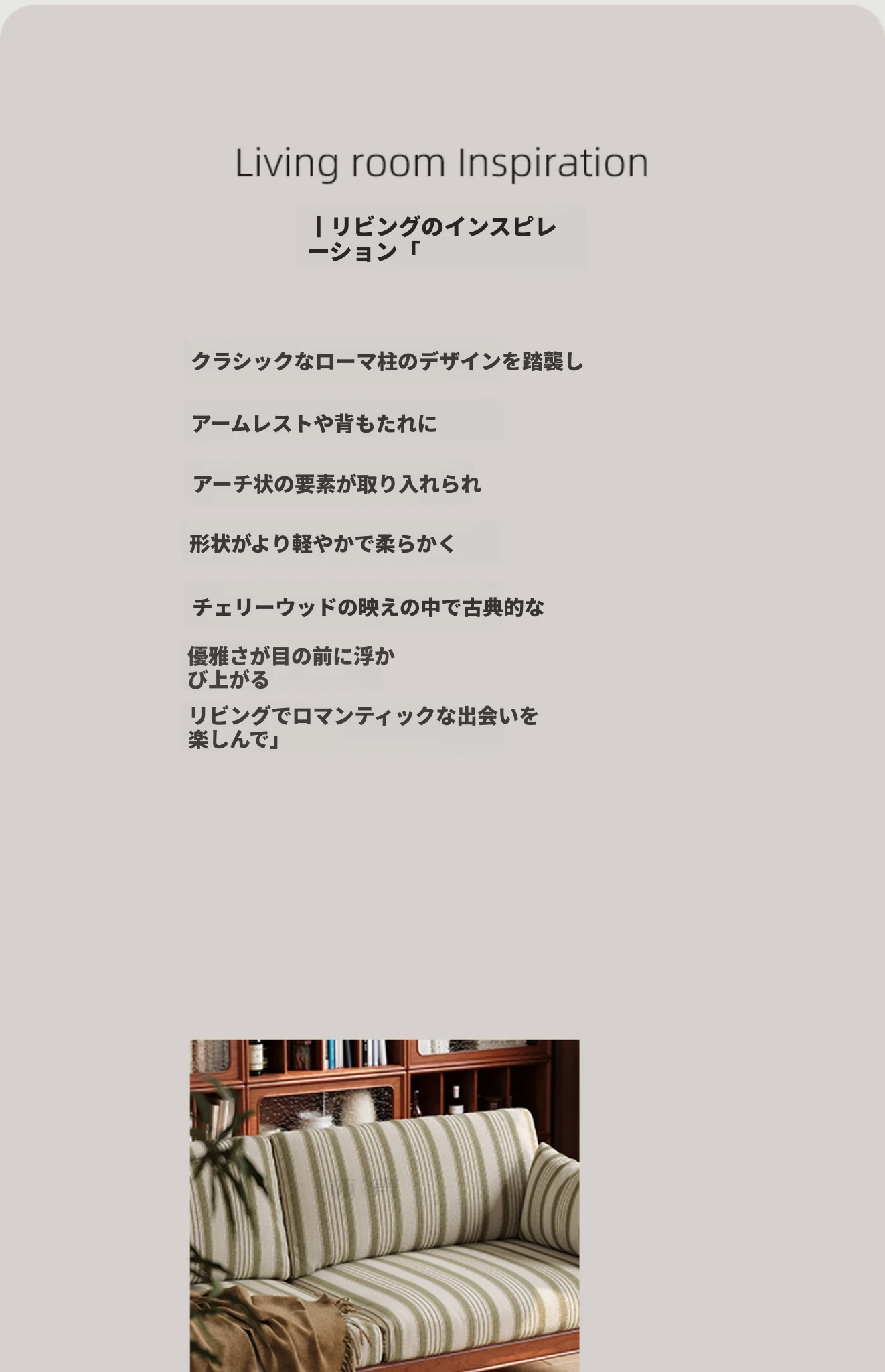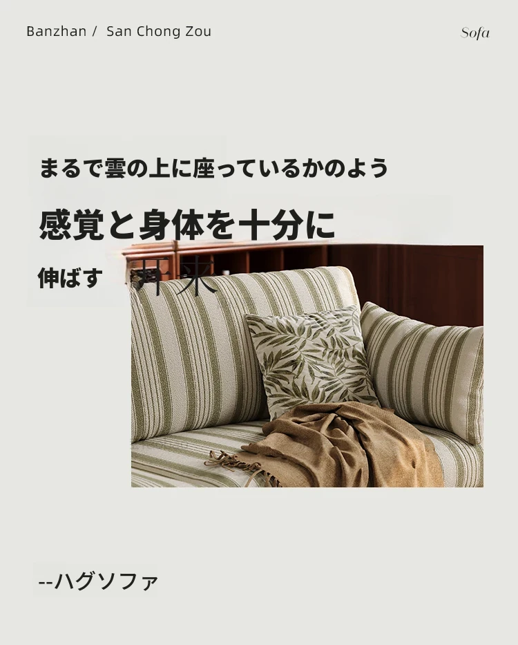 【全実木】2.1M三人用ソファ+オットマン(ストライプコットンリネン)