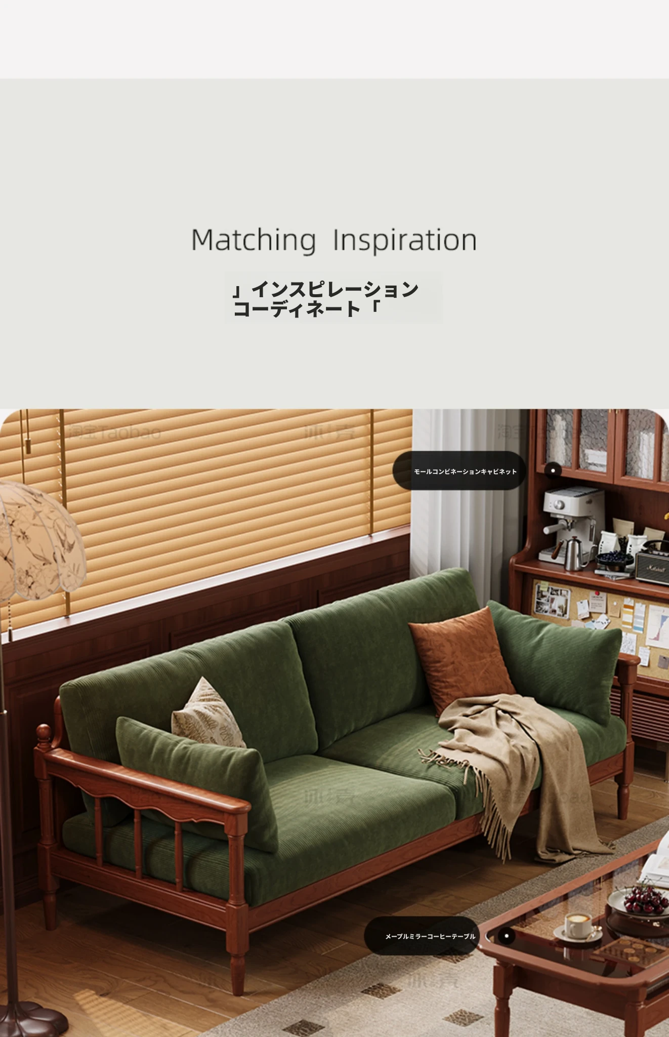 【全実木】2.1M三人用ソファ(コーデュロイ)