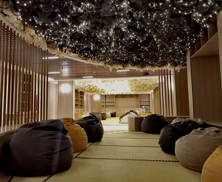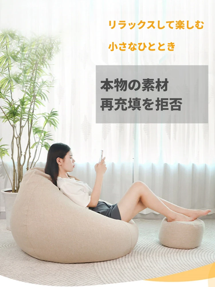 春のリラックス豆袋ソファ|ひと休みできるタタミスタイル|バルコニーや温泉でのくつろぎに最適|小スペースでも使える変形デザイン!