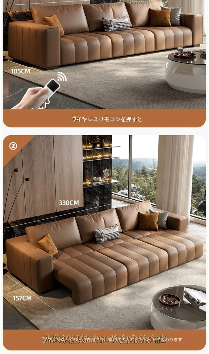 3.85メートル 四人用 フルグレイン 本革 電動ソファ