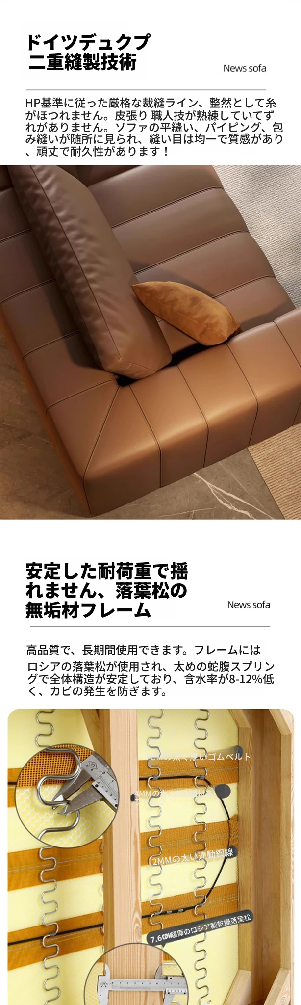 1.95メートル ダブル 二人用 フルグレイン 本革 電動ソファ