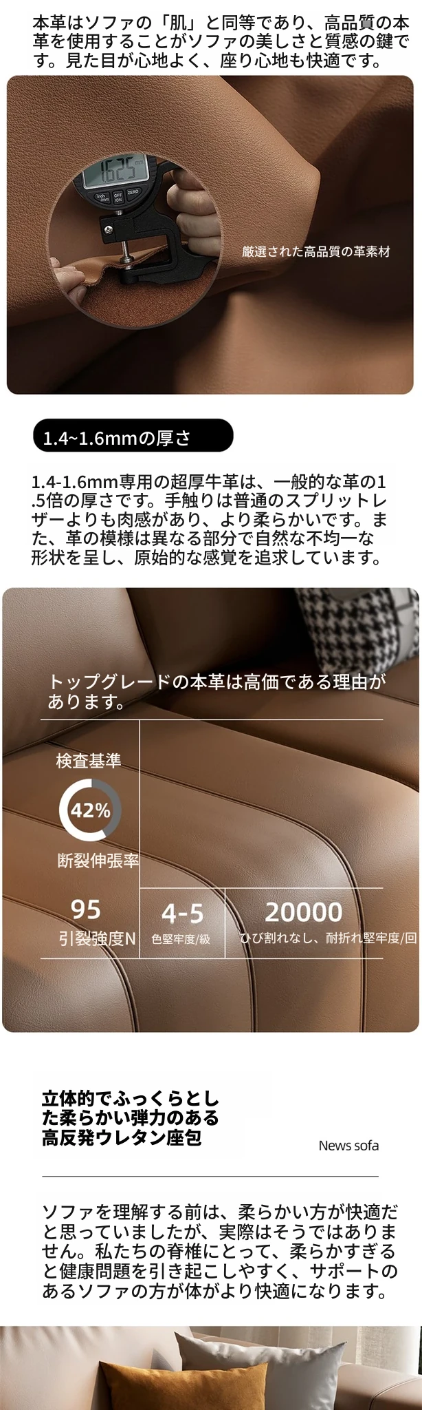 4.25メートル 四人用 フルグレイン 本革 電動ソファ
