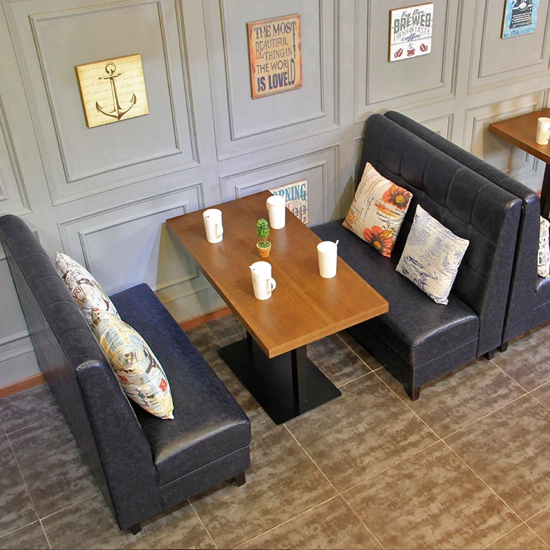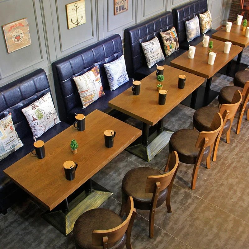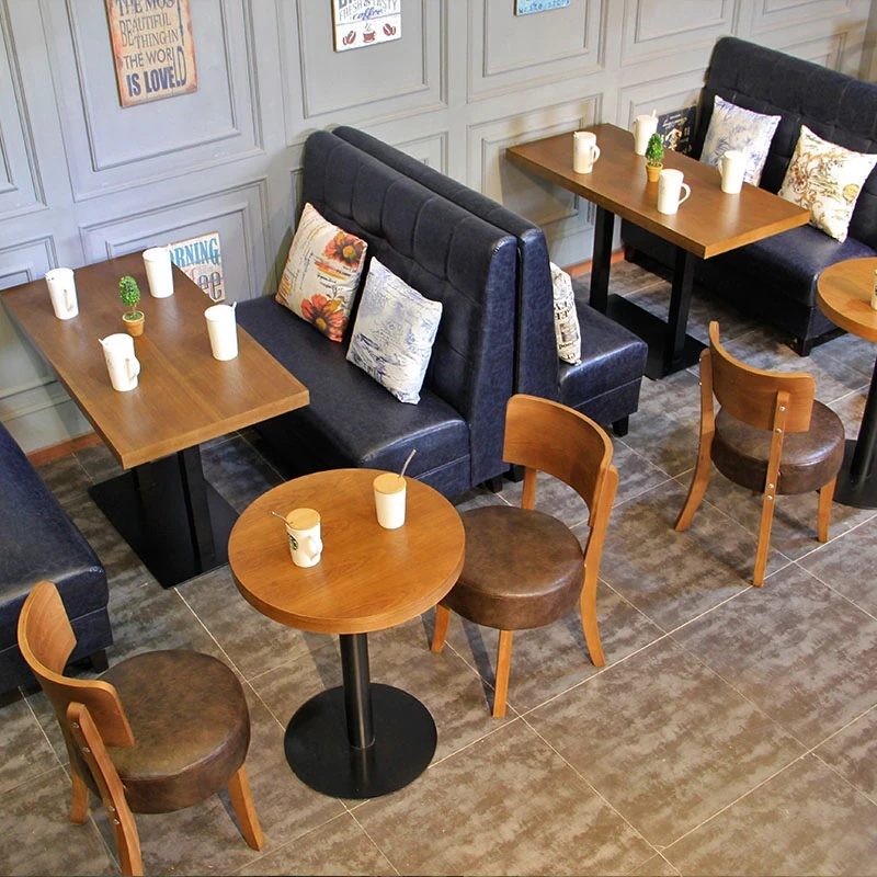 シンプルでスタイリッシュなカフェテーブル&チェアセット|西洋レストラン向けの快適なソファとテーブルの組み合わせ|デザートショップやタピオカティー店にも最適!おしゃれな空間を演出します。