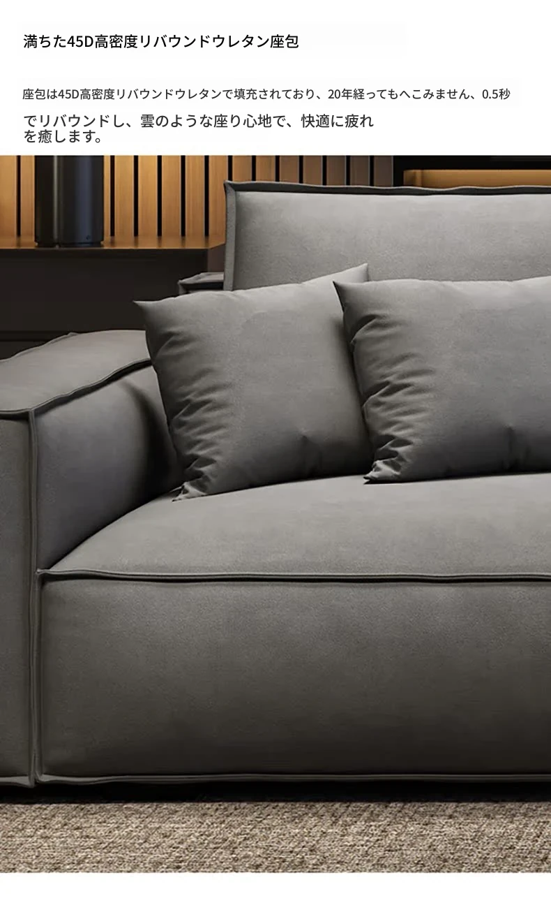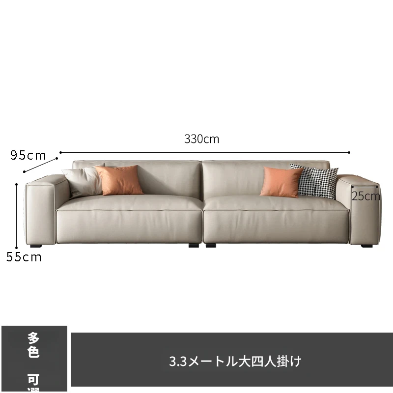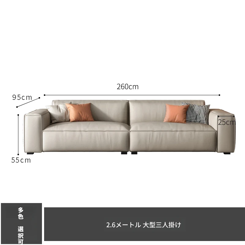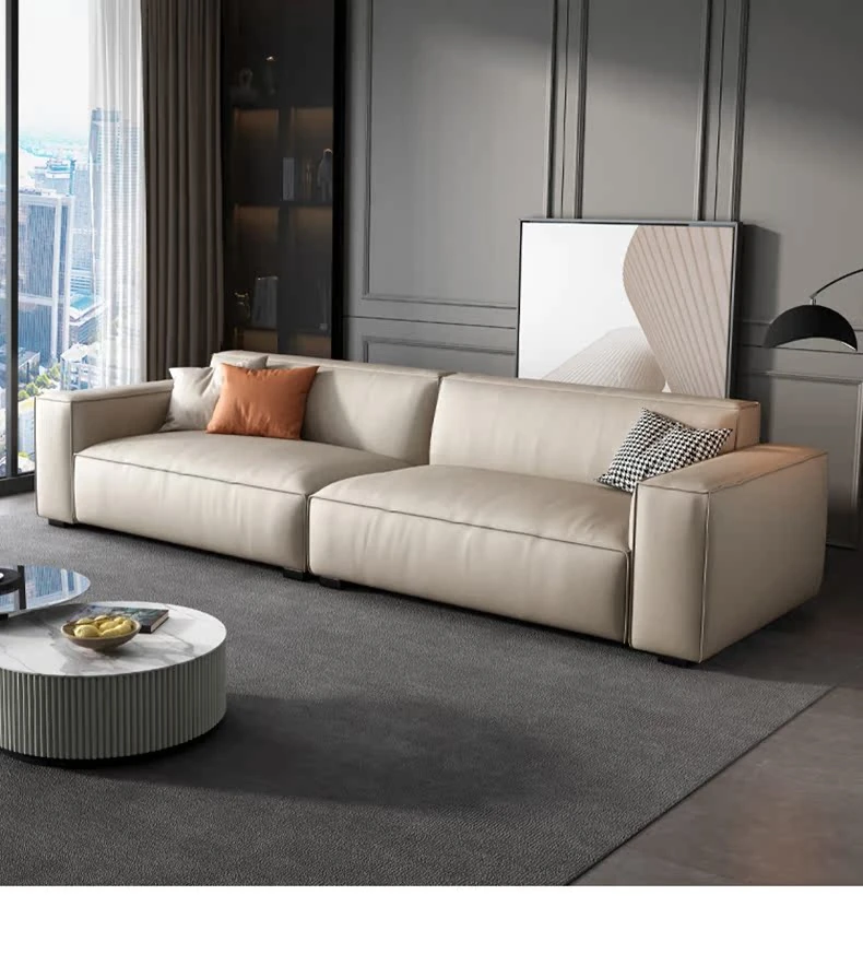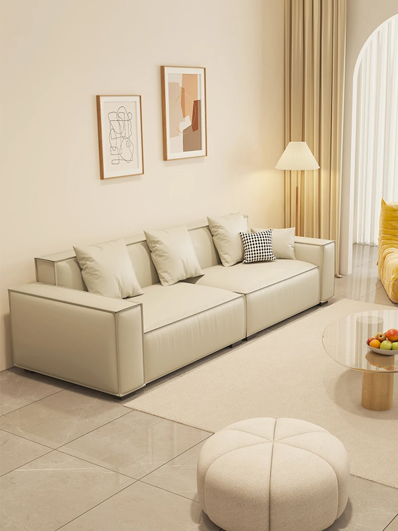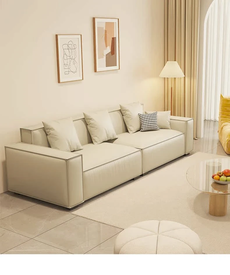 インフルエンサーおすすめ!シンプルでスタイリッシュな本革ブロックソファ - イタリアンデザインのリビングルーム用、3〜4人掛け、クリーミー風の軽奢スタイル。あなたの空間に洗練された美しさを。