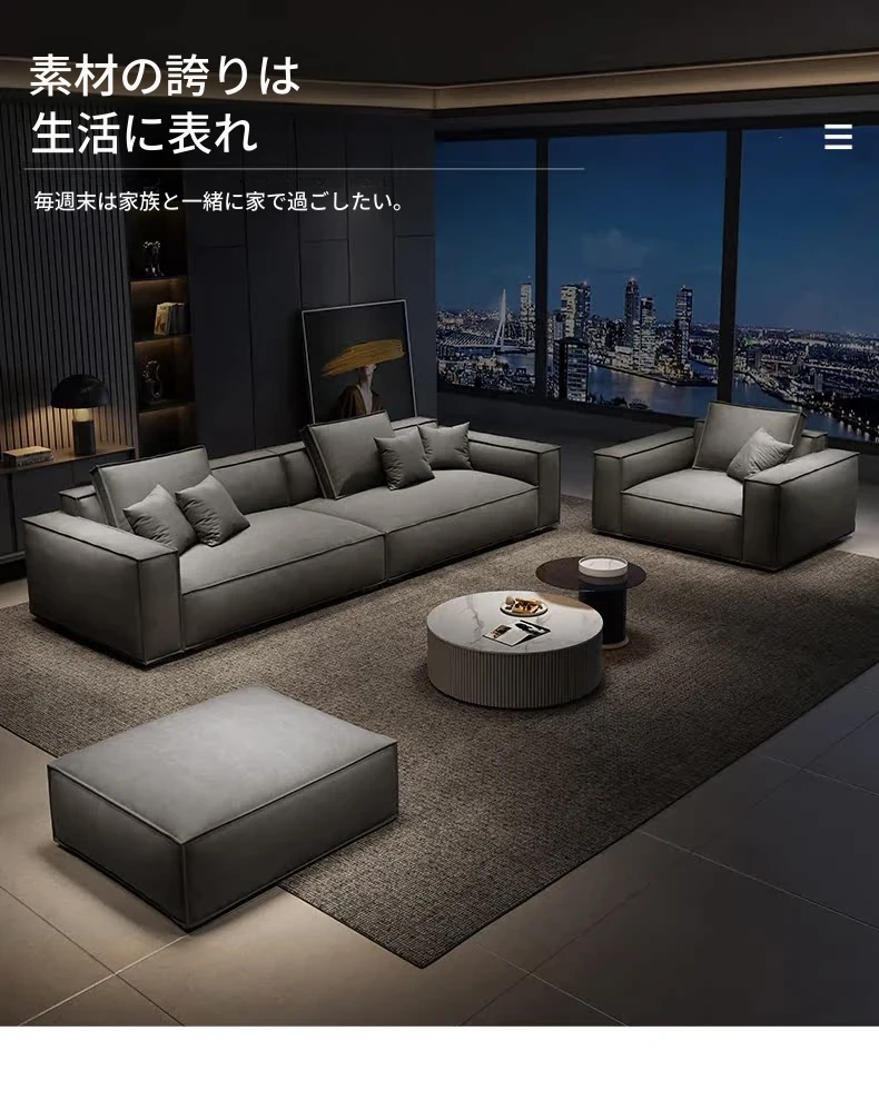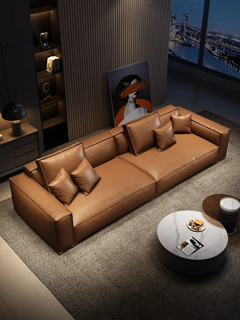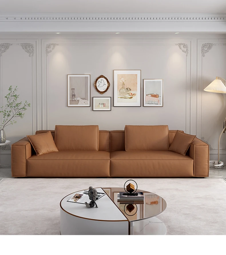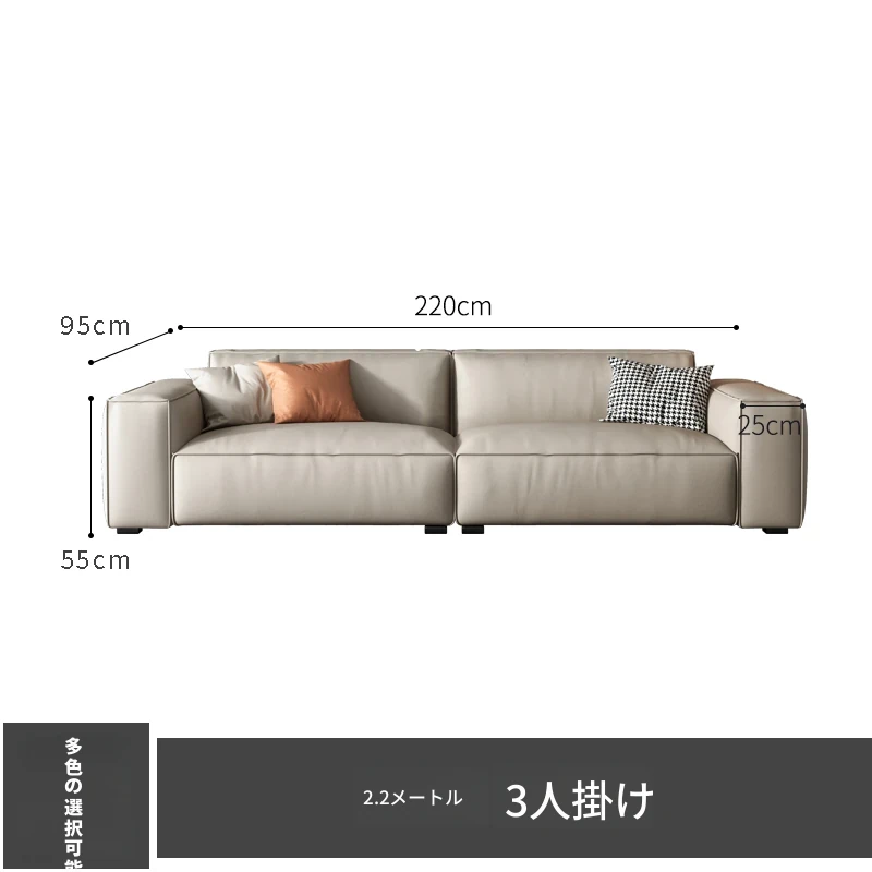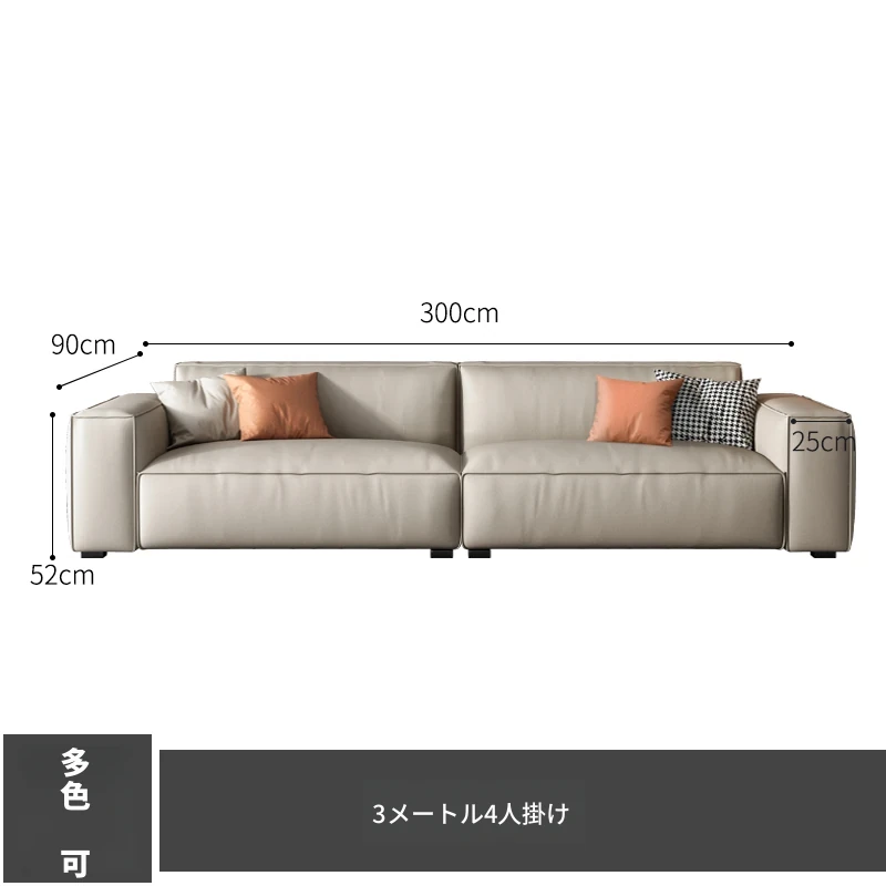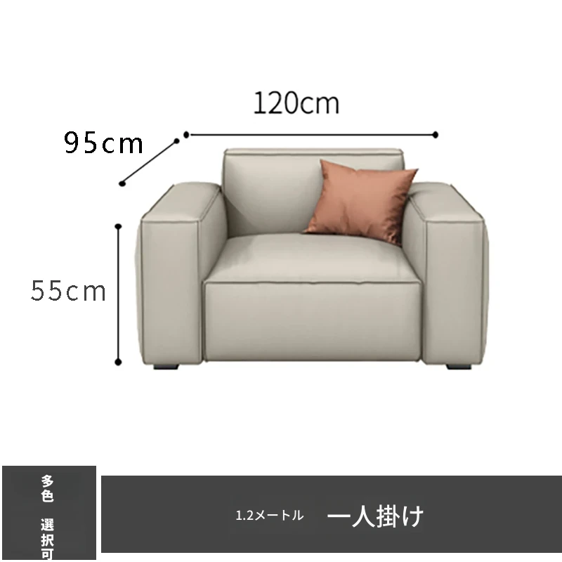 インフルエンサーおすすめ!シンプルでスタイリッシュな本革ブロックソファ - イタリアンデザインのリビングルーム用、3〜4人掛け、クリーミー風の軽奢スタイル。あなたの空間に洗練された美しさを。