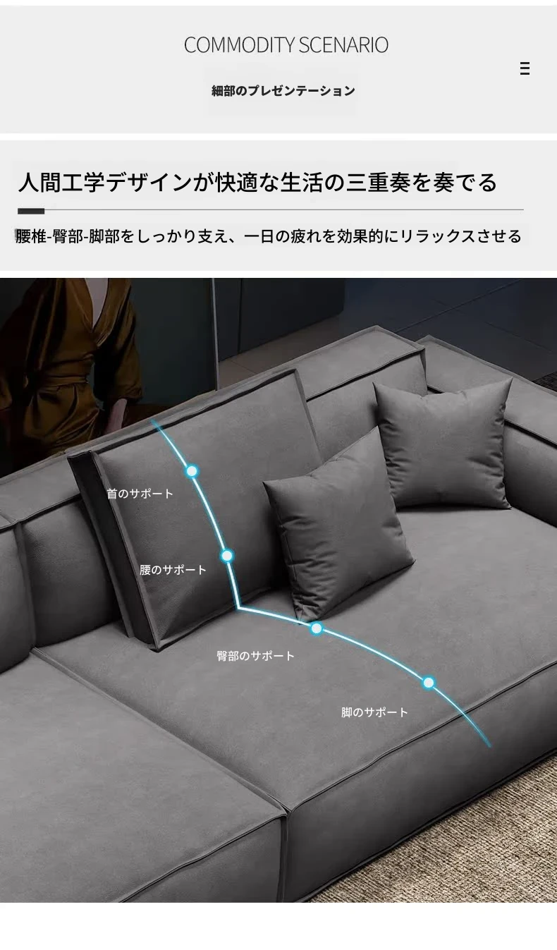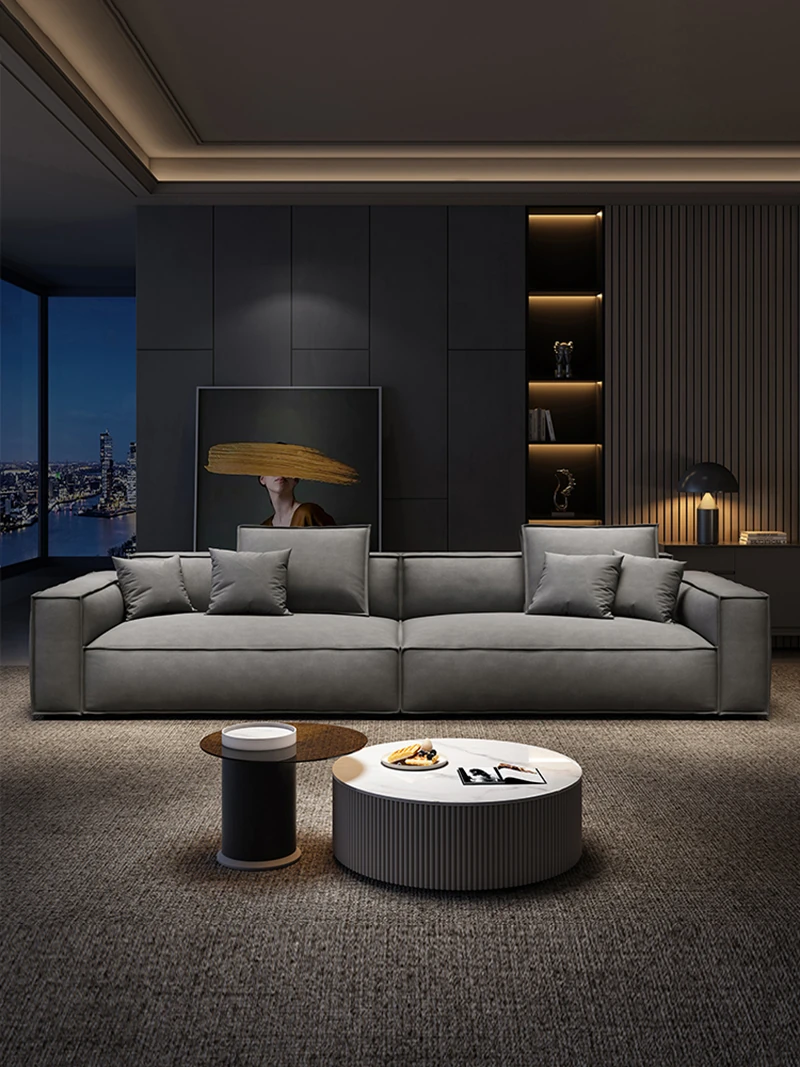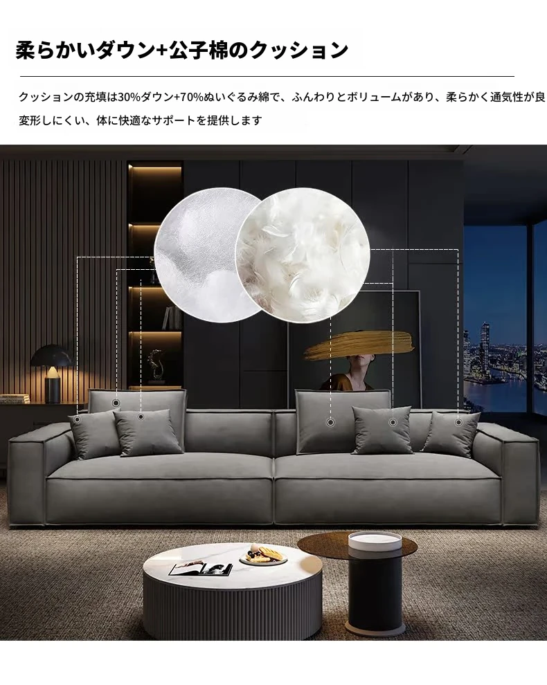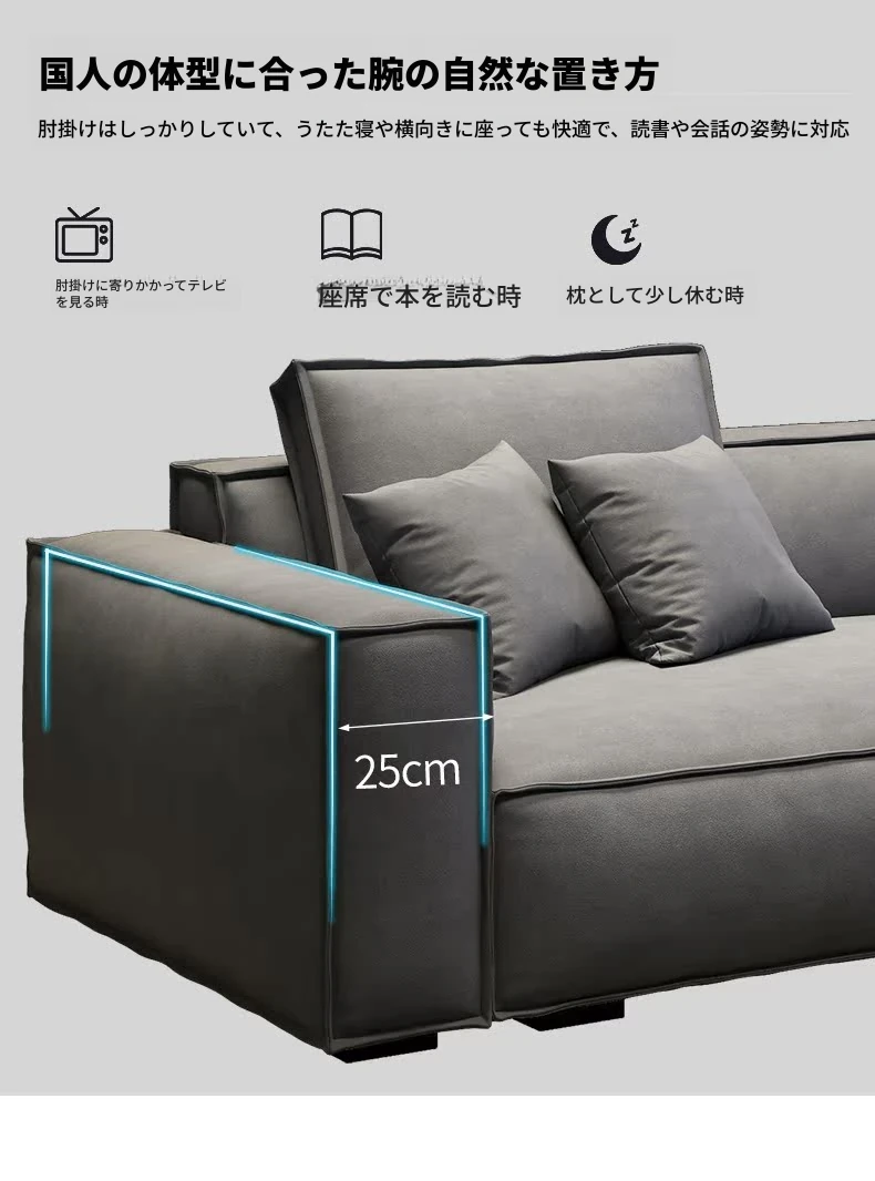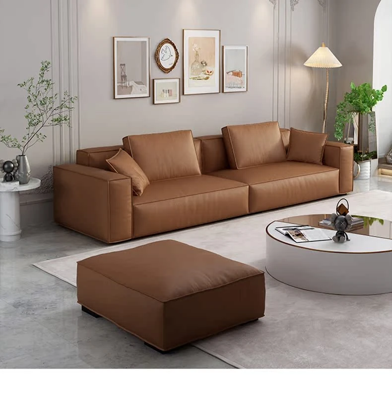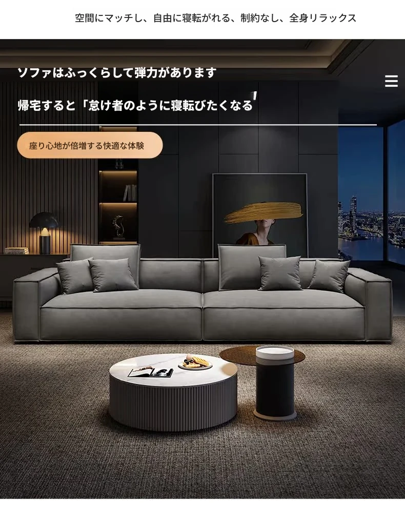 インフルエンサーおすすめ!シンプルでスタイリッシュな本革ブロックソファ - イタリアンデザインのリビングルーム用、3〜4人掛け、クリーミー風の軽奢スタイル。あなたの空間に洗練された美しさを。