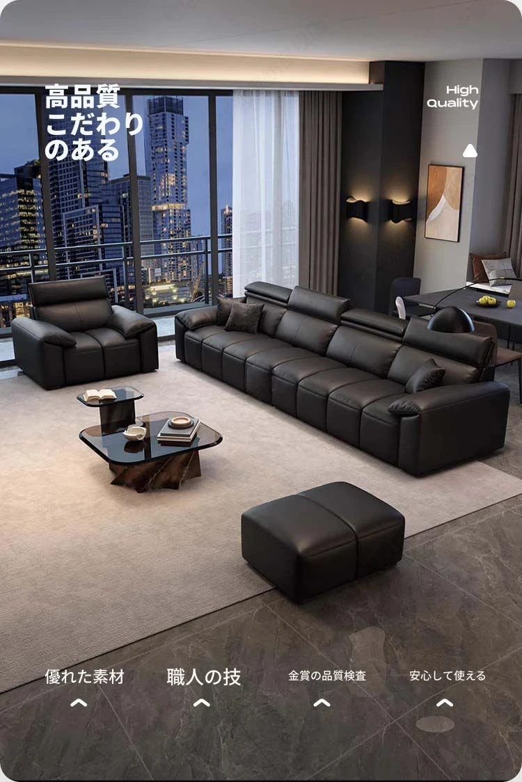 シンプルでモダンな本革ソファ|リビングにぴったりな牛革製のラグジュアリーソファ|スタイリッシュな直列ピアノキー design【大中小の部屋に最適】