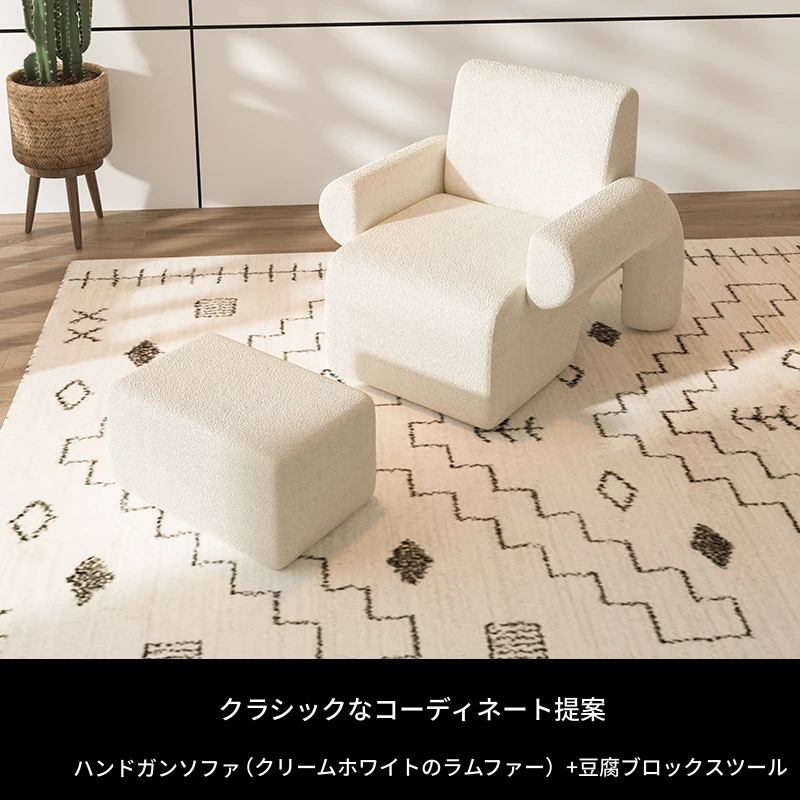クリーム色のソファ+豆腐ブロックオットマン