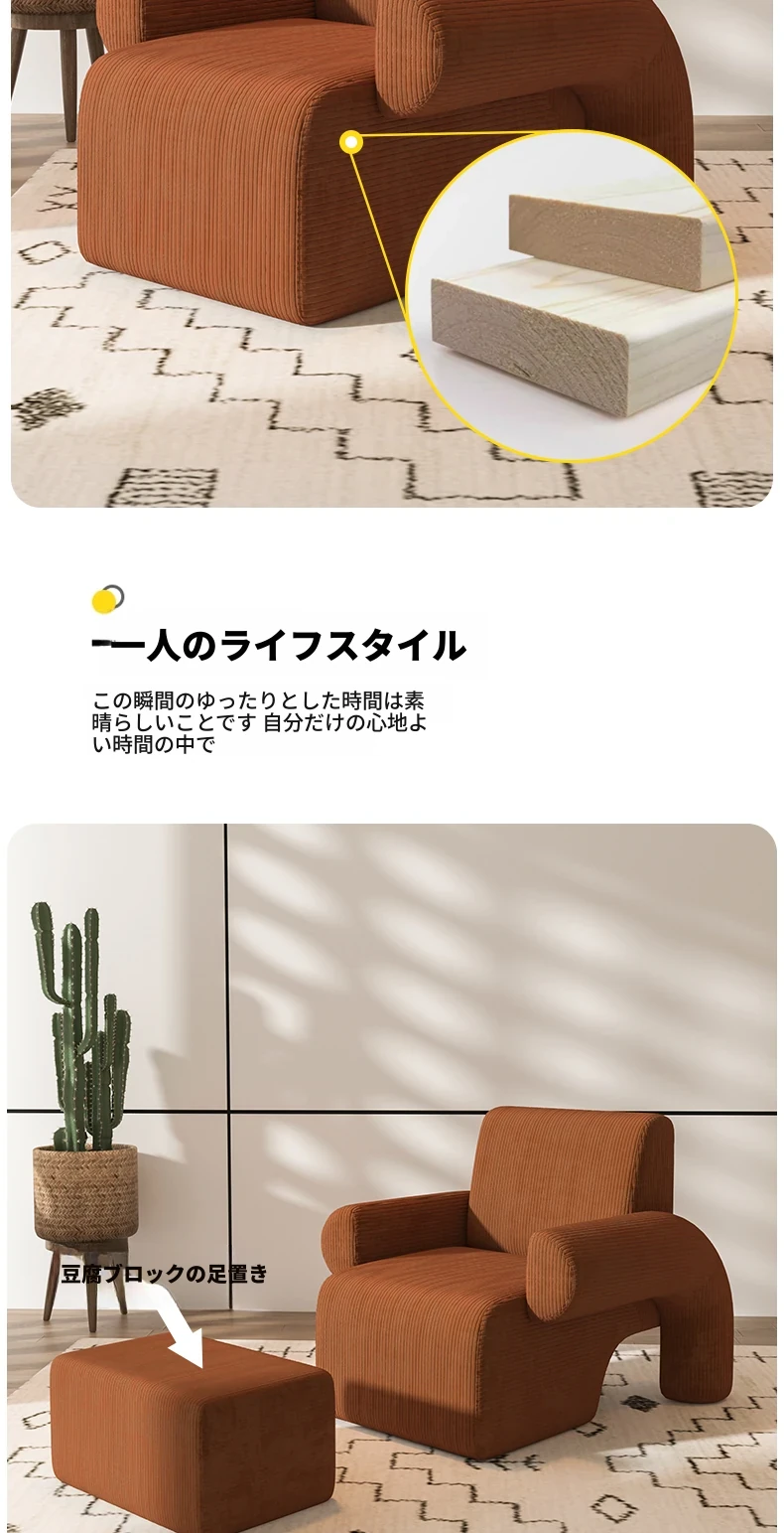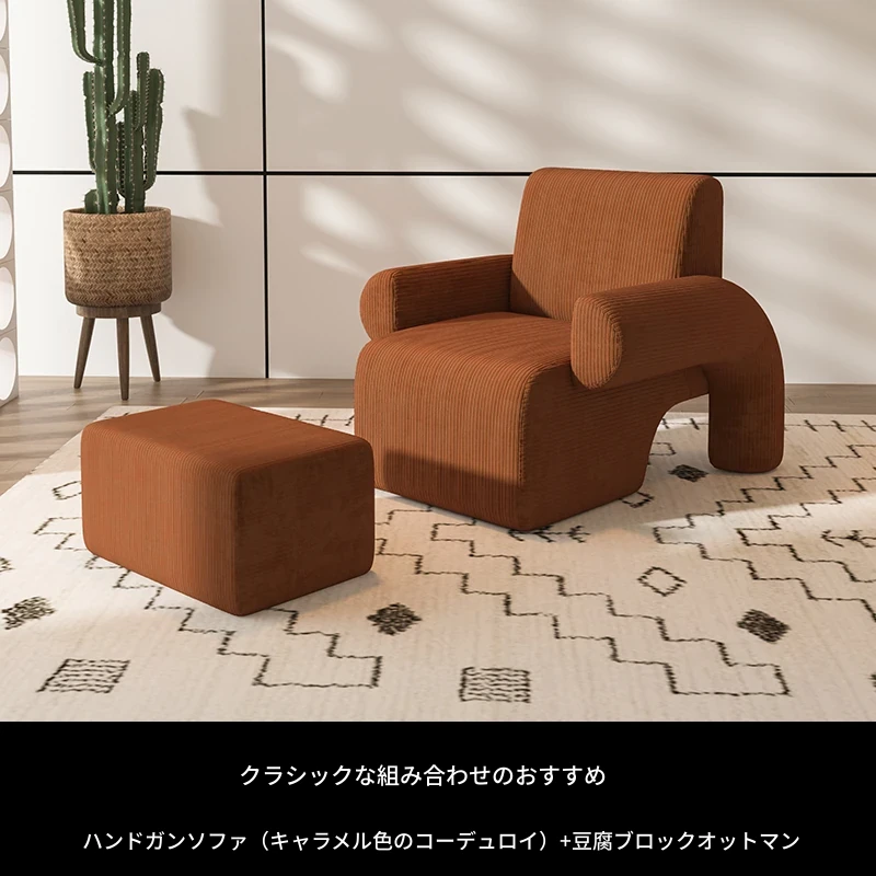 キャラメル色のソファ+豆腐ブロックオットマン