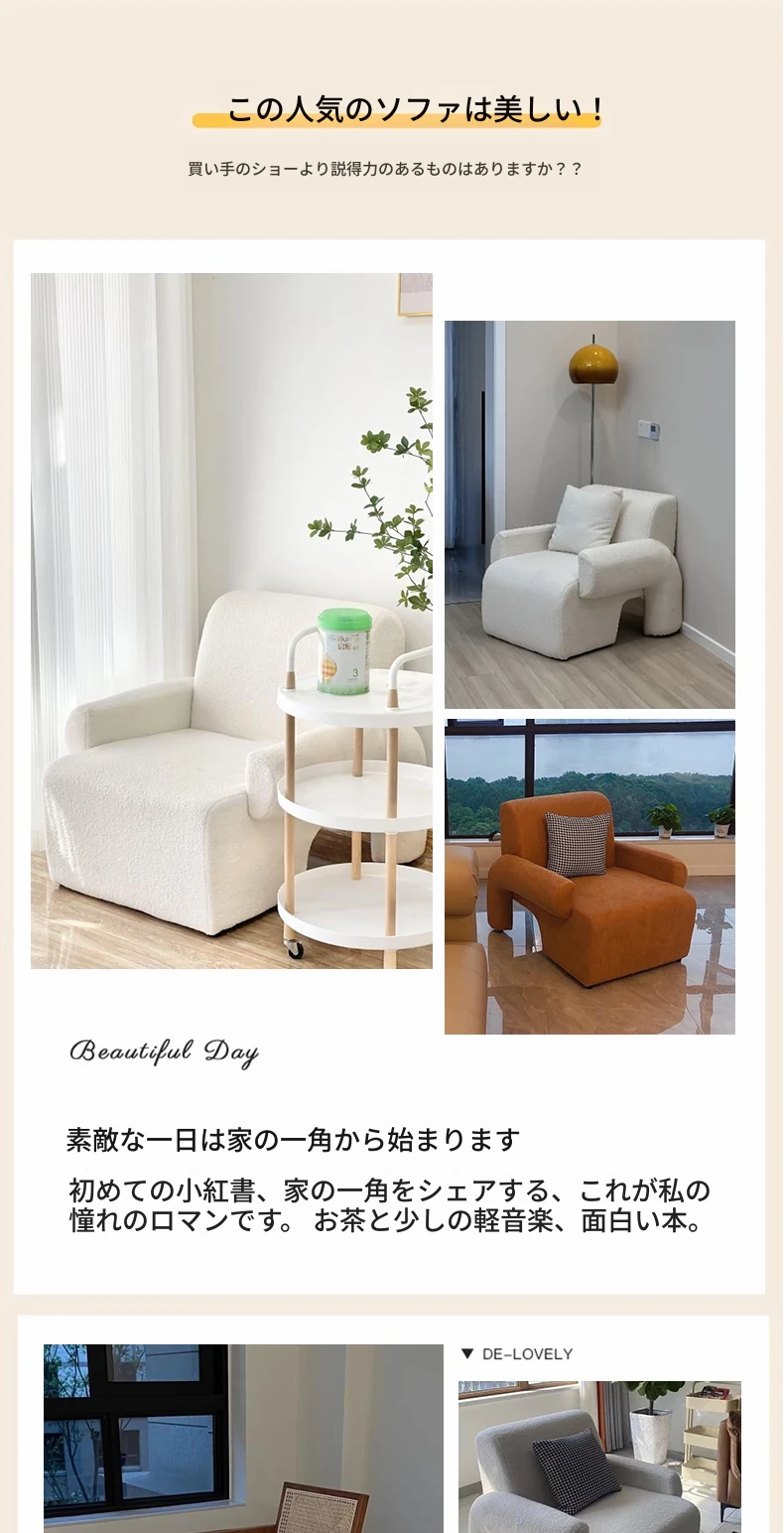 クリーム色のソファ(ラムスキン)