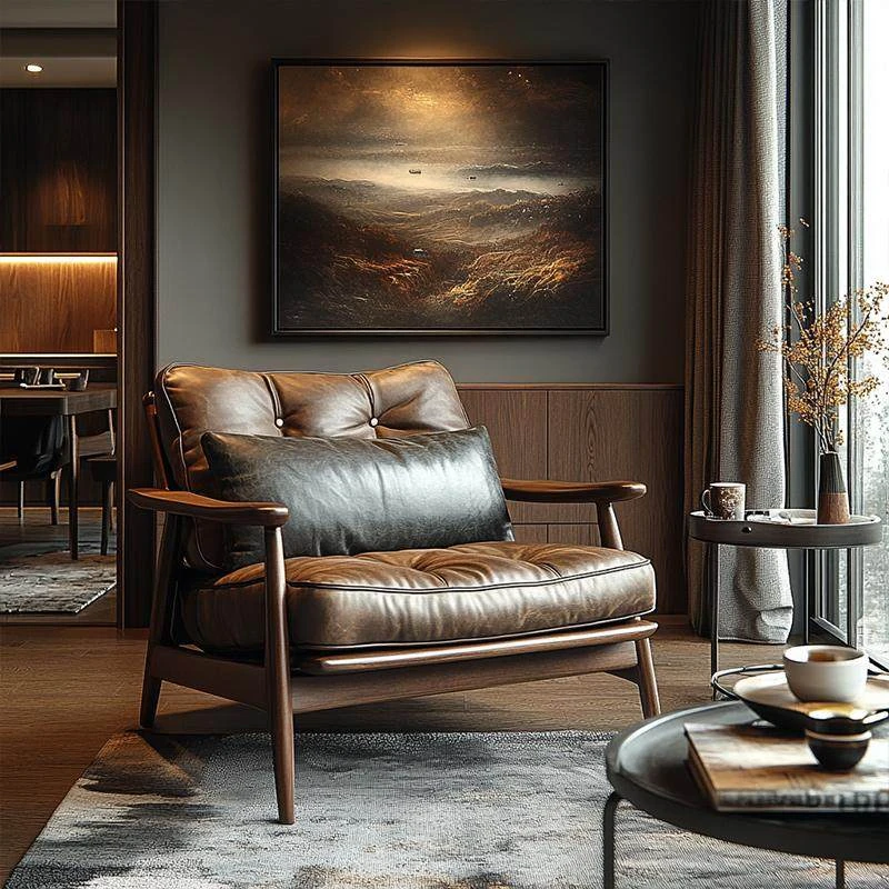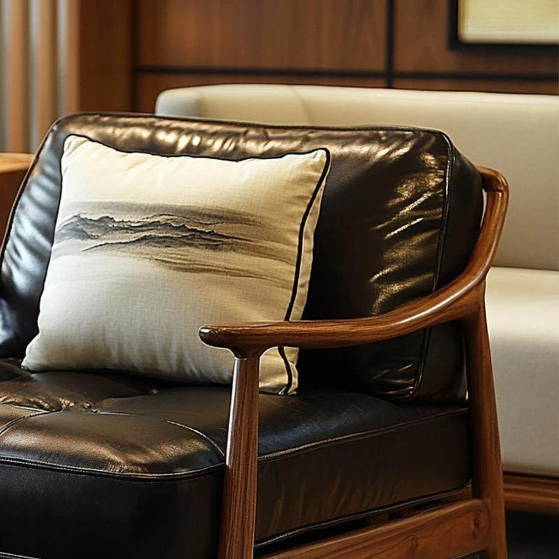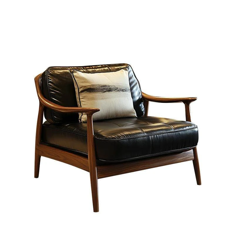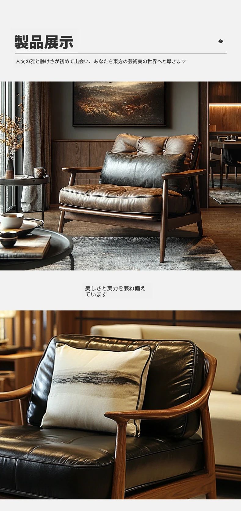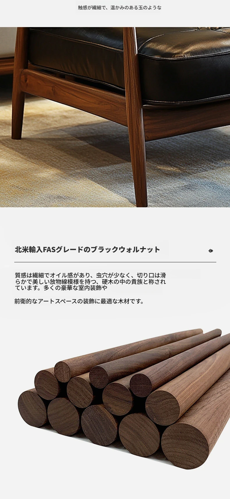 新中式スタイルの北米産ブラックウォールナット製一人掛けソファ - ラグジュアリーで高級感あふれるデザイン、2025年新作登場!リビングにぴったりな実木ソファ椅子。