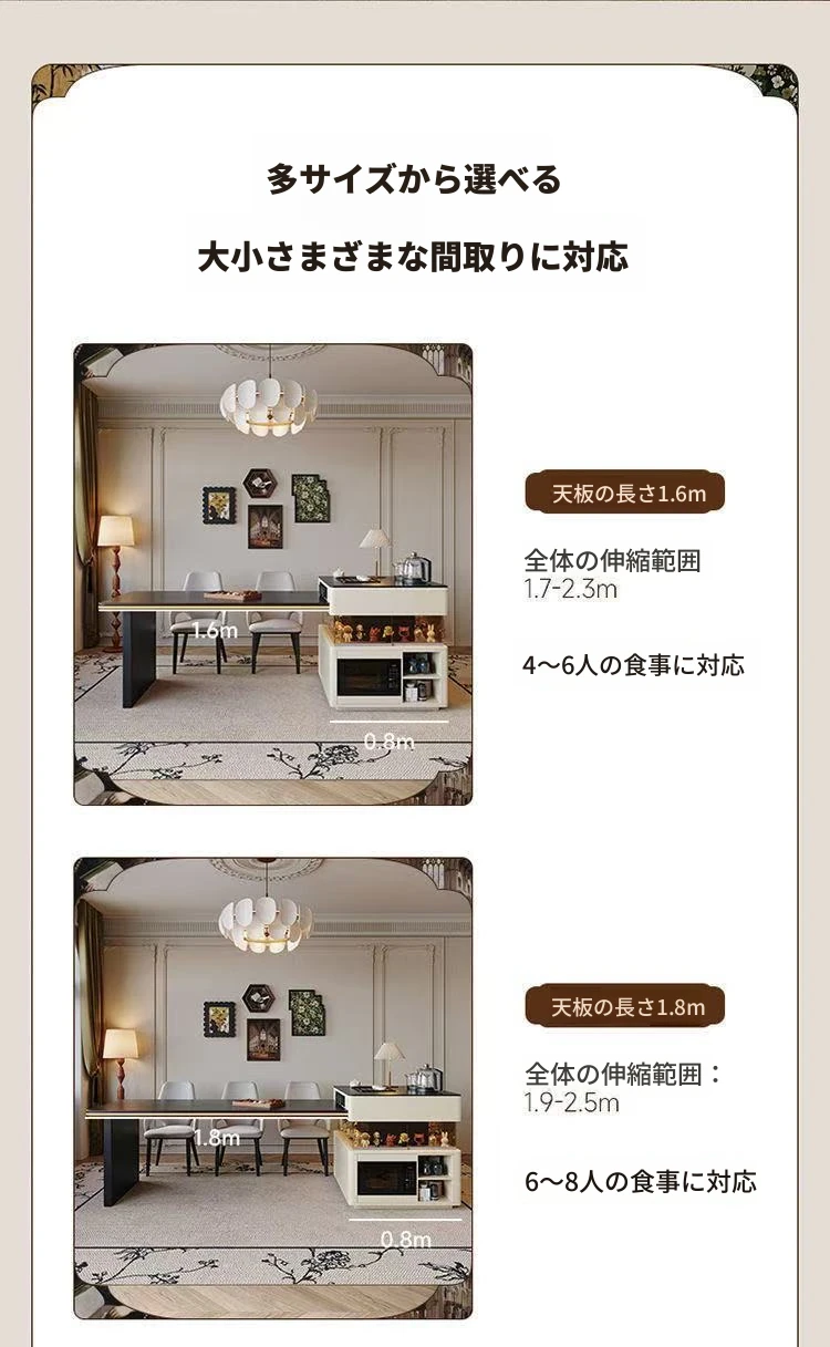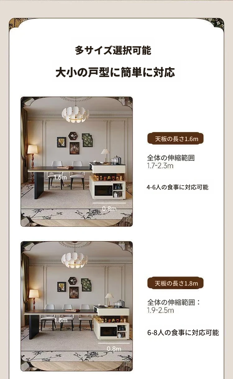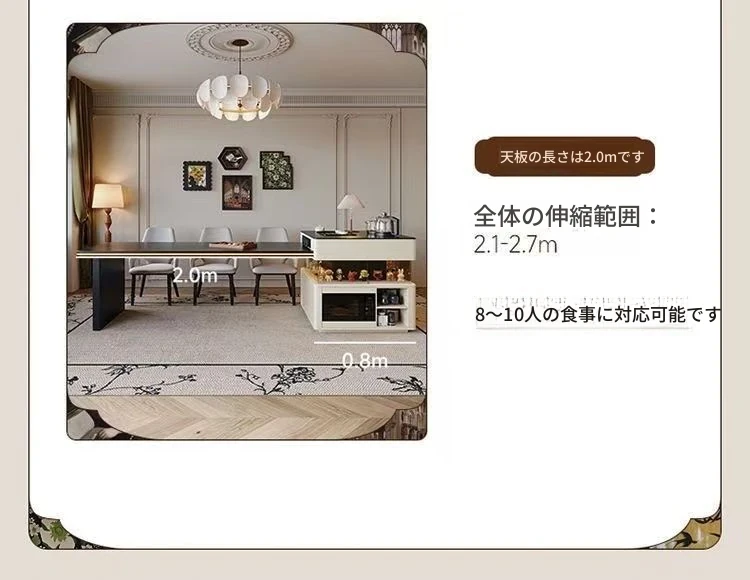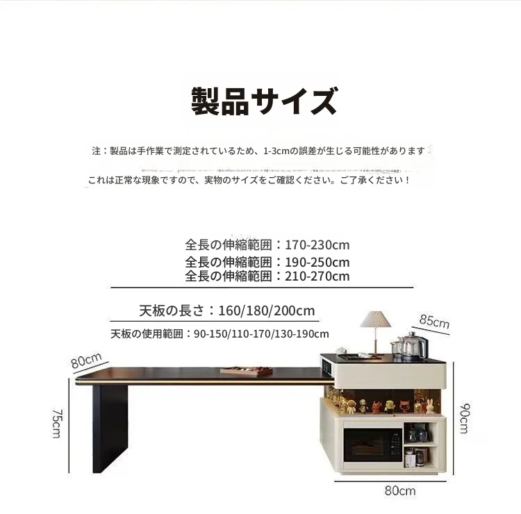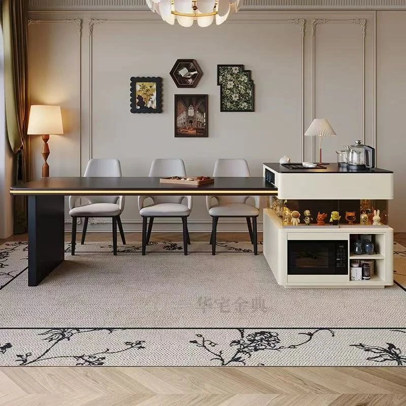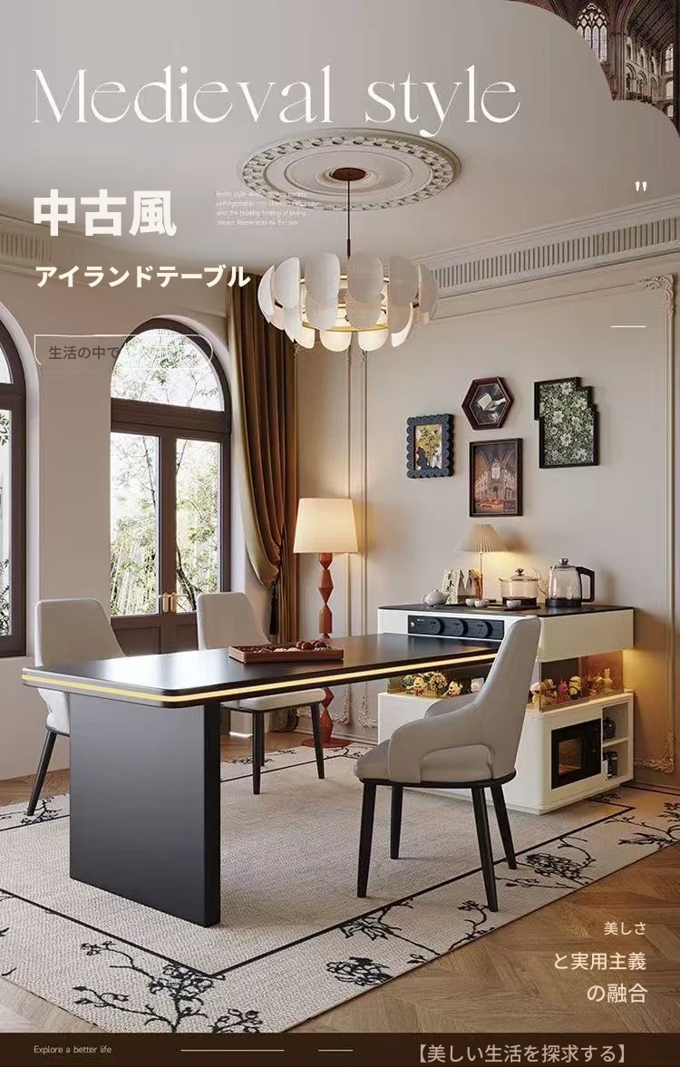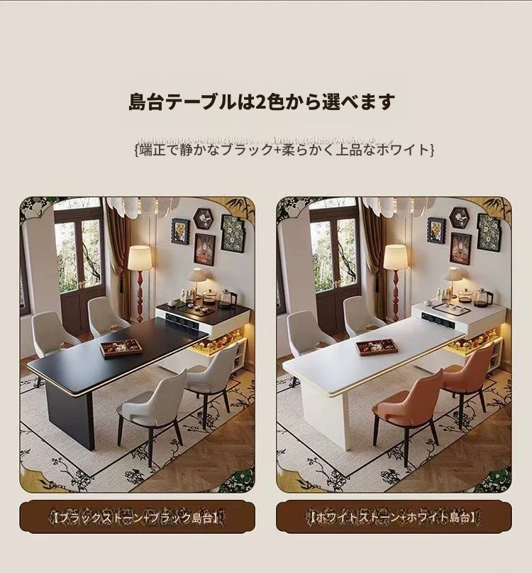 高級感溢れる天然木製アイランドテーブル|伸縮可能なデザイン|洗練されたキッチン&ダイニングに最適|お茶を楽しむためのシンプルでスタイリッシュな中島テーブル