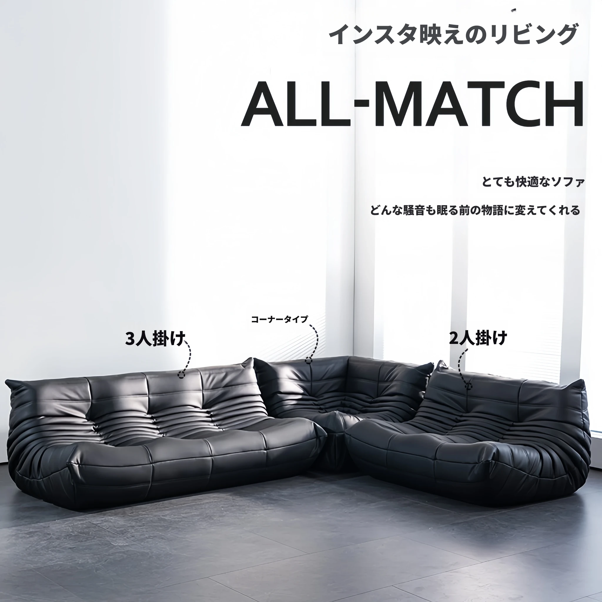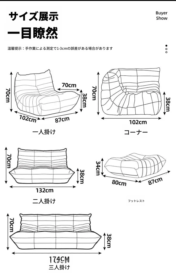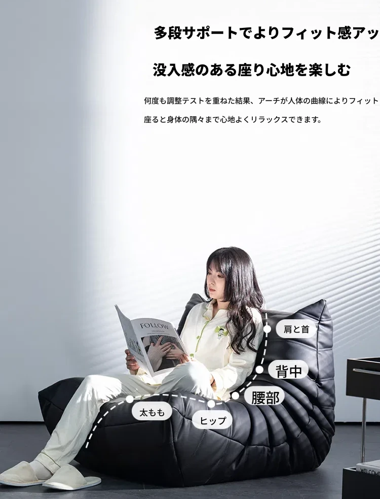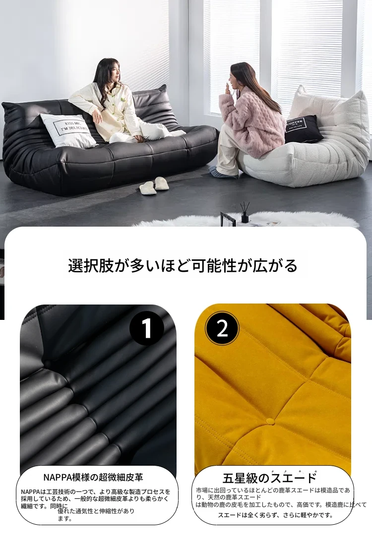 トゴ・モコモコカウチソファ|バルコニーやリビングに最適なリラックスチェア!寝転んでも眠れる、クリーミーな風合いの一人用ソファで、あなたのくつろぎ空間を演出します。