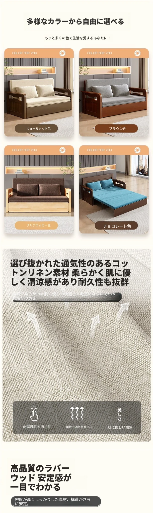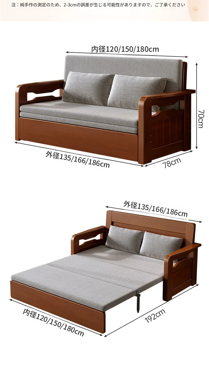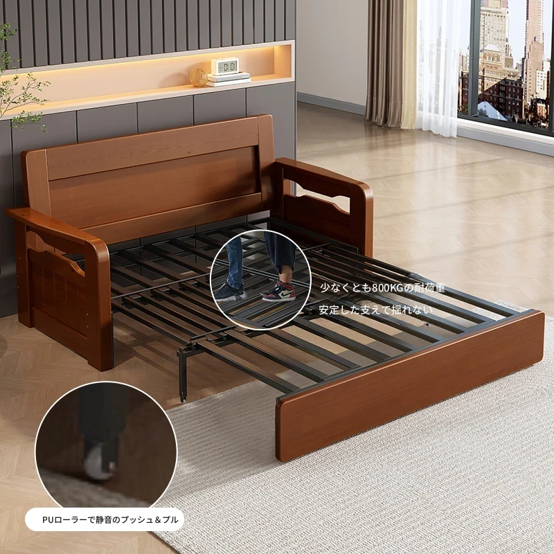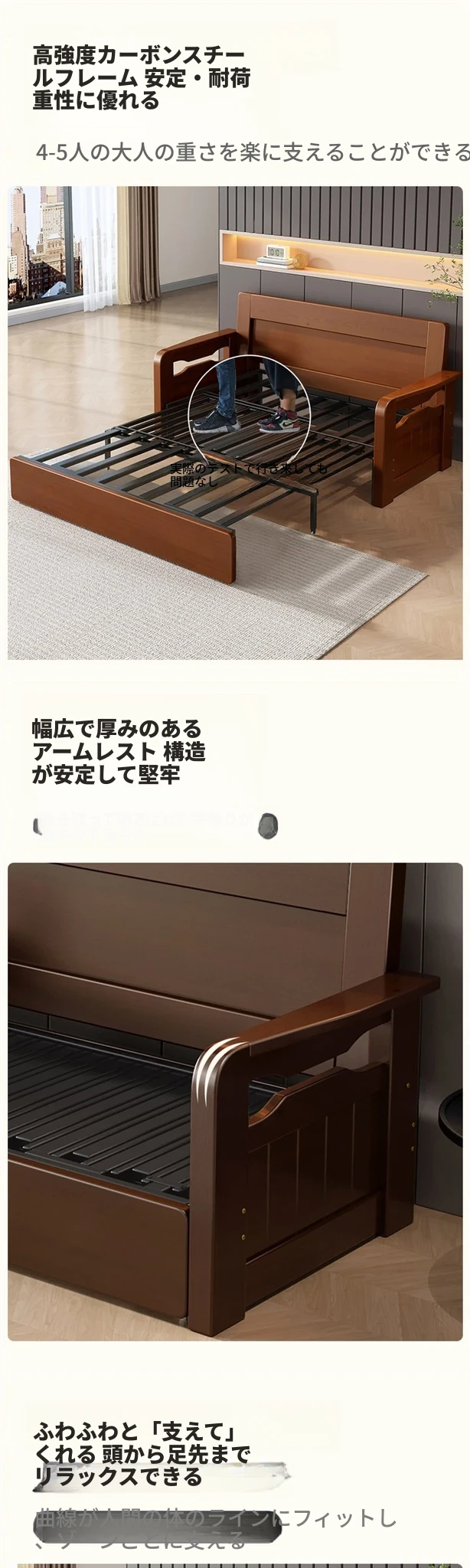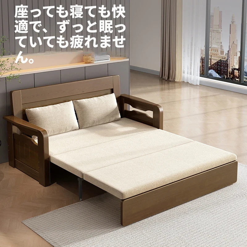 折りたたみ可能な1.5mダブルサイズの多機能一人用ソファベッド - 小さな部屋に最適な収納付き、木製リビングソファで快適な空間を演出!