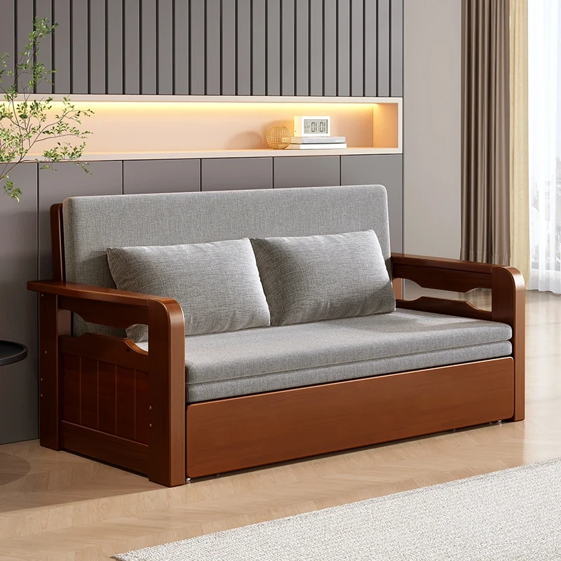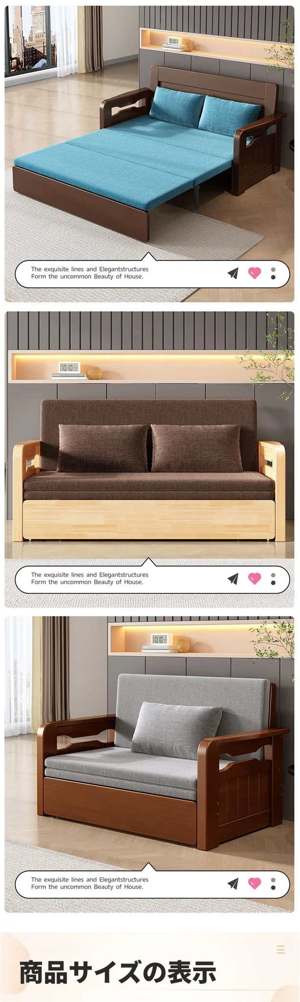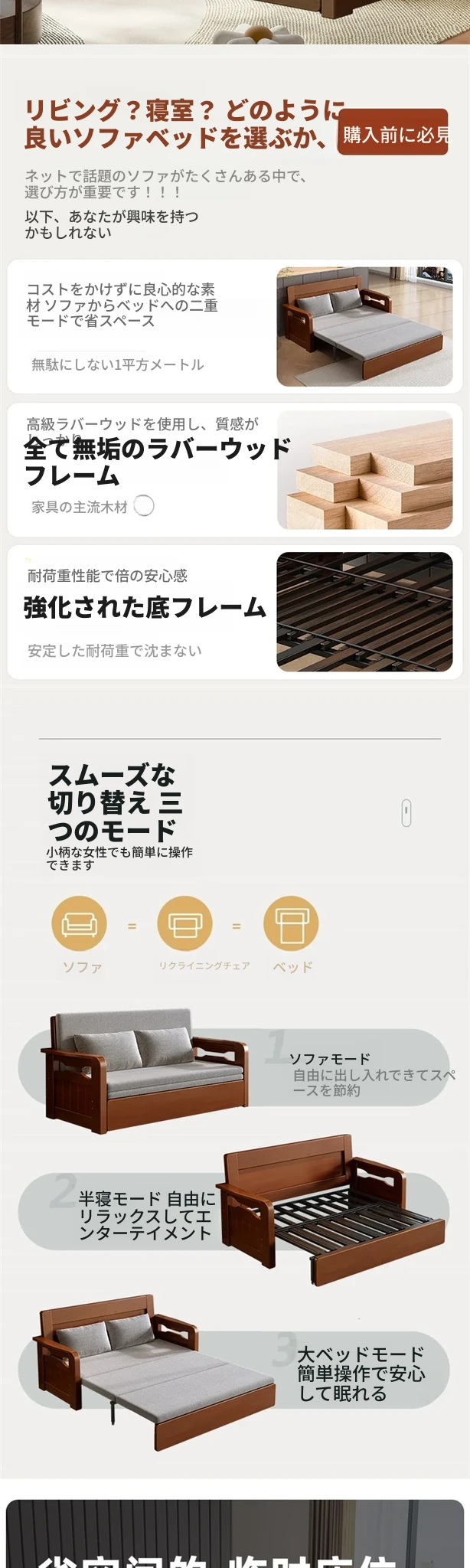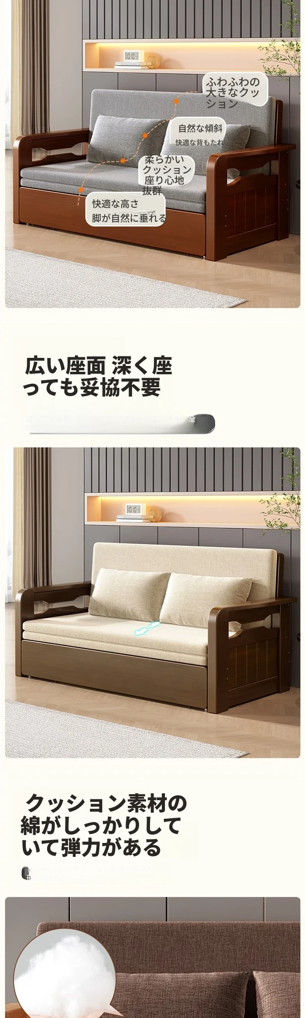 折りたたみ可能な1.5mダブルサイズの多機能一人用ソファベッド - 小さな部屋に最適な収納付き、木製リビングソファで快適な空間を演出!