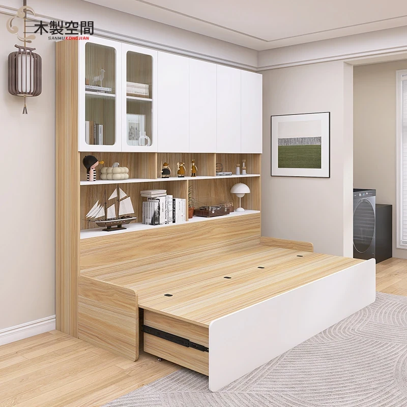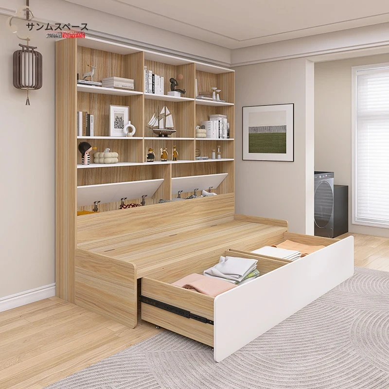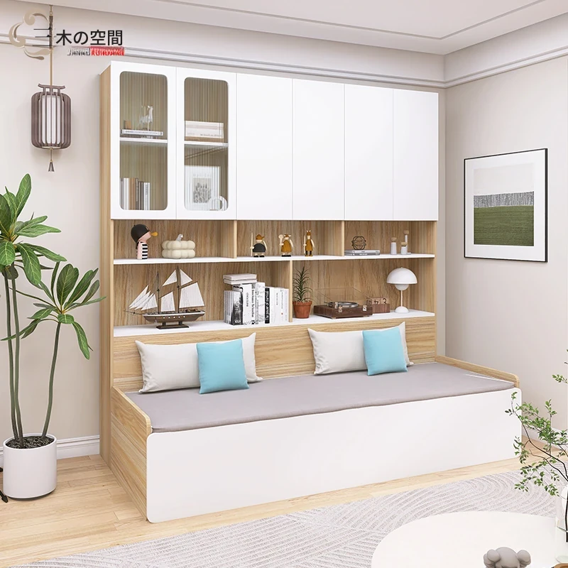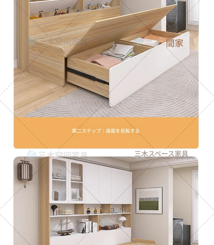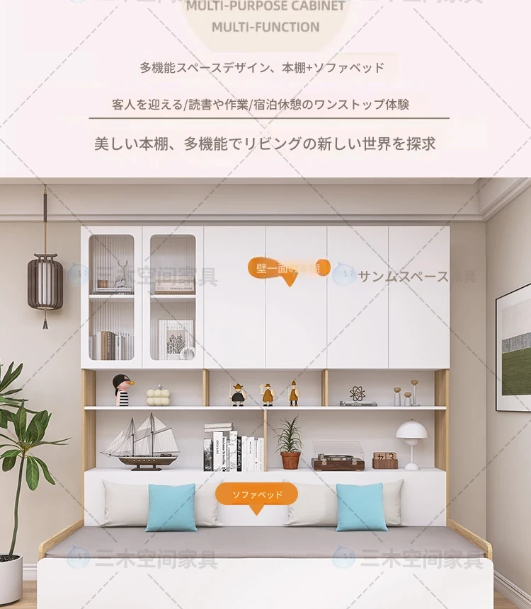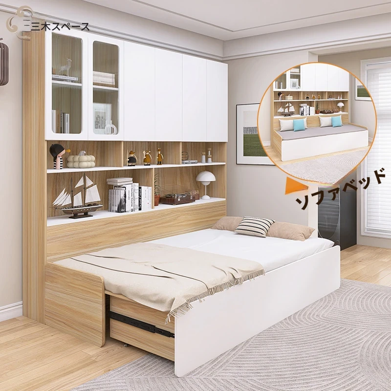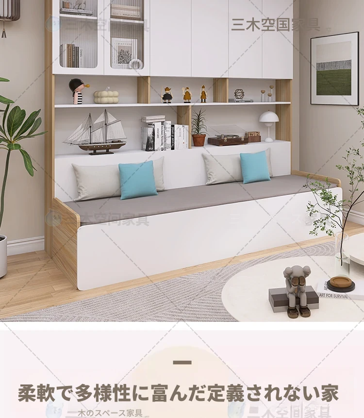 リビングに最適!2人用折りたたみソファベッド一体型収納キャビネット - スペースを有効活用できる小型住宅向けのカスタマイズ可能なソファキャビネットです。収納力抜群で、快適な座り心地を実現!