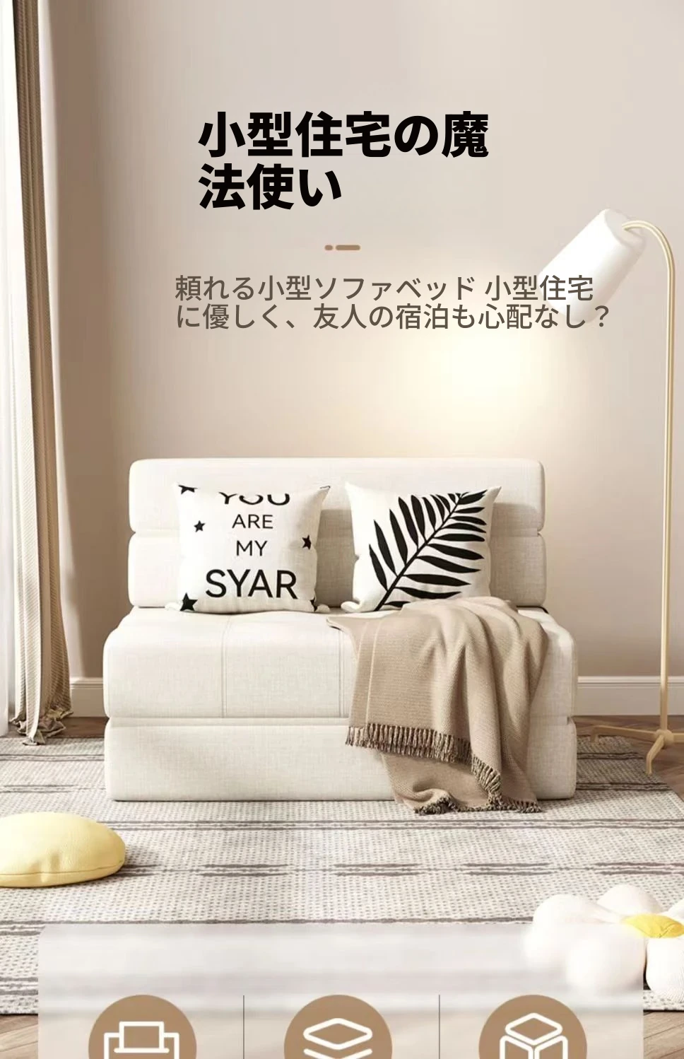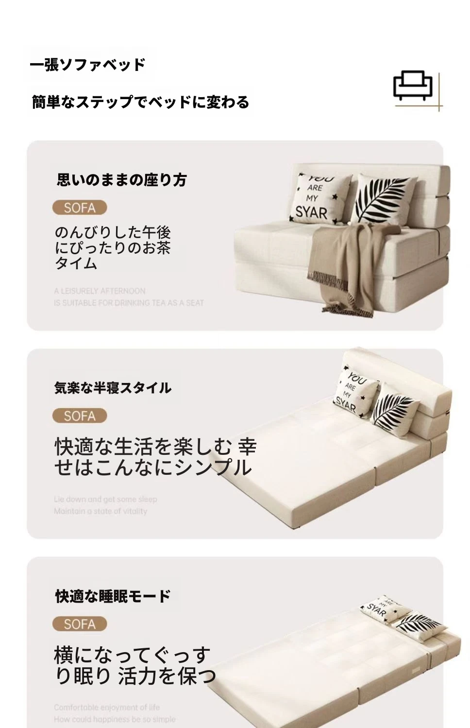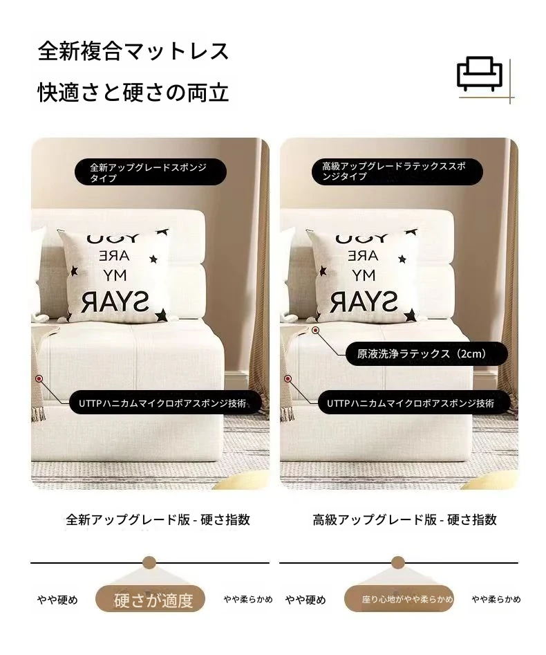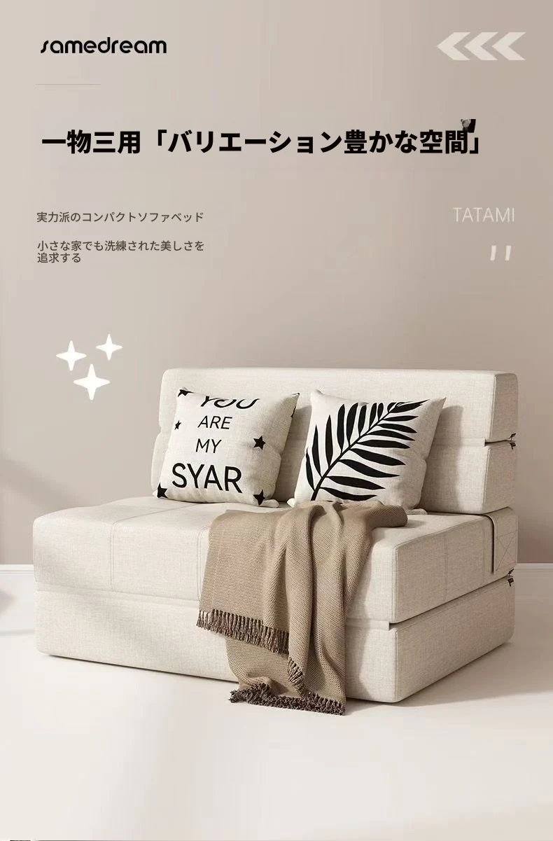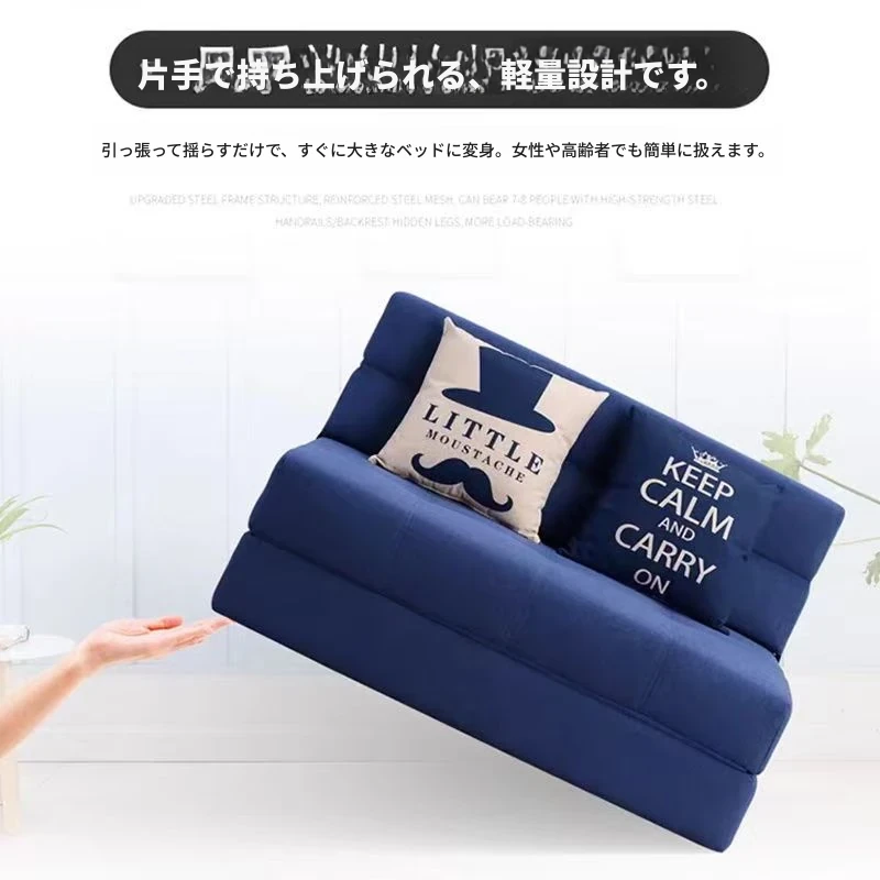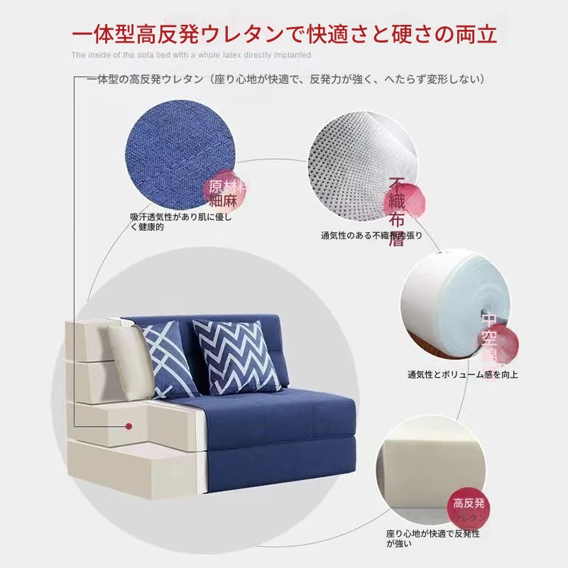 折りたたみソファベッド 小型スペースにも最適!洗えるカバー付きの多機能デザインで、バルコニーでも使えるシングルベッド。厚手のスポンジマットレスで快適な寝心地を実現。おしゃれで実用的な一品!
