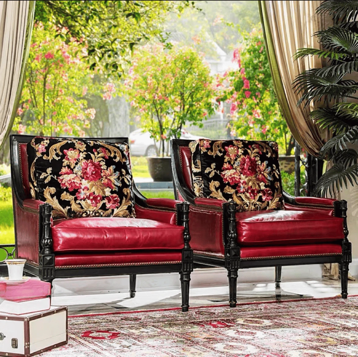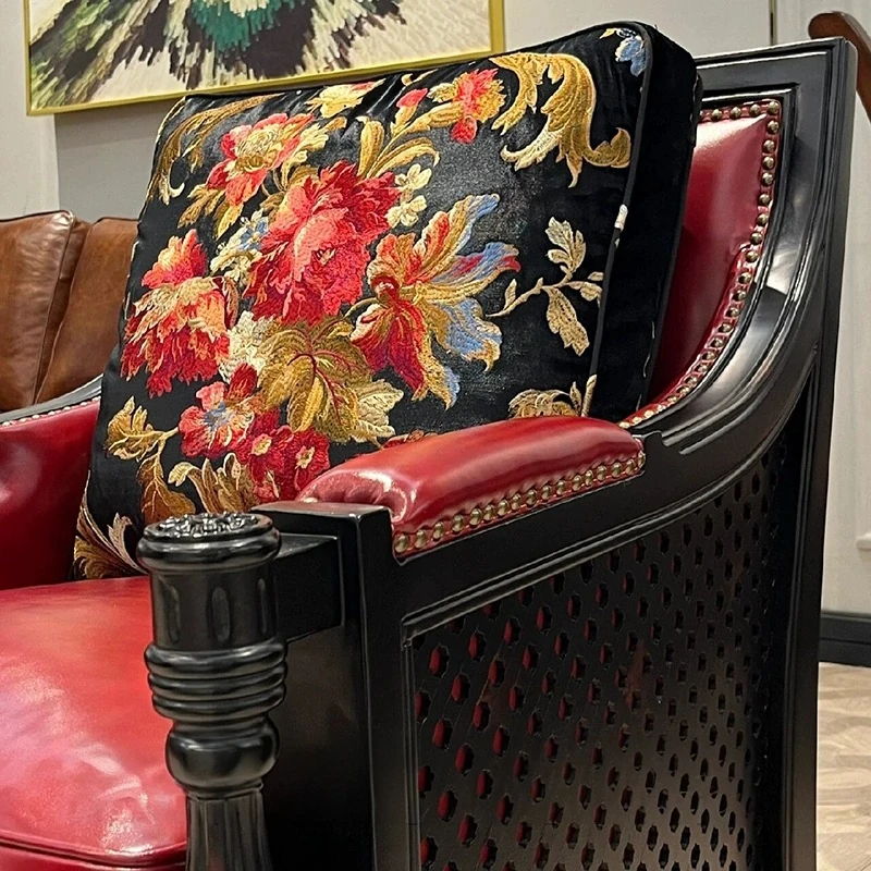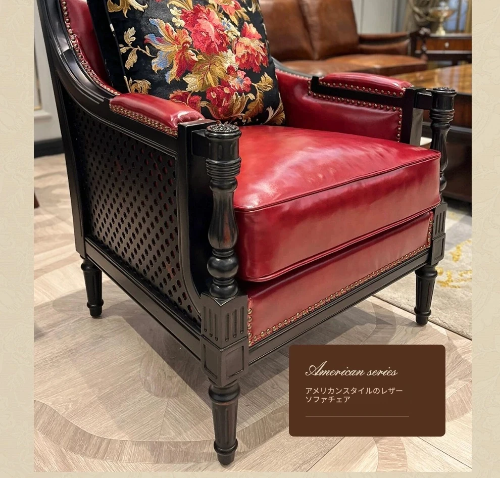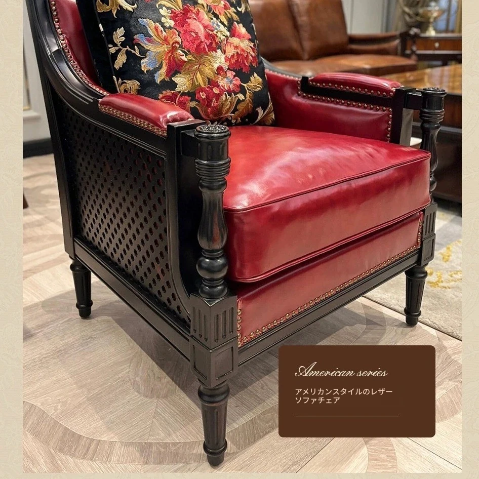 アメリカンカントリースタイルの無垢材リビングソファ、レトロなレザーと彫刻デザイン、ヴィンテージ風の虎モチーフチェア、華やかなプリントファブリックの3人掛けソファ。心地よいくつろぎを提供する、上質なインテリアの必需品です!