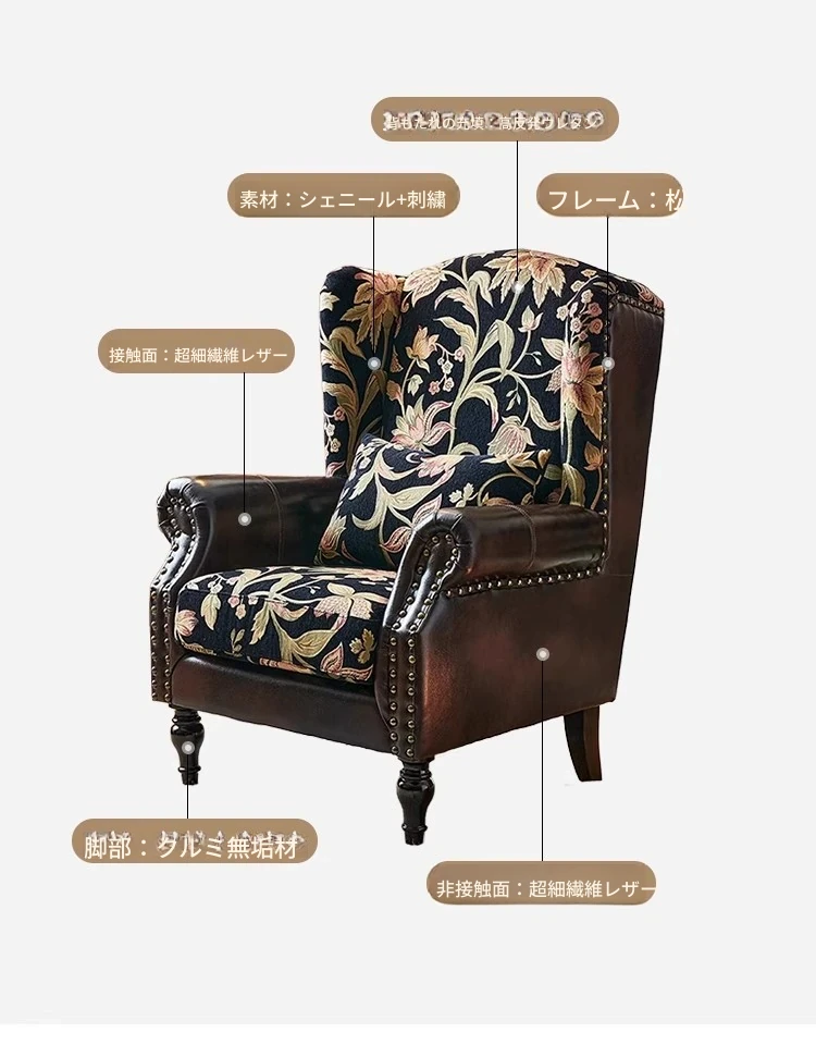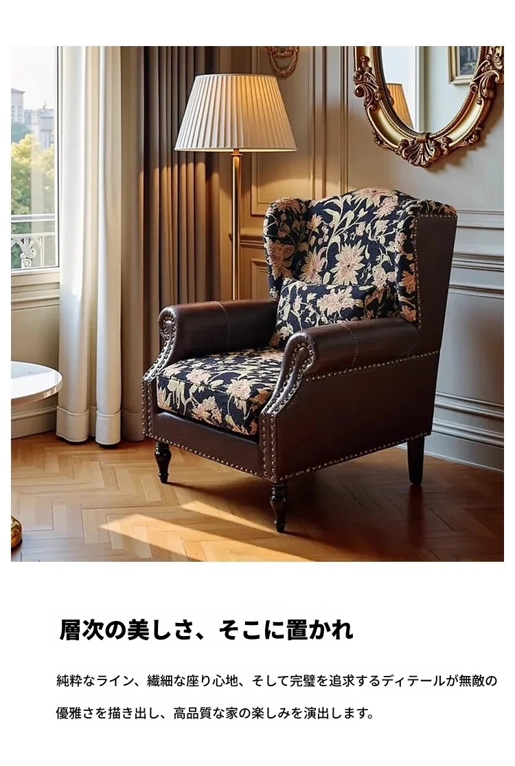 アメリカンヴィンテージ虎椅子|一人用リラックスチェア|家庭・リビング・寝室・ホテル・民宿に最適|おしゃれなレトロデザインのソファチェア|くつろぎの時間を演出します!