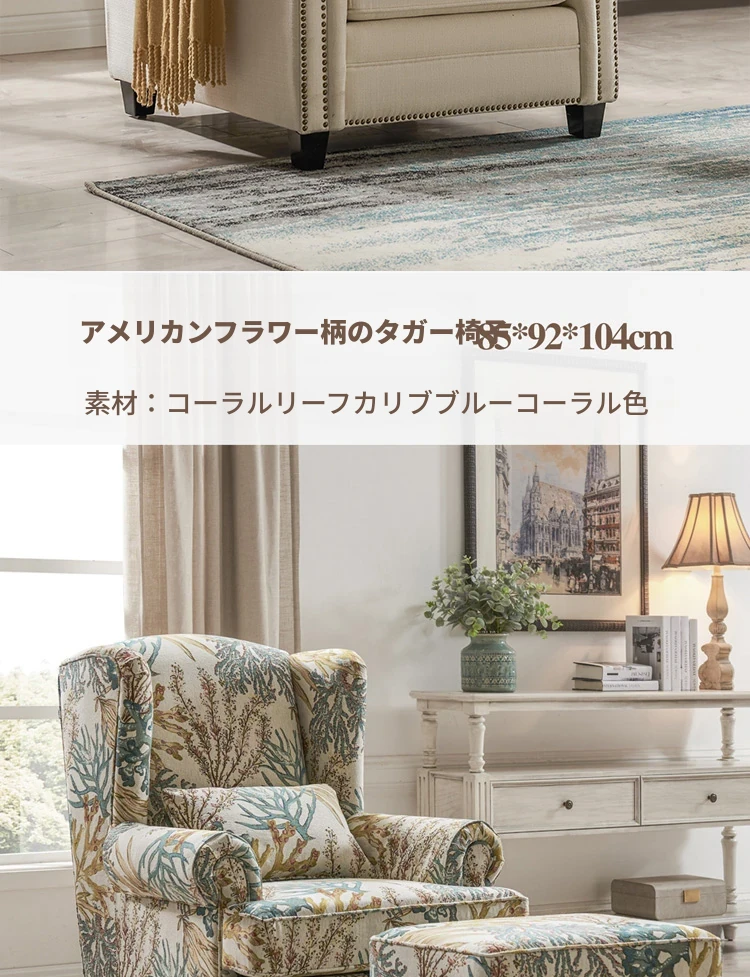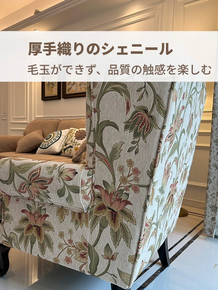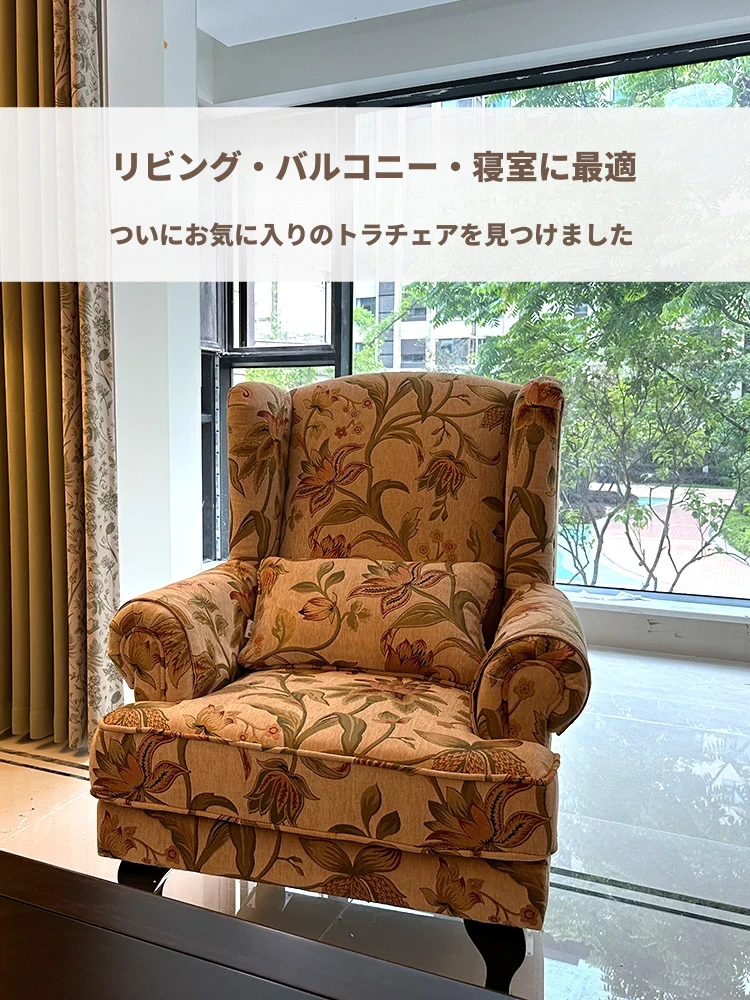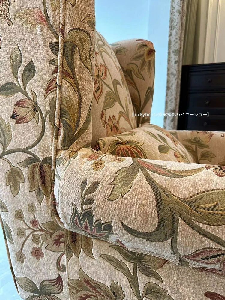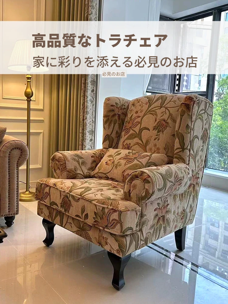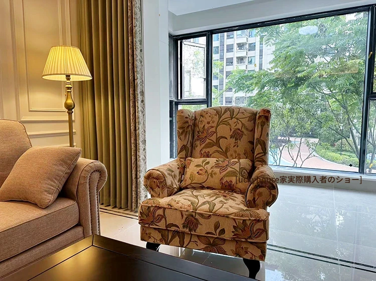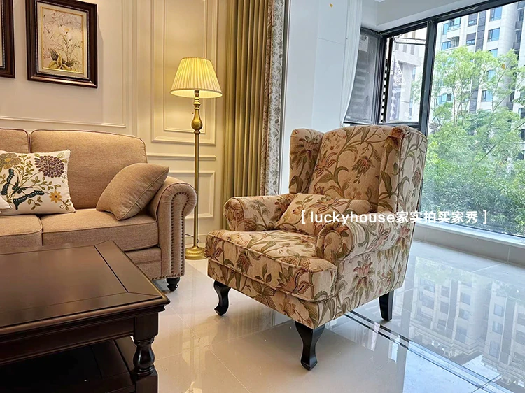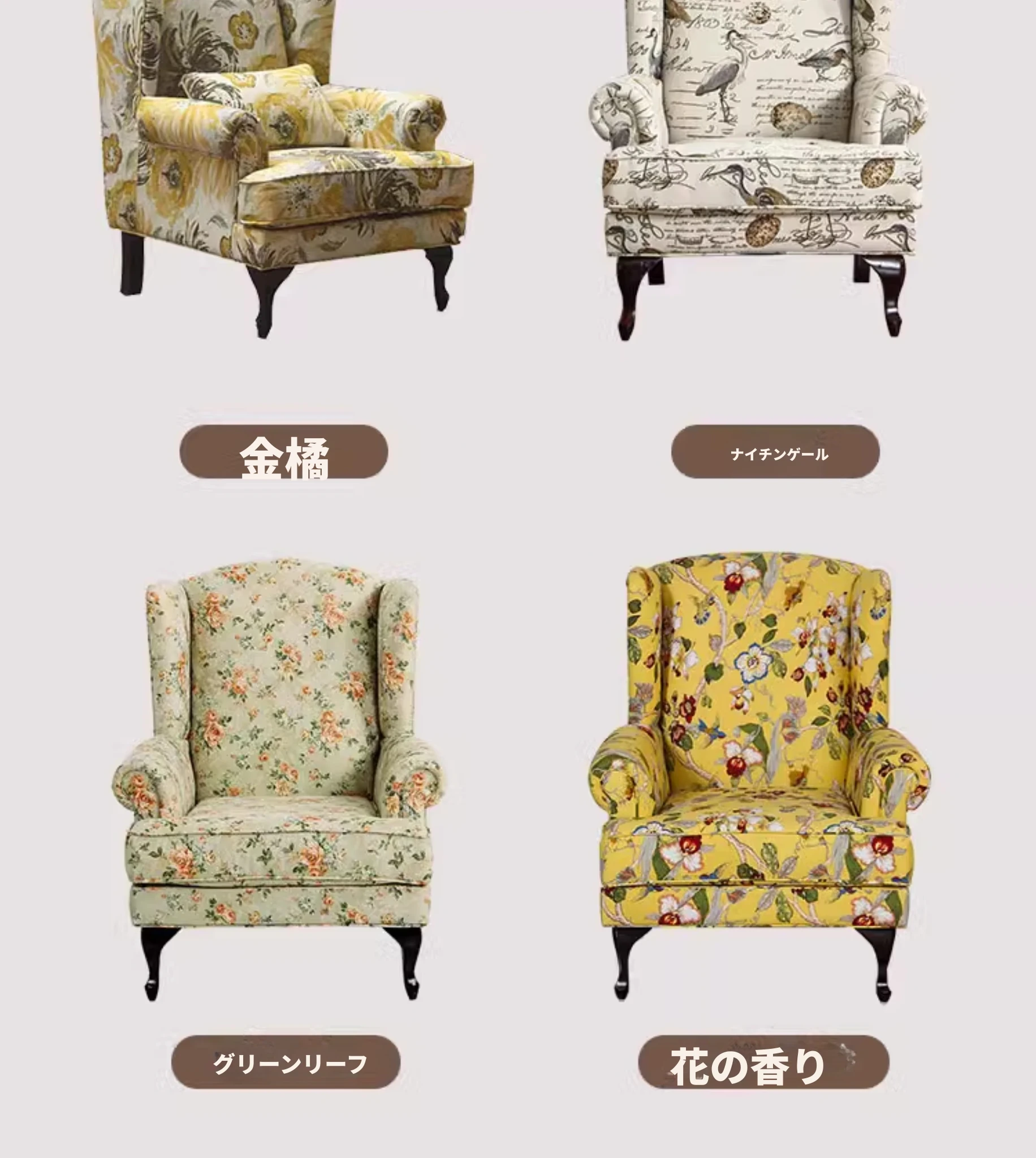 アメリカンスタイル・トラディショナル一人掛けソファチェア - ヴィンテージ実木とファブリックのコンビネーション、フレンチシックな軽奢感を演出。別荘やリビングにぴったりなリラックスチェア!