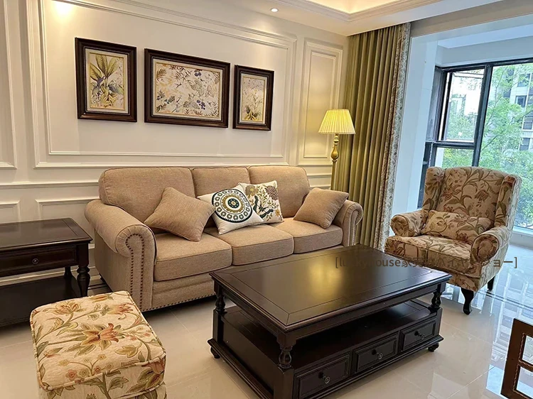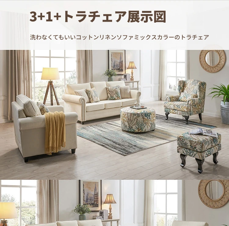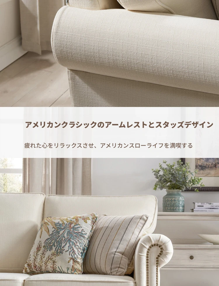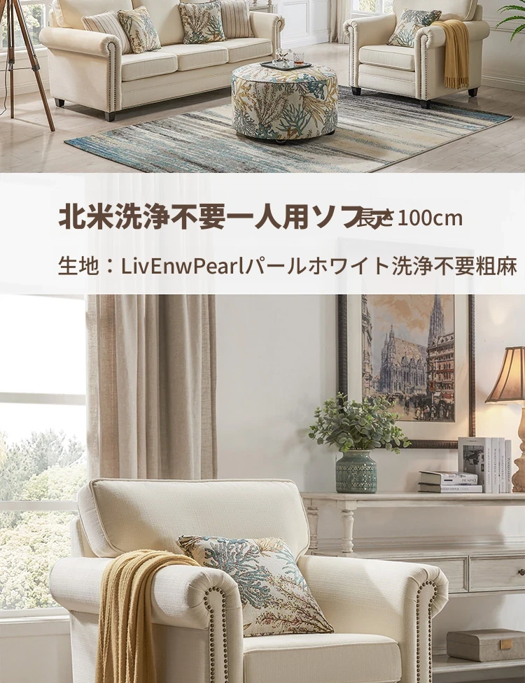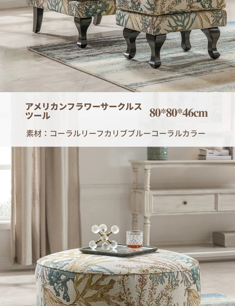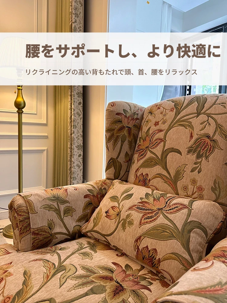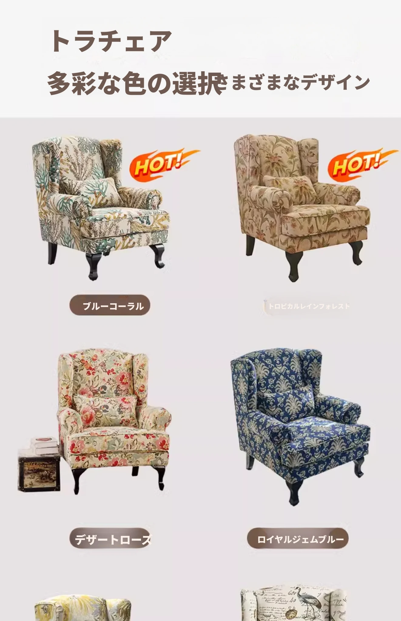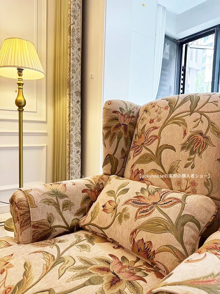 アメリカンスタイル・トラディショナル一人掛けソファチェア - ヴィンテージ実木とファブリックのコンビネーション、フレンチシックな軽奢感を演出。別荘やリビングにぴったりなリラックスチェア!