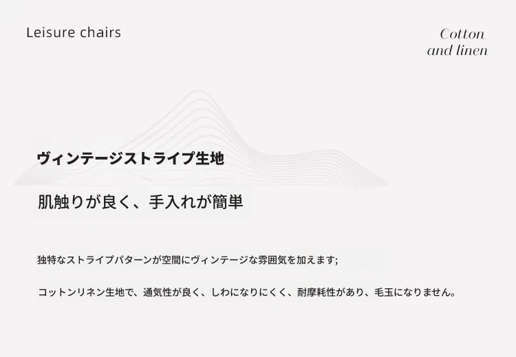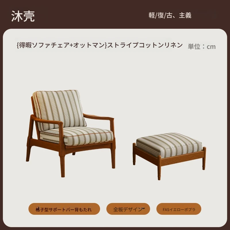 【全無垢】カジュアルチェア丨ストライプコットンリネン+フットレスト丨チェリウッドカラー