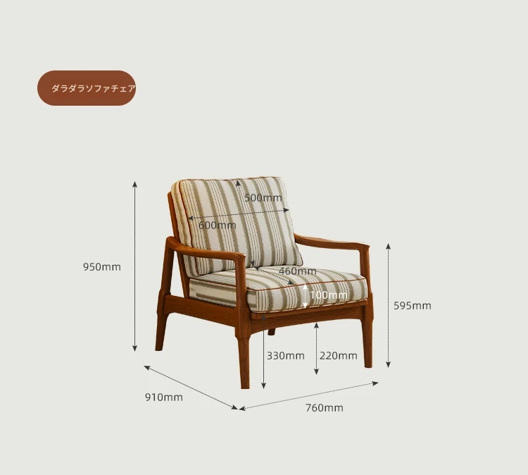 【全無垢】カジュアルチェア丨ストライプコットンリネン丨チェリウッドカラー