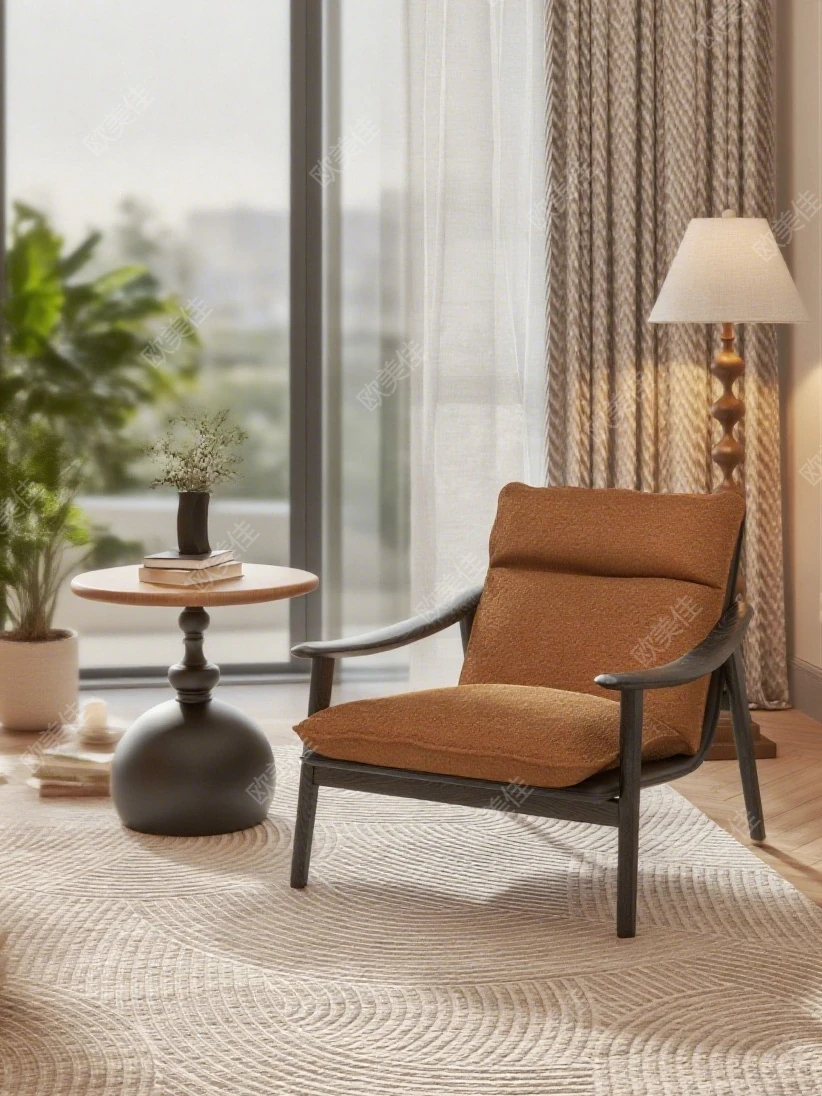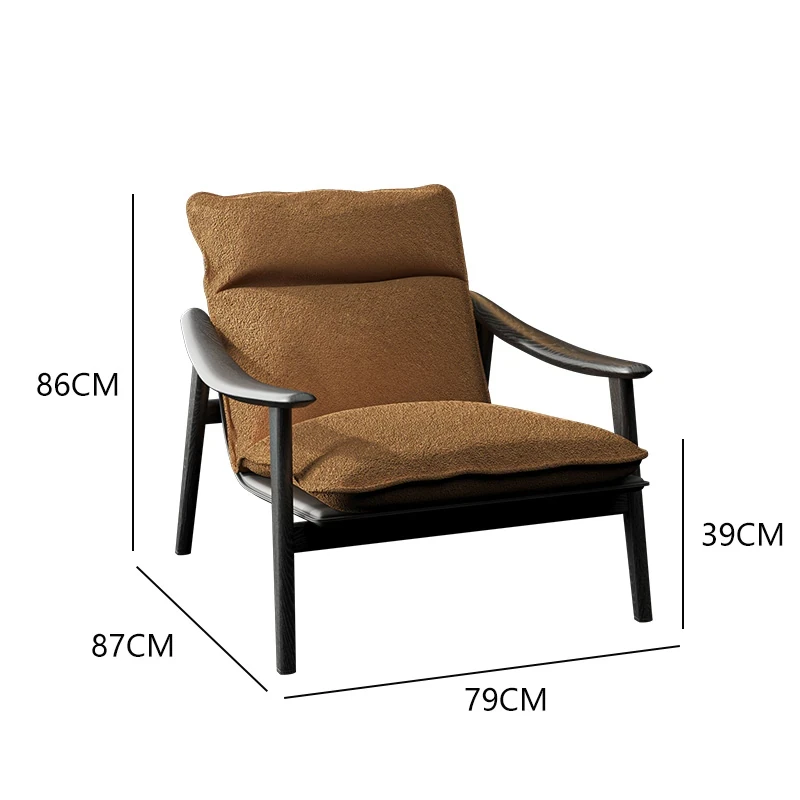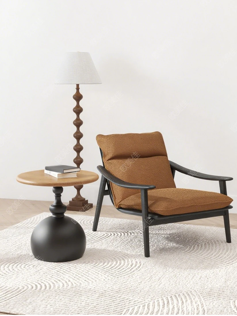 ヴィンテージ風ホワイトアッシュ材の一人用ソファチェア、レトロなラムファー付きで洗えるダウンクッション、リビングやバルコニーに最適な天然木製のリラックスチェア!