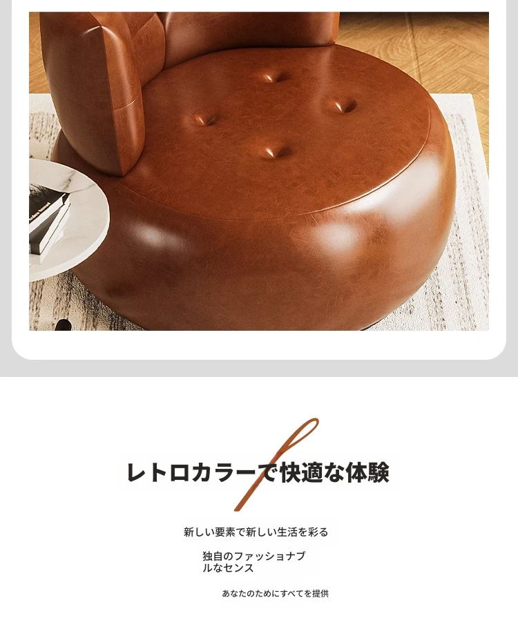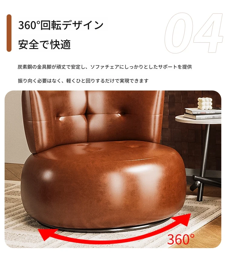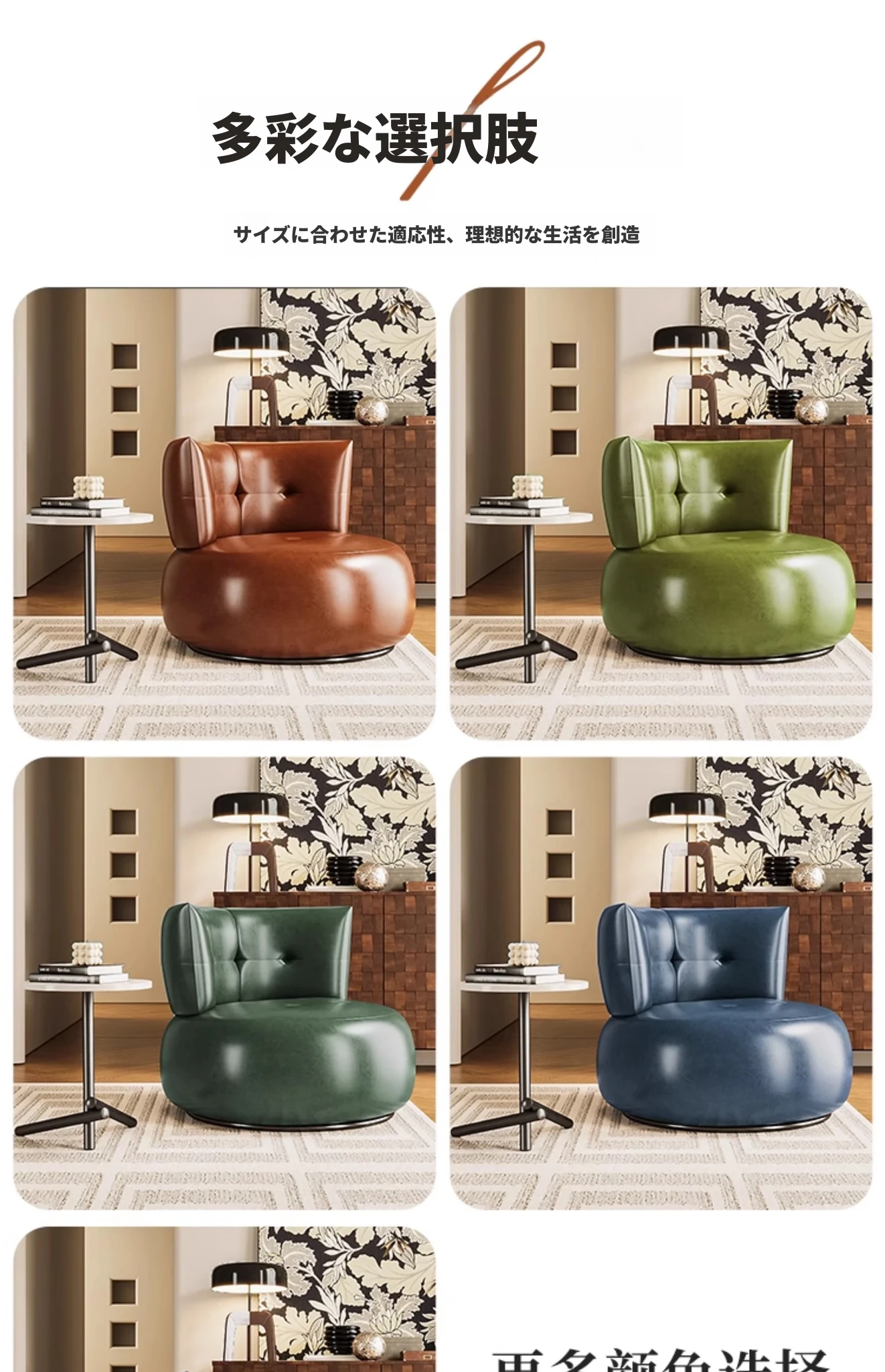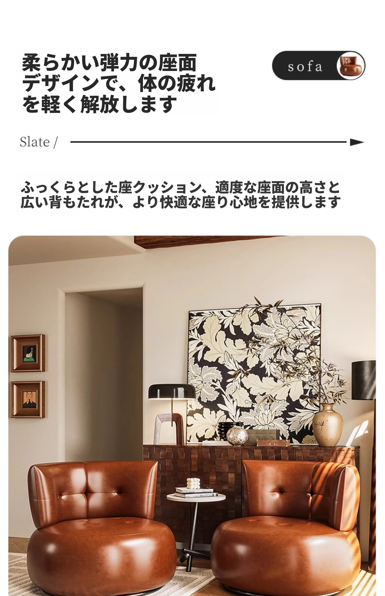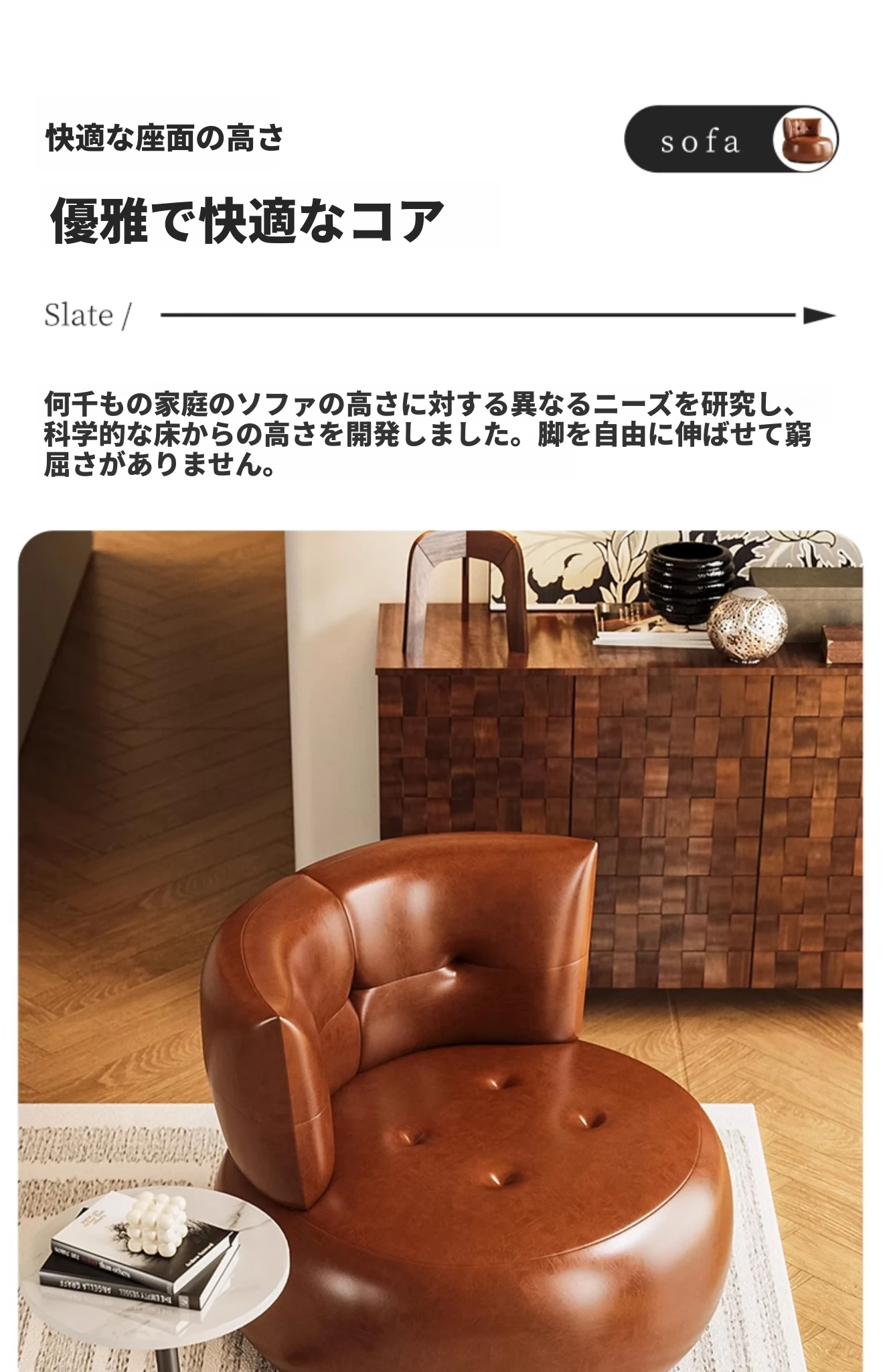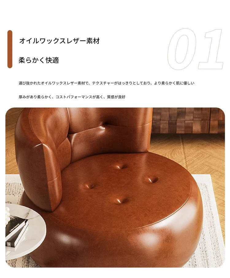 越之家具 中古風のおしゃれなリラックスソファ 椅子 一人用オイルワックスレザー 客間やバルコニーに最適な回転式小型ソファで、読書やリラックスタイムを楽しもう!