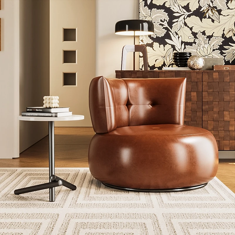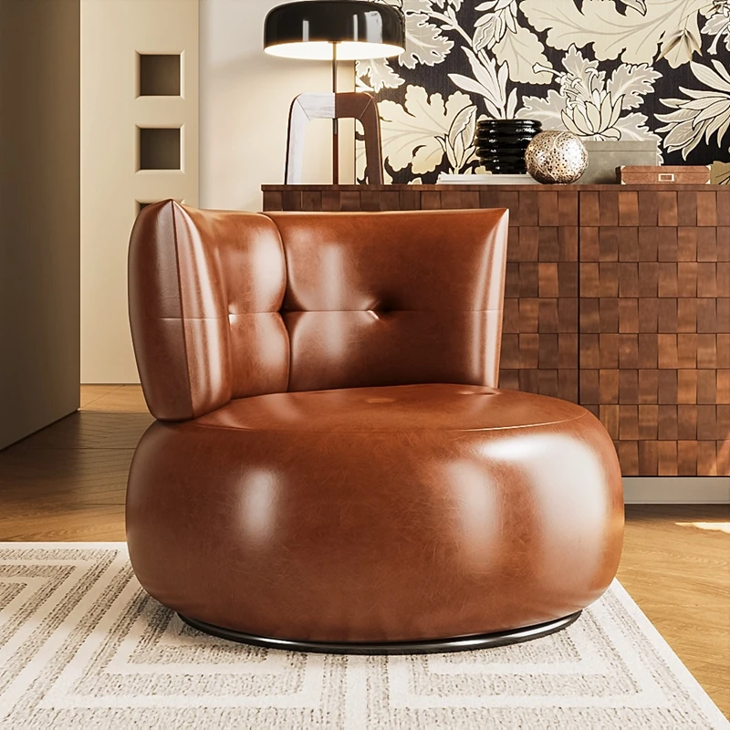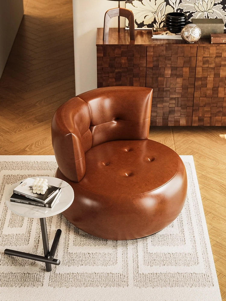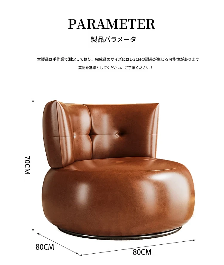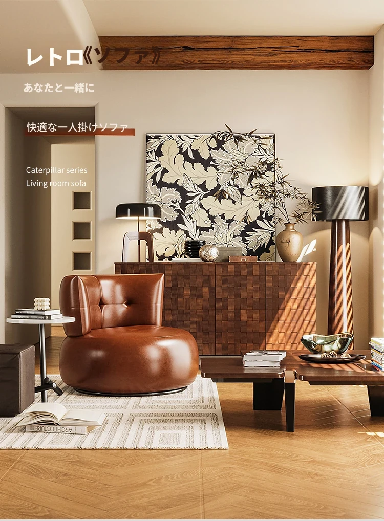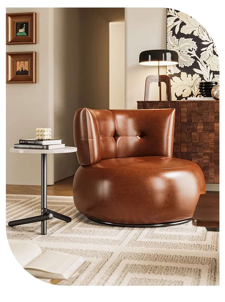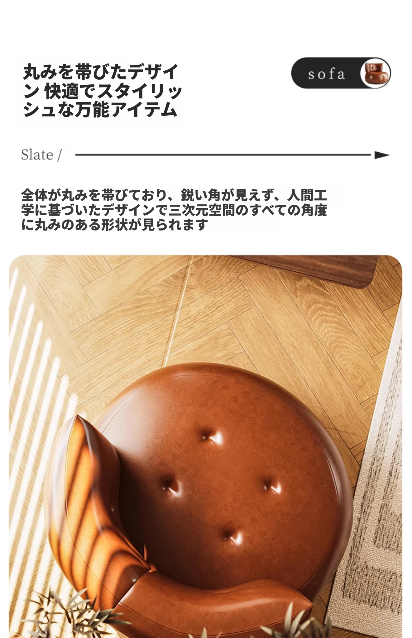 越之家具 中古風のおしゃれなリラックスソファ 椅子 一人用オイルワックスレザー 客間やバルコニーに最適な回転式小型ソファで、読書やリラックスタイムを楽しもう!