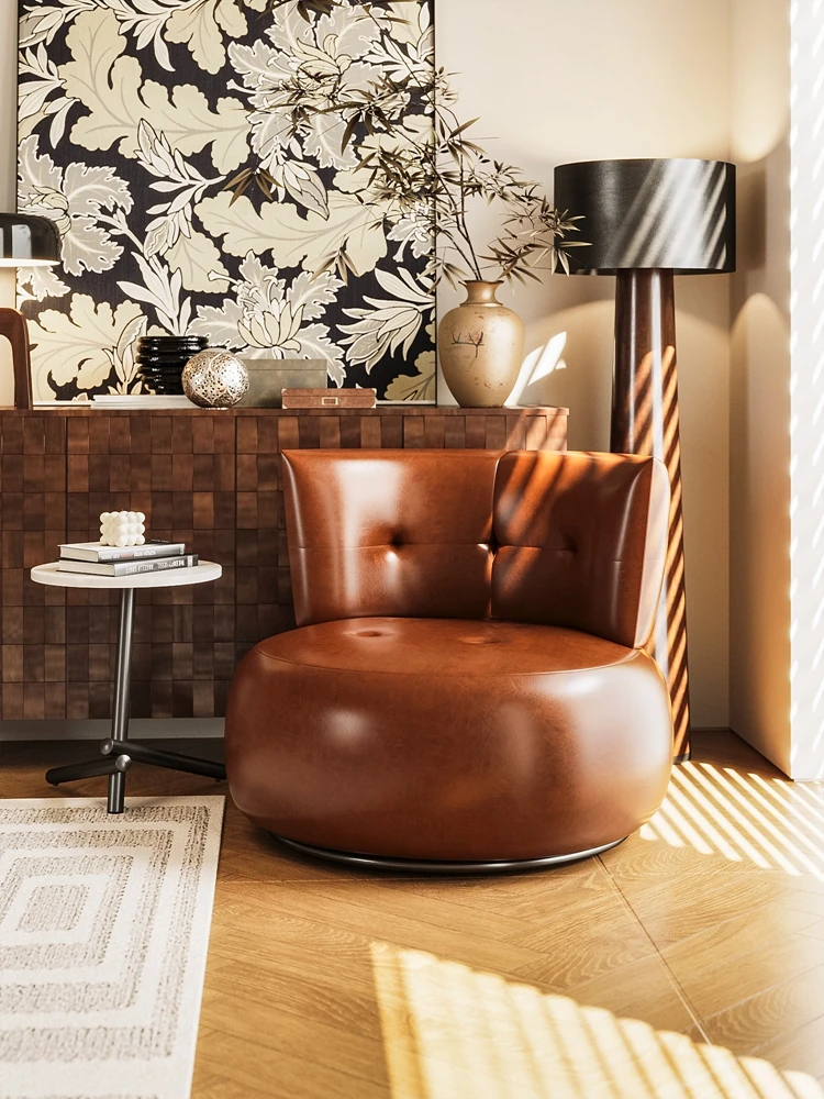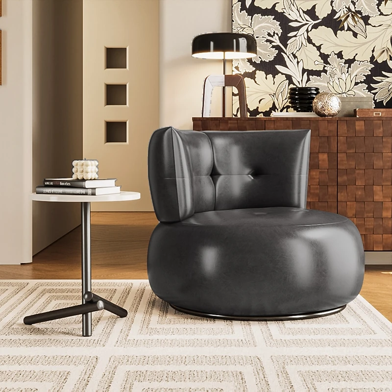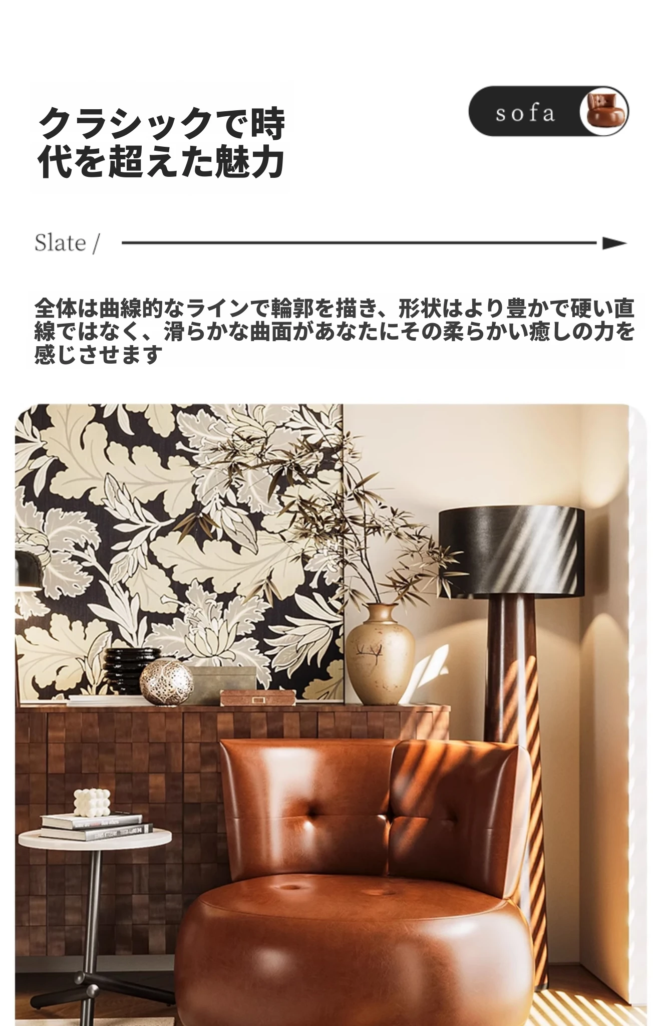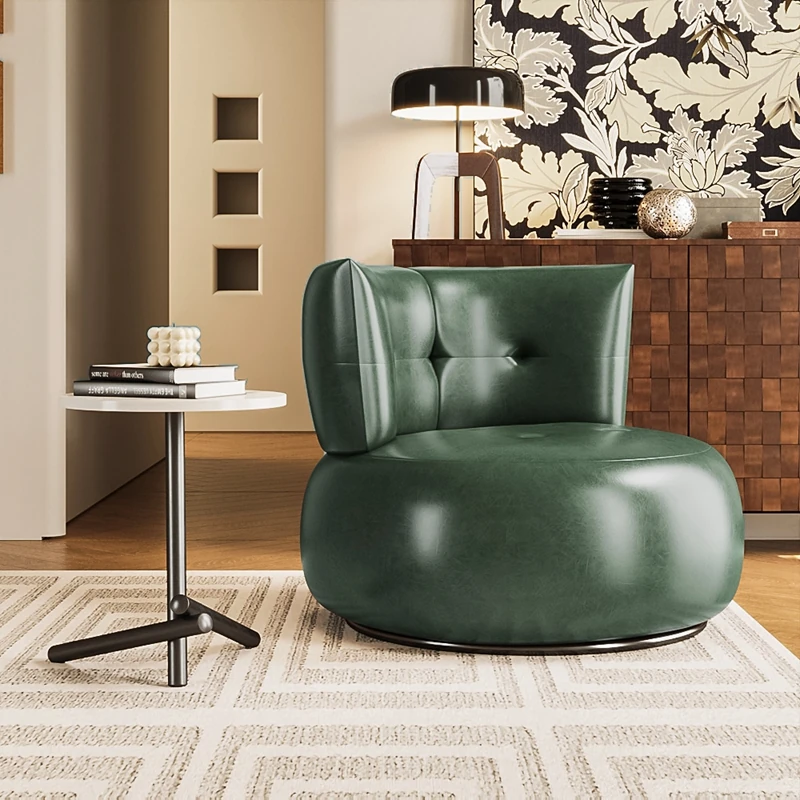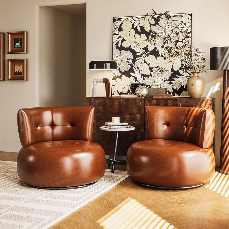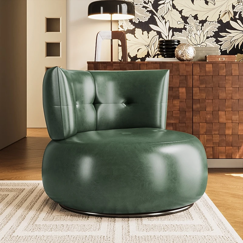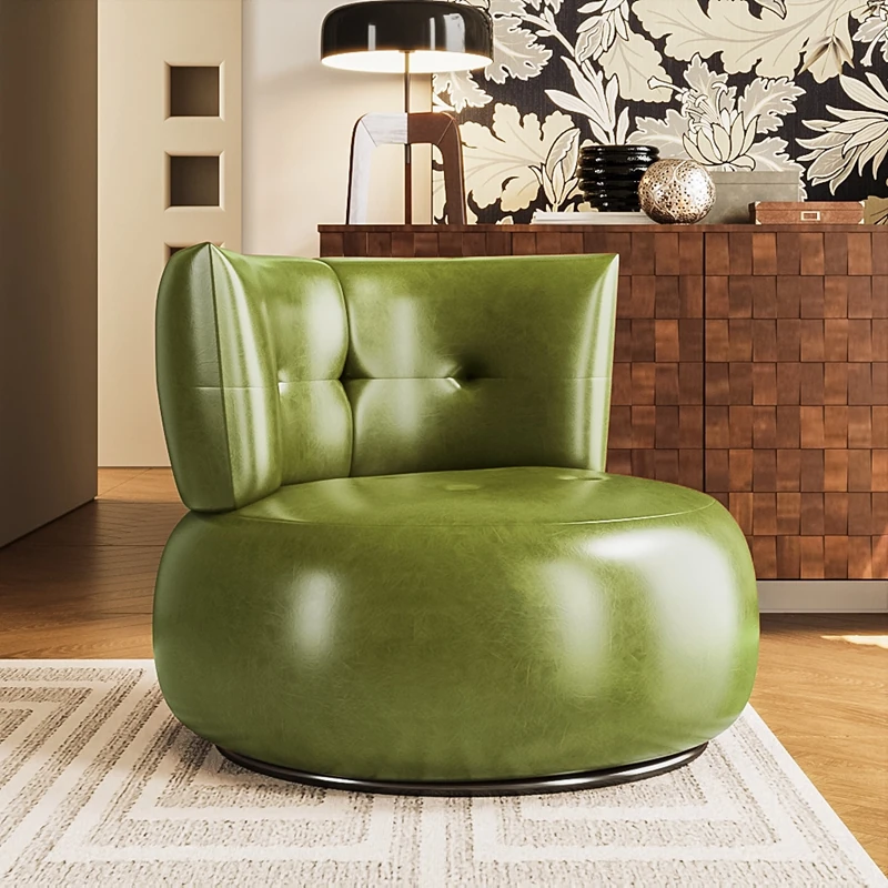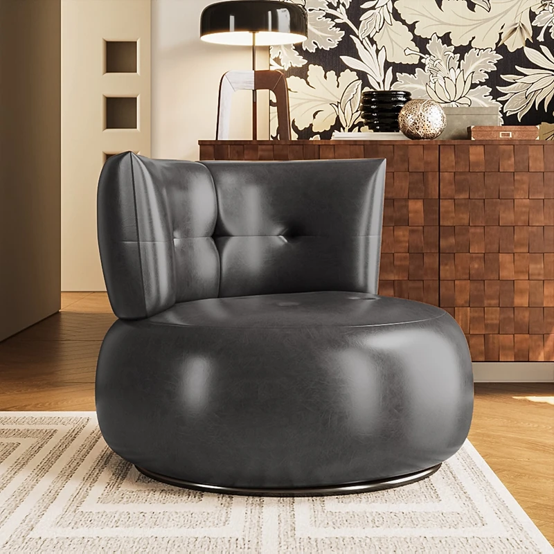 越之家具 中古風のおしゃれなリラックスソファ 椅子 一人用オイルワックスレザー 客間やバルコニーに最適な回転式小型ソファで、読書やリラックスタイムを楽しもう!