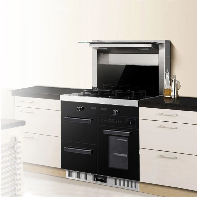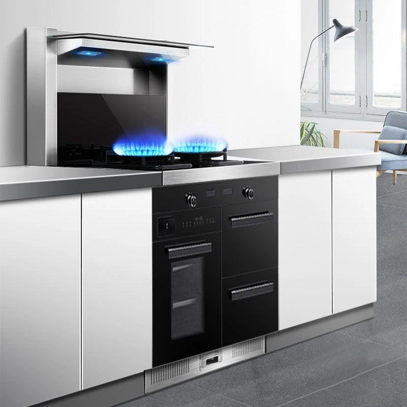新飛の統合型レンジフード、サイド吸引式自動洗浄機能付き、ガスコンロと食器洗浄機能を備えた一体型キッチン家電!毎日の料理をもっと快適に、清潔に!