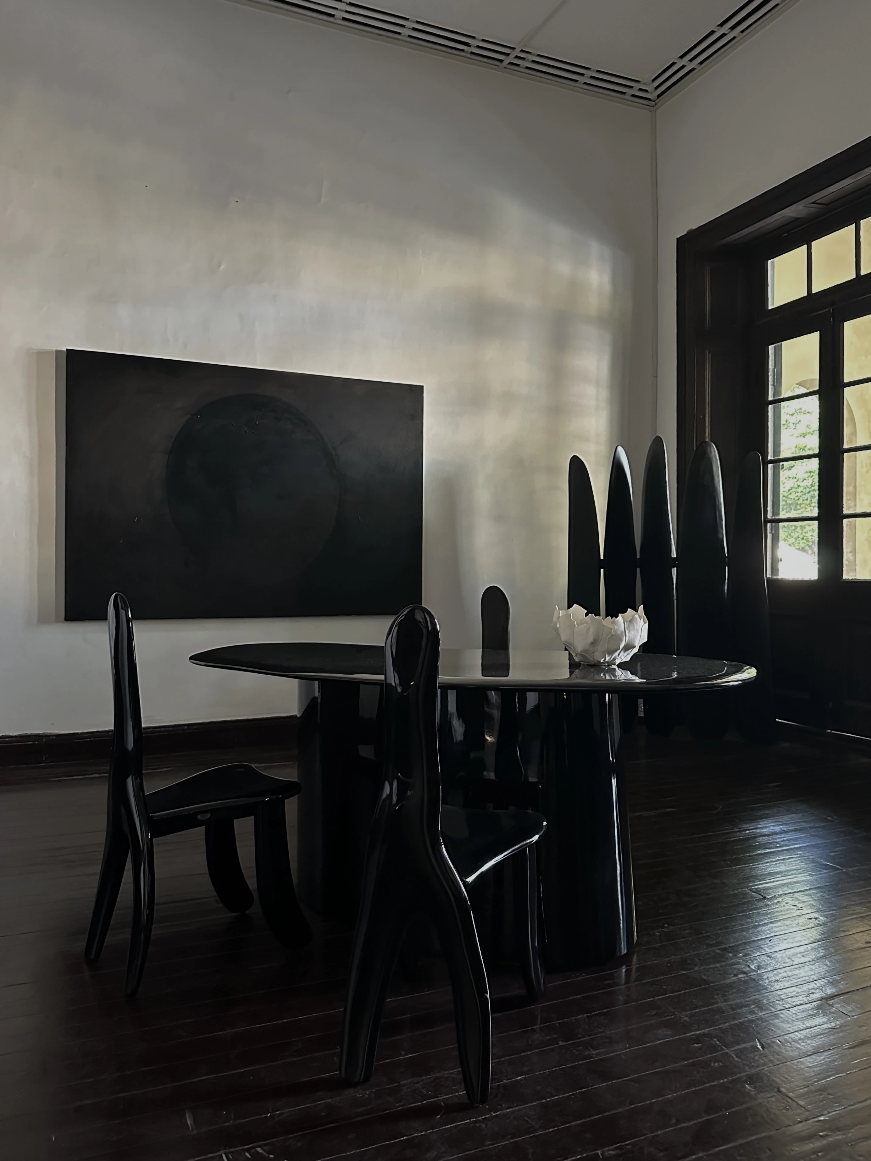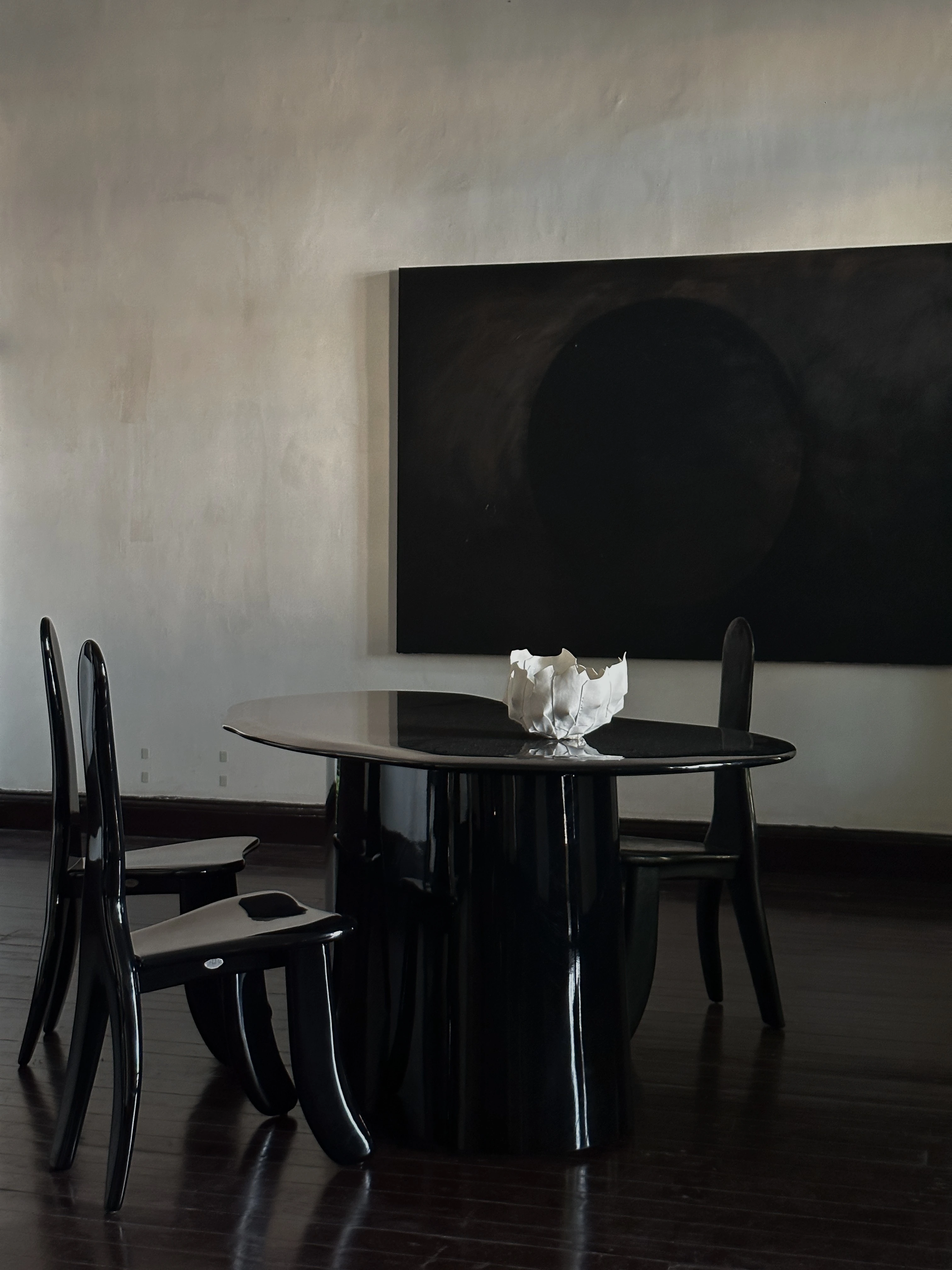 Y:CUBE | kar studio オラクル甲骨文ハイライトブラックアート黒いダイニングテーブル - シンプルで洗練されたデザイン、どんなインテリアにもマッチ!おしゃれな空間を演出します。